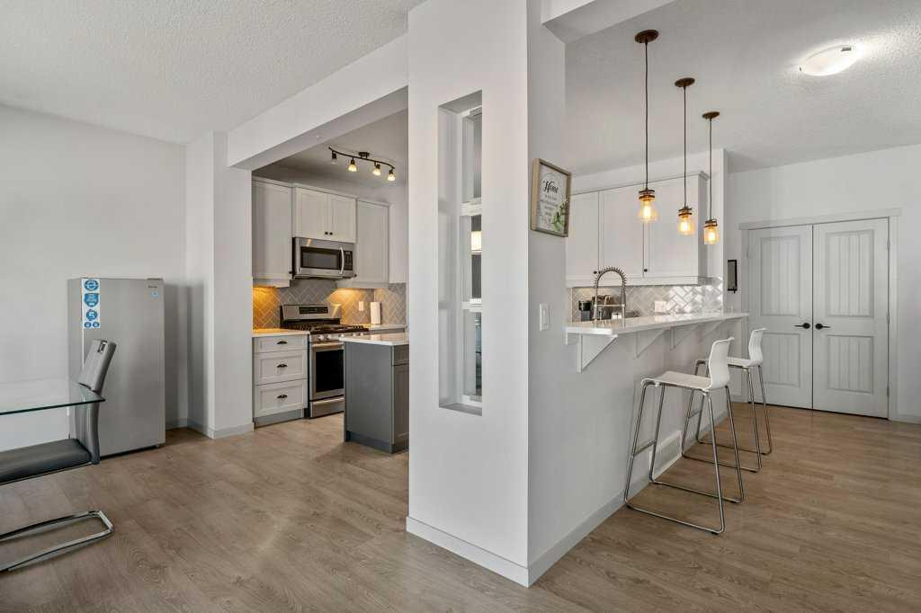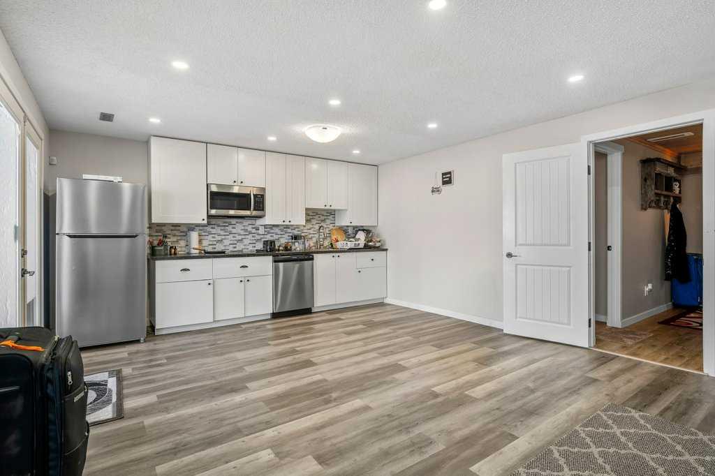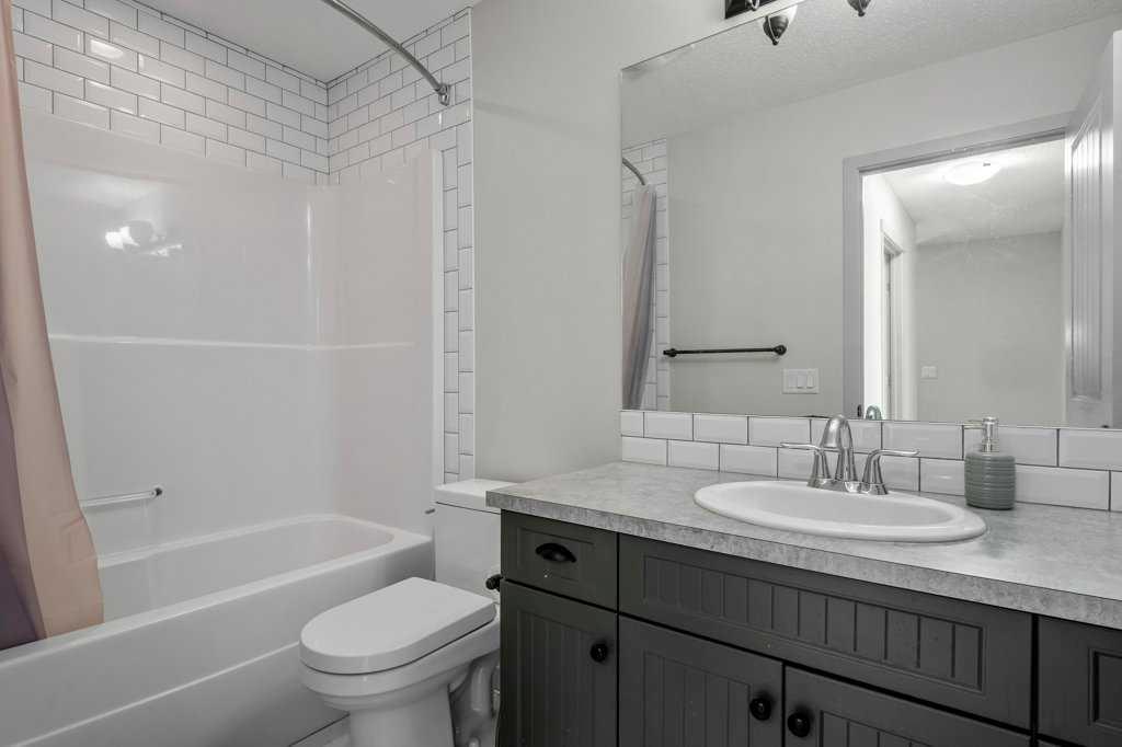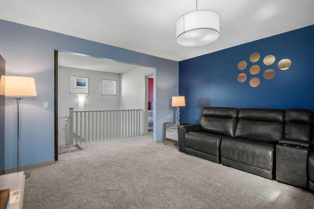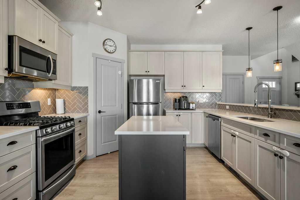 Situated on a quiet, family-friendly street just steps from parks and green spaces—with no neighbours behind—this impressive home offers a fully developed walkout basement with an illegal one-bedroom suite, central air conditioning, newer shingles, and a striking curb-appeal-rich front elevation boasting vertical siding and stone accents. Step inside to 9’ ceilings and neutral tones throughout, creating a bright and welcoming atmosphere. A convenient side mudroom with a 2-piece bathroom sits just off the entry, while the back of the home opens into an entertainment-style layout designed for modern living. The kitchen features a full appliance package including a gas stove, extended cabinetry, quartz countertops, prep island, walk-through pantry, herring bone backsplash—anchored by a massive eating bar overlooking the spacious family-size dining area with access via the sliding doors to the upper vinyl deck wrapped in railing. The rear family room is warmed by a focal gas fireplace with upper mantle and lower hearth, perfectly positioned to capture brilliant east-facing morning light. Open railings and transom windows lead upstairs to a thoughtfully designed upper level, highlighted by a central bonus room with barn door closure. Two front children’s bedrooms share a tiled 4-piece bathroom accented with subway tile, while an upper laundry room adds everyday convenience. The rear primary retreat easily accommodates a king-size bed and includes a walk-in closet and spa-inspired 5-piece ensuite featuring tiled floors, dual sinks, a deep soaker tub wrapped in tile accents, and an oversized walk-in shower. The walkout lower level is fully finished and filled with natural light from a wall of windows, offering a second living space, kitchen area with a full appliance package, fourth bedroom, and a 3-piece bathroom—ideal for extended family or supplemental living. Outside, the yard is fully fenced and landscaped, complete with a lower concrete patio, synthetic grass putting green, and a wrap-around walkway from front to back. Located on a traditional lot, this well-appointed home delivers space, functionality, and lifestyle—sure to impress.