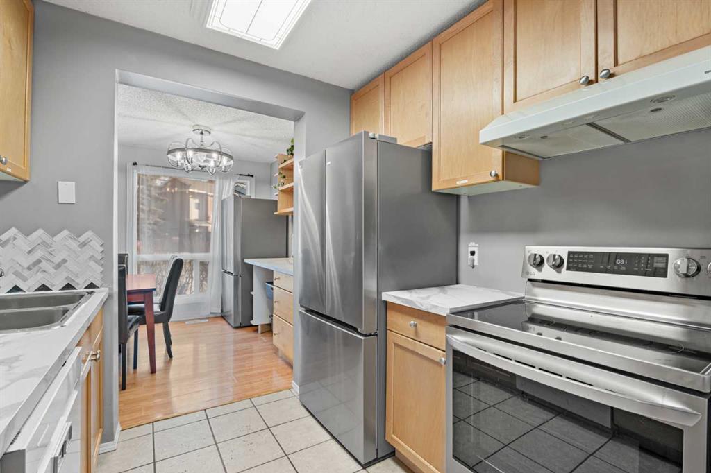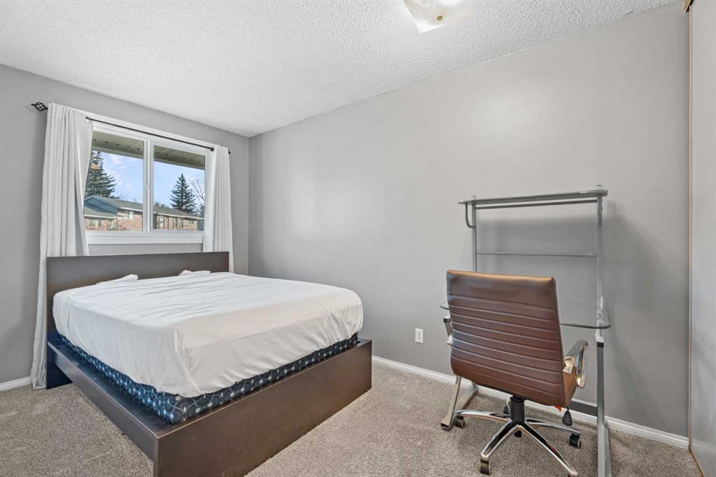 ROOMING HOUSE OR LARGE FAMILY OPPORTUNITY – TURNKEY INVESTMENT Excellent opportunity for investors, large families, or families-of-choice! SO MANY UPDATES in this family-friendly townhome in Ranchlands! The big money has already been spent so you don't have to. 1,720 sf of gorgeous living space. This rare, fully compliant, fully renovated townhouse is currently configured as a rooming house with 5 bedrooms and 2.5 bathrooms, with required approvals from the Condo Board and City of Calgary permits in place. This turnkey property includes multiple full-size refrigerators, and all furniture is negotiable, making it ideal for immediate rental income or multi-generational living. Recent upgrades include a new furnace with central air conditioning, tankless hot water system, new washer and dryer, updated light fixtures, egress windows in both downstairs bedrooms, and fresh paint throughout. A vented kitty closet (!) and backflow preventer have also been installed for added functionality and peace of mind. Main floor appliance bar extends kitchen functionality. The thoughtful layout features five generously sized bedrooms, 4-piece bathrooms on both the upper and lower levels, and a convenient 2-piece powder room on the main floor. Strong income potential, located close to LRT for easy University and downtown access. Ideal for investors seeking rental income (occupy one bedroom and rent the remaining four) or for large or generational families needing flexible living space.