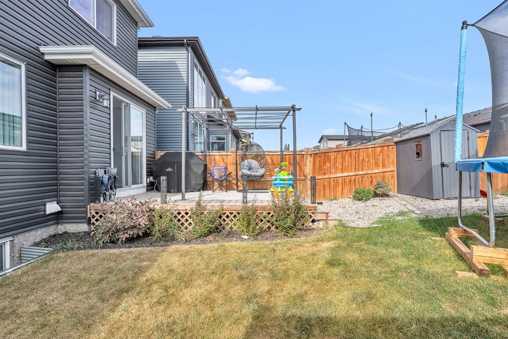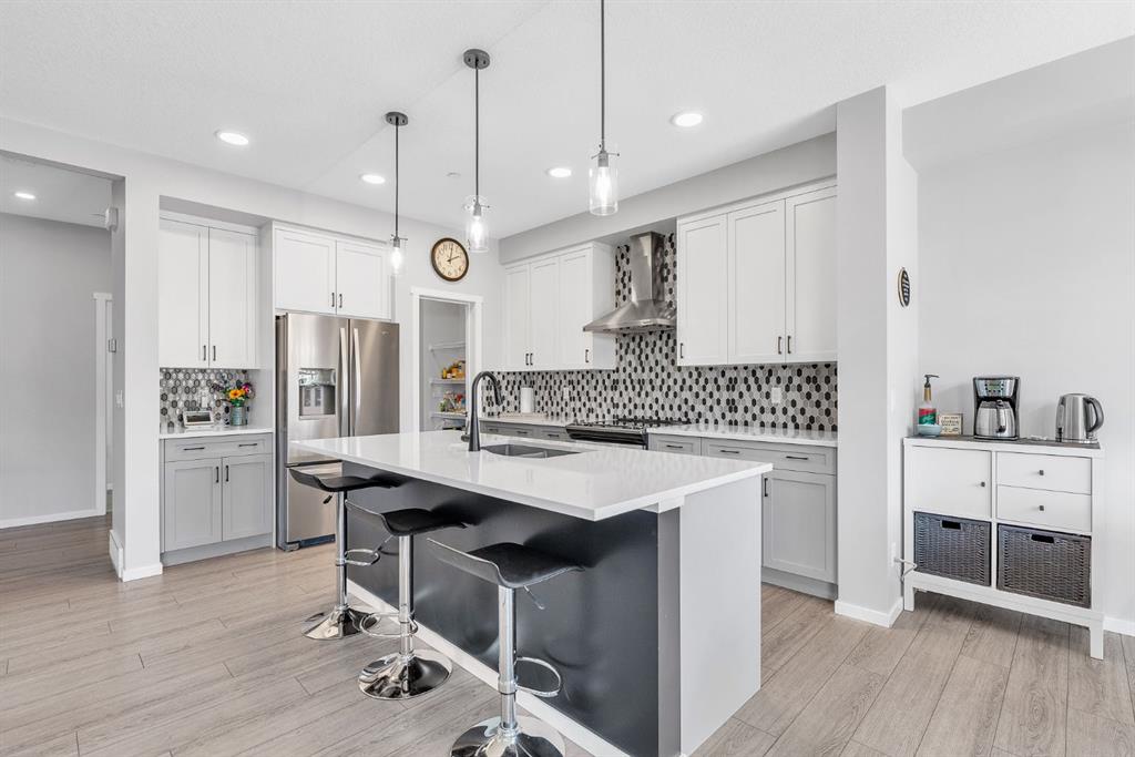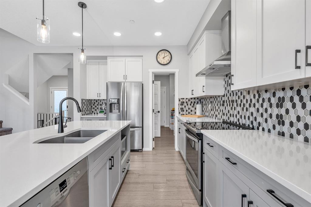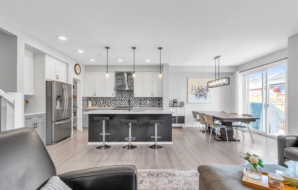 Located in the vibrant, growing community of Livingston, just steps from Livingston Park and within walking distance of numerous amenities is this immaculately kept 4 bedroom, 3.5 bathroom, modern 2 storey home with bright, open floor plan, double attached garage and developed basement!! Entering the home, you're greeted into a spacious foyer. The functional main floor layout offers a discrete powder room set apart from the main living areas, a large mud room off the garage with a walk-through pantry that leads into the kitchen, and an open-concept living, kitchen and dining area overlooking the back yard. The kitchen is the heart of the home, featuring a large island with room for seating, stainless steel appliances, stone counters and ample storage with soft-close cabinets and drawers. The living room is anchored by a cozy gas fireplace and offers large windows for an abundance of natural light. Upstairs, you'll find a large primary bedroom with spacious ensuite and walk-in closet. The ensuite features dual sinks, a soaker tub and separate shower, and a private water closet. Down the hall is a versatile den/office space, two additional bedrooms, a full bathroom and convenient upper laundry room. You'll also appreciate the open bonus room on this floor. The basement is developed with a family room and large bedroom with walk-in closet and private ensuite. Enjoy the rear deck, complete with BBQ gas line, and the fully-fenced yard for the kids and pets! With central air conditioning to keep you comfortable on hot summer days and a complete fire suppression system for added peace of mind, this is the perfect family home.
