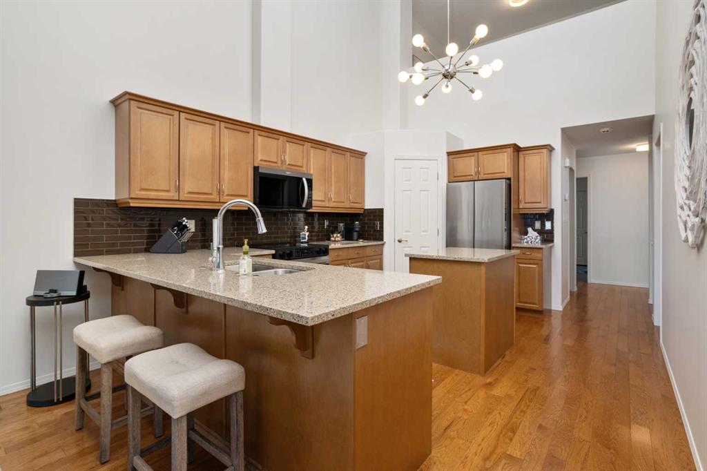 Welcome to this beautifully updated adult half duplex, offering refined, maintenance-free living in the Village at West Park. Freshly painted throughout and enhanced with new light fixtures, this home shines with a modern, move-in-ready feel. Brand new appliances, window coverings, and granite countertops elevate the open-concept kitchen, while vaulted ceilings, solar tube lighting, cozy gas fireplace, and central air conditioning create a bright and welcoming living space. The main level is thoughtfully designed for everyday comfort, featuring convenient laundry, a stylish 3-piece bath, and a spacious bedroom. A versatile office or den offers the flexibility of a guest bedroom if desired. Patio doors provide direct access to your private rear deck that is perfect for relaxing or entertaining. Upstairs, you’ll find a cozy flex area ideal for reading or unwinding, along with the primary retreat. This serene space includes a walk-in closet, a 4-piece en-suite, and access to a private balcony complete with an automated awning overlooking the pond. An elegant touch that truly sets this home apart. The fully developed basement adds even more living space with a large family room, an additional bedroom, a 3-piece bathroom, and ample storage. Completing the package is a conveniently attached, heated double garage. Located in a welcoming adult community with a clubhouse and maintenance-free lifestyle, this home is ideally situated near west end shopping , medical clinics and walking trails. -shingles (2023), hot water tank (2025), and freshly cleaned furnace and ductwork (2025). A perfect blend of comfort, style, and carefree living.This is one you won’t want to miss.