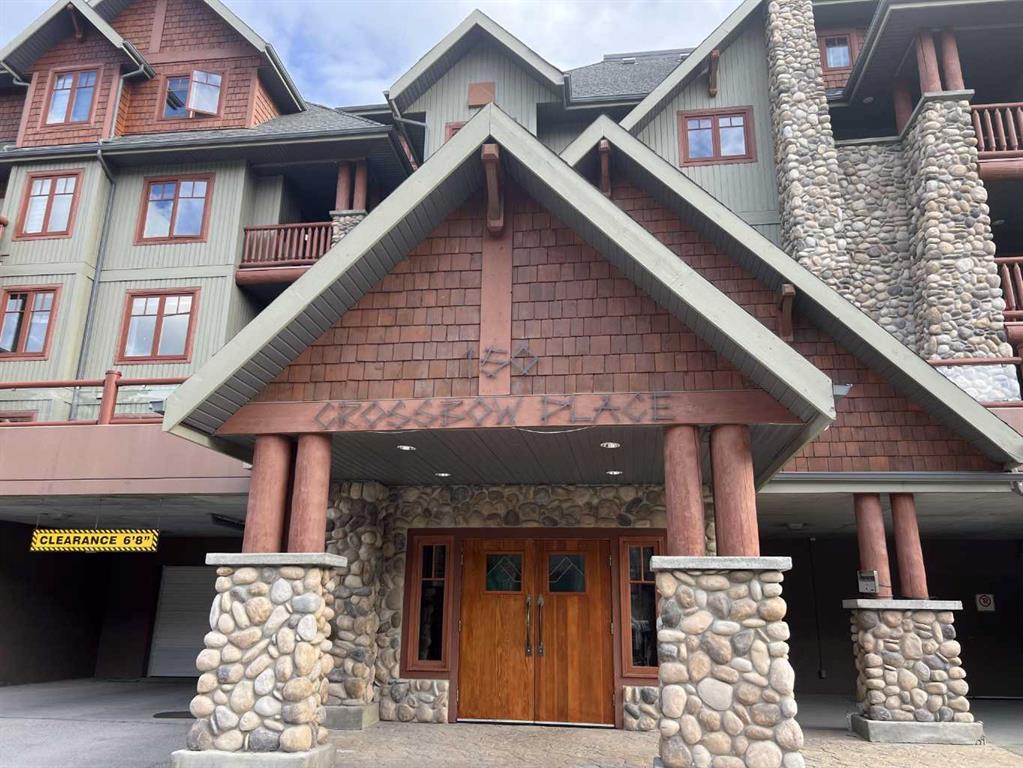Crossbow Landing offers the best in Canmore living. This west facing 2 bedroom plus den (or third bedroom), 2 bathroom, single level apartment features large square footage and updates throughout. Renovations include paint, flooring, countertops, faucets, stone work and ceiling fans. Storage abounds in the kitchen, bathrooms, laundry room and multiple closets. Host guests in the open concept kitchen, dining room and living room. Enjoy the warmth of the in-floor heat and river stone gas fireplace. The amenities building, offering indoor and outdoor hot tubs, sauna, well-equipped fitness room, and a huge common room with games, library, TV and lounge areas is among the best in the valley. To top it off, you get TWO titled parking stalls in the heated parkade, plus TWO large storage units in front of the parking stalls. Located near the Bow River and trails, and the new retail zone that is currently being developed.