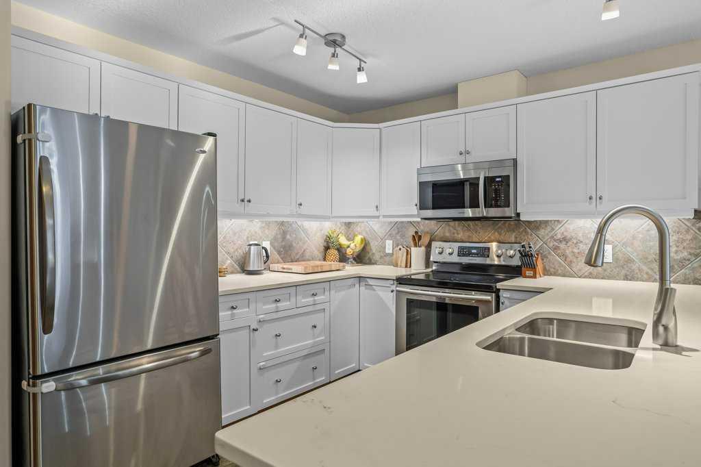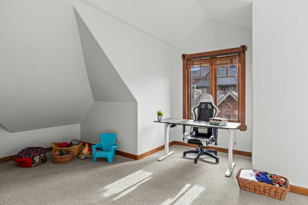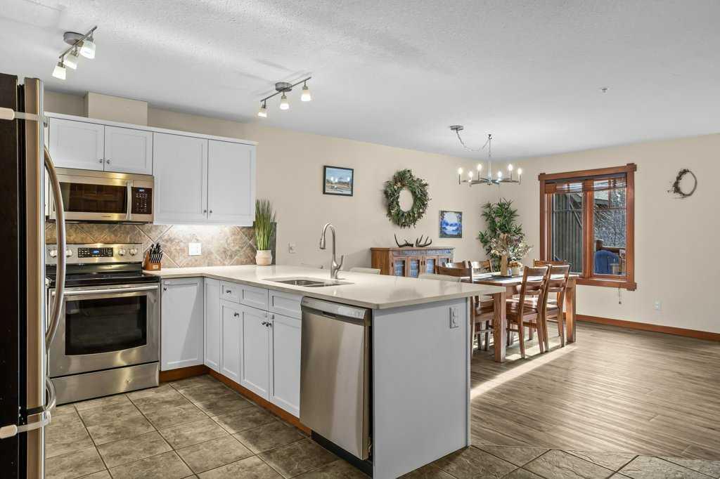 Direct views of the iconic Three Sisters mountains from every SW facing window from this top floor penthouse! Enjoy the expansive 1,348 sq.ft. living space spread across multiple levels, providing privacy and comfort for families or entertaining guests. The large kitchen / dining / living area is larger than most apartment or townhouse style properties in Canmore at the affordable end of the market creating a great place to relax and enjoy your time with others. There have been thoughtful and bright upgrades to the flooring, quartz kitchen counter top, and cabinets throughout giving it a warm mountain feel with a modern touch. The 2 large bedrooms upstairs have attractive ceiling lines, solid wood doors throughout and versatile layouts that allow for extra furniture like a sofa, work station, kids play area etc… A popular feature are the 2 titled parking stalls that come with the unit and a storage locker located at the end of the indoor parking stall. Crossbow has one of the best clubhouses in any building in Canmore with features you will not find elsewhere including: 2 hot tubs (one indoor and one outdoor), dry sauna, a sizable and well equipped gym, 2 pool tables, a ping pong table and lounge area / library. The Three Sisters area is a gateway to endless activities, including direct access to an extensive network of forest trails, from leisurely strolls along the Bow River Pathway to challenging scrambles up Ha Ling Peak. Explore the Three Sisters Pathway, enjoy kayaking or paddle boarding on Quarry Lake, disc golf, or cross-country skiing at the Canmore Nordic Centre. Crossbow is ideally located just a few steps away from the Bow River where you can catch the evening sun setting over Rundle Mountain or try your hand at fishing just out your door. The Three Sisters community is growing, with future plans for retail, office, and restaurant spaces at "The Gateway," including an IGA grocery store. Canmore's charming downtown is just a short drive or bike ride away.