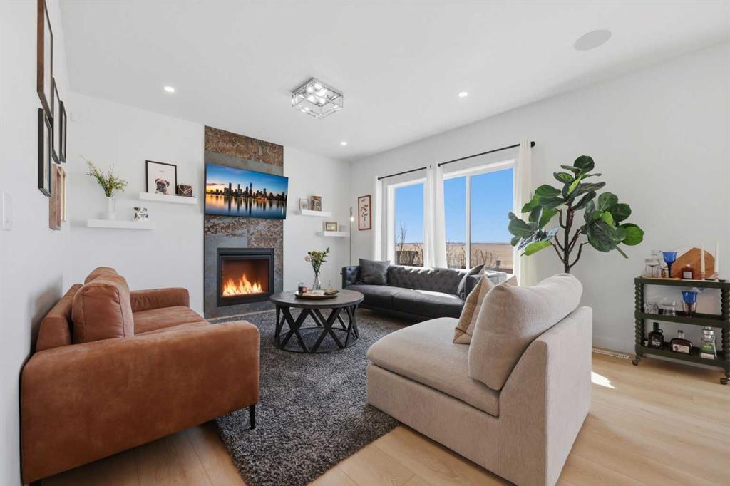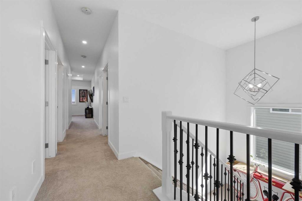 Welcome home to this beautifully designed property in the inviting community of Carstairs. Thoughtfully laid out with an open-concept design, this home offers the perfect balance of everyday comfort and effortless entertaining. Step inside to a warm and welcoming main floor, where a versatile den gives you the flexibility to create a home office, formal dining space, or additional sitting area to suit your lifestyle. The spacious kitchen is truly the heart of the home, featuring a large island, and stainless steel appliances—perfect for hosting family and friends. The adjoining living room is bright and inviting, complete with a cozy gas fireplace. Upstairs, you’ll find 4 generous bedrooms, including a spacious primary retreat with a walk-in closet and a 5-piece ensuite designed for relaxing at the end of the day. A cozy bonus room offers the ideal space for kids, movie nights, or a second living area, and the convenient upper-floor laundry adds to the home’s functionality. The basement, with its separate exterior entry and large egress windows, is ready for your vision—whether you’re looking to expand your living space or create something entirely new. Located in the vibrant community of Carstairs, you’ll enjoy a quieter pace of life while still being close to schools, parks, and everyday amenities. A great opportunity to own a well-appointed home in a growing community.