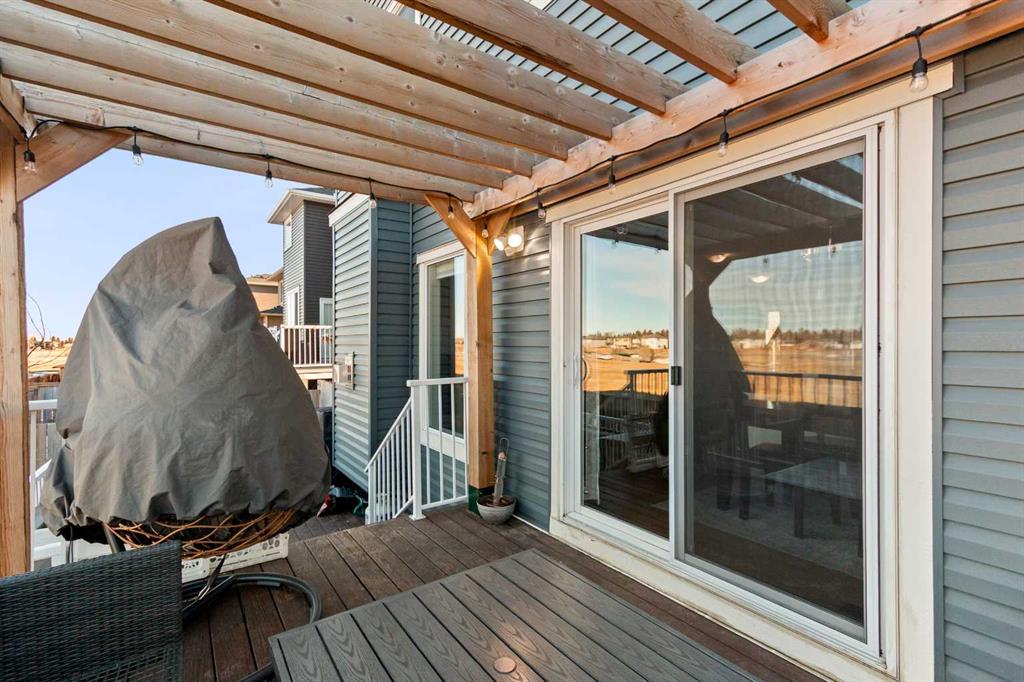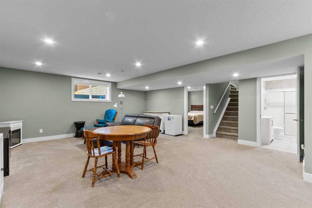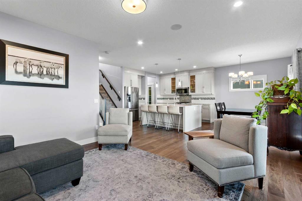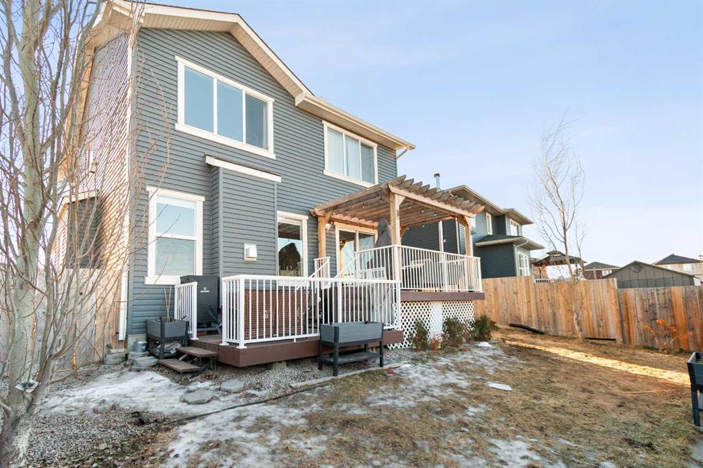 BACK ON THE MARKET DUE TO FINANCING. Welcome to this fully developed, 4 bedroom home backing onto a greenspace, located in the family-friendly community of Carstairs, known for its small-town charm, great schools, and easy access to everyday amenities. A large front porch invites you inside to a spacious foyer, leading into a bright, open-concept main floor. The large living room with a gas fireplace and engineered hardwood floors creates a warm, welcoming space for relaxing or entertaining. The chef’s kitchen offers a generous island with ample storage, gas stove, and a walk-through pantry that connects seamlessly to a large mudroom. The spacious dining area opens onto a private deck where you can enjoy peaceful views of the greenspace behind. A main floor office and 2-piece powder room complete this level. The upper level offers 3 generously sized bedrooms, including 2 large secondary bedrooms perfect for a growing family. You will also appreciate the convenience of upstairs laundry and a spacious bonus room complete with a second gas fireplace. The primary suite is a true retreat, featuring a 5-pc ensuite with a makeup area and a large walk-in closet. The fully developed basement adds even more living space with a very large bedroom, generous family room, and an additional bathroom, ideal for guests or teens. Central air conditioning will ensure summer comfort. Set in a welcoming community and backing onto greenspace, this is a home you will enjoy for years to come.