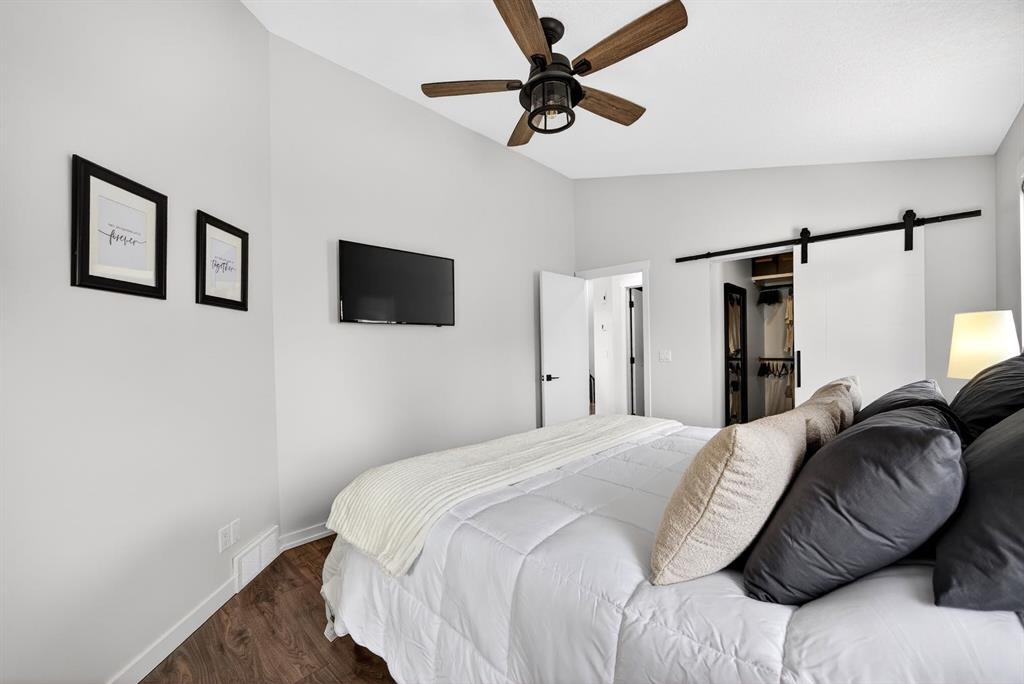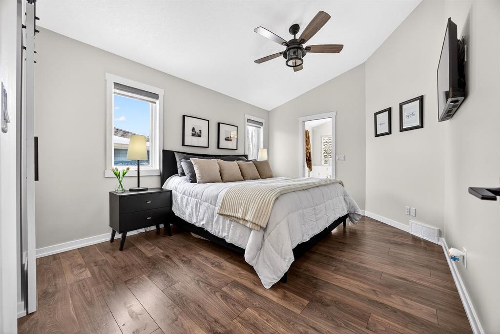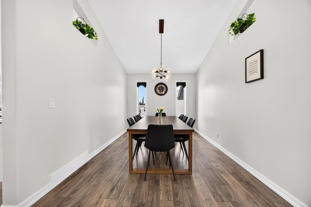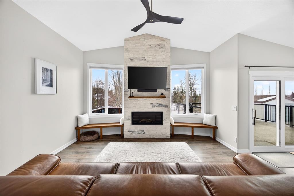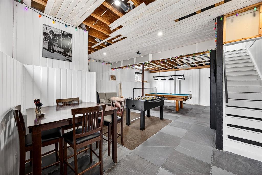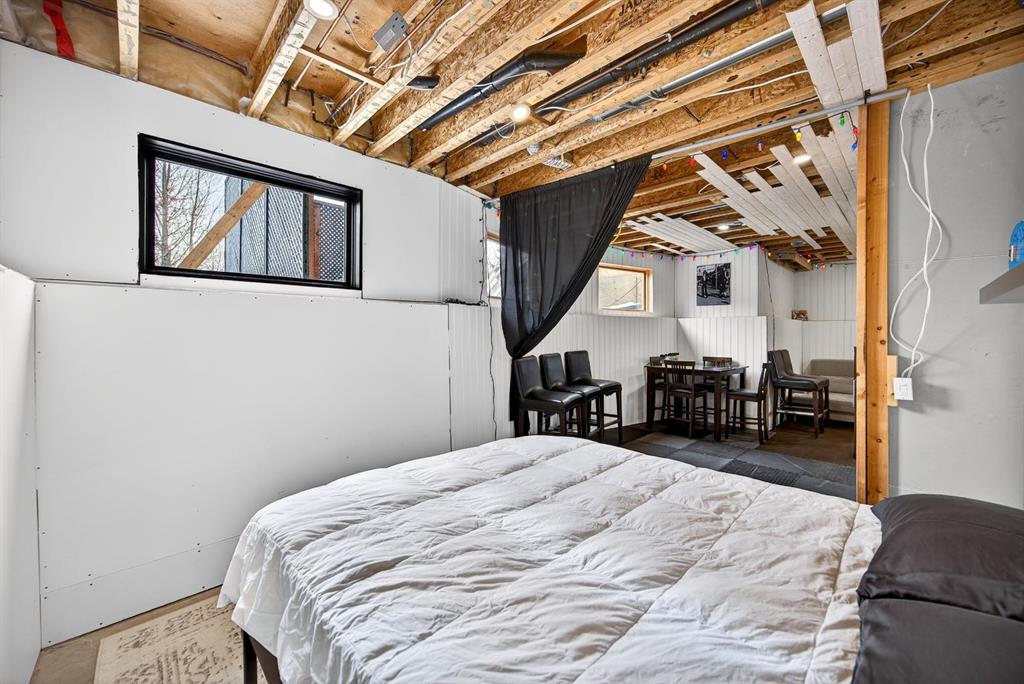Welcome to this stunning raised bungalow offering over 2,700 sq ft of living space on a huge 7,500+ sq ft lot, complete with an oversized driveway large enough to accommodate an RV. This immaculate home has undergone extensive updates, including a newer roof, new furnace, new hot water tank, and impressive renovations throughout the main floor. Step inside to soaring 12+ ft vaulted ceilings and an open-concept layout that creates a bright, airy atmosphere. The fully renovated kitchen is a true showstopper, featuring quartz countertops, an undermount sink, beautiful vinyl plank flooring, and modern finishes throughout. The main living area is highlighted by a dramatic floor-to-ceiling stone accented gas fireplace, complemented by expansive brand new windows that flood the space with natural light. Several thoughtfully designed feature walls add character, including a welcoming front entry with built-in paneling and sliding barn doors. The centrally located laundry room features striking black wood accents and recessed lighting for a sleek, modern touch. A spacious separate dining room offers additional room for hosting family gatherings. The main floor includes two generous bedrooms: • A spacious primary bedroom featuring a large walk-in closet with built-in organizers and a private four-piece en suite bathroom • A second oversized bedroom featuring sliding barn-style closet doors Downstairs you’ll find two additional bedrooms, a four-piece bathroom, and a partially finished basement that includes a pool table — ideal for recreation or entertaining. The heated garage is exceptionally spacious, equipped with two separate single overhead doors and ample room for a full-size truck. Step outside to enjoy the large 16’ x 15’ deck, complete with built-in storage underneath, overlooking the expansive backyard. This beautifully updated property combines space, style, and functionality — a rare opportunity in Carstairs that truly must be seen to be appreciated. Absolutely stunning and move-in ready — this one will not last.