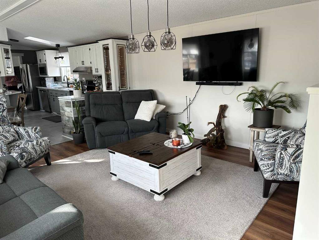 Public Remarks: Here you have a well maintained and upgraded mobile home on a rented lot in the busy town of Carstairs. With 3 bedrooms and 2 full baths, there is room for your family to do life together. The floor plan is very functional with the openness of the living, dining and kitchen areas; the primary bedroom with 4 piece ensuite at one end; and the other 2 bedrooms and bath at the opposite end. Newer flooring through most of the home, recent painting and more. In the last couple years the ensuite bath has undergone a renovation with a new soaker tub, new flooring and new tile around the tub/shower. The main bath has had new tile as well and a new toilet. The kitchen boasts plenty of cabinets and stainless steel appliances. Outside, you'll enjoy the huge front deck on those summer evenings and the handy shed for extra storage. Ideally located for a quick getaway out of town and centrally located to the neighboring communities of Didsbury, Olds, Crossfield, Airdrie and Calgary.