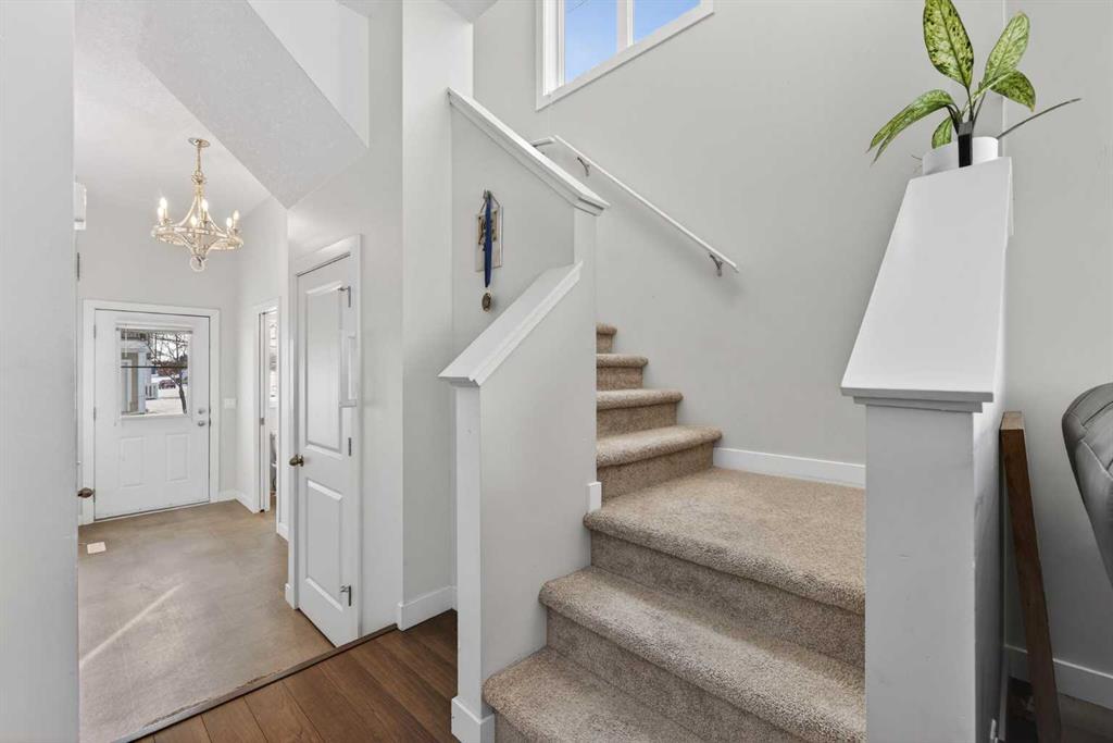 WELCOME TO THIS BEAUTIFUL END / CORNER UNIT TOWNHOUSE IN THE HIGHLY SOUGHT-AFTER COMMUNITY OF WESTMERE IN Chestermere! Offering 3 BEDROOMS, 2.5 BATHROOMS, A SINGLE ATTACHED GARAGE WITH DRIVEWAY, AND A FULLY FINISHED BASEMENT, this home perfectly blends COMFORT, FUNCTIONALITY, AND LOCATION. The MAIN FLOOR greets you with a SPACIOUS LIVING ROOM filled with NATURAL LIGHT thanks to the EXTRA CORNER WINDOWS that only an END UNIT can offer. A DEDICATED DINING AREA provides the perfect space for family dinners and entertaining. The UPGRADED KITCHEN features TALL CABINETRY, STAINLESS STEEL APPLIANCES, GRANITE COUNTERTOPS, A CENTRAL ISLAND, AND TILE BACKSPLASH—ideal for everyday cooking and hosting guests. A convenient 2-PIECE POWDER ROOM completes this level. Upstairs, you’ll find THREE GENEROUSLY SIZED BEDROOMS, including a SPACIOUS PRIMARY BEDROOM with its own PRIVATE ENSUITE and WALK-IN CLOSET. The TWO ADDITIONAL BEDROOMS share a FULL BATHROOM, and the STRATEGICALLY PLACED UPPER-LEVEL LAUNDRY adds everyday convenience. The FULLY FINISHED BASEMENT offers a HUGE REC ROOM—perfect for a home theatre, gym, kids’ play area, or additional living space—along with ROUGH-INS FOR A FUTURE BATHROOM, giving you room to grow. Enjoy the SINGLE ATTACHED GARAGE plus a FULL DRIVEWAY for extra parking. Located RIGHT NEXT TO GREEN SPACE AND WALKING TRAILS, this home is ideal for outdoor lovers. You’re within WALKING DISTANCE to Chestermere’s LARGEST SHOPPING PLAZA featuring Safeway, Petro-Canada, TD Canada Trust, and numerous RESTAURANTS AND DAILY AMENITIES. Also within walking distance are the Chestermere Public Library and the Chestermere Regional Community Association. Commuting is a breeze with just 2 MINUTES TO HIGHWAY 1, 10 MINUTES TO East Hills Shopping Centre, and only 20 MINUTES TO DOWNTOWN Calgary. DON’T MISS THIS INCREDIBLE OPPORTUNITY TO OWN A BRIGHT, SPACIOUS, AND WELL-LOCATED END UNIT TOWNHOME—BOOK YOUR SHOWING TODAY!
