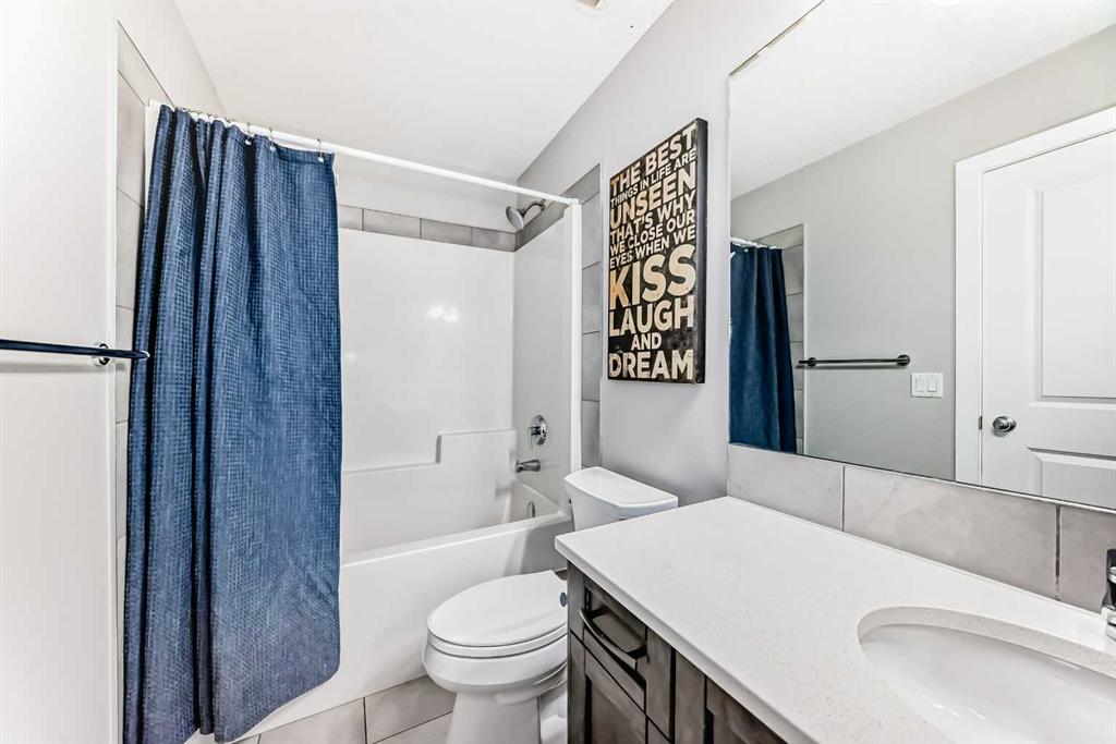 OPEN HOUSE SATURDAY, FEB 14 FROM 11AM -1PM****Located in one of Chestermere’s most sought-after communities, Kinniburgh, this upgraded semi-detached home offers both style and functionality. A spacious front entry welcomes you with an immediate sense of light and openness. The main level features durable vinyl plank flooring throughout, a large laundry room with potential for additional storage. There is a convenient half bath located off the garage entry. There is an open-concept connecting the living room, dining area, and kitchen. The kitchen is finished with white cabinetry, upgraded stainless steel appliances, quartz countertops, an upgraded backsplash, a corner pantry, and a large working island with eating bar. The living room has a corner gas fireplace with an upgraded tile surround, while a feature wall in the dining area adds a stylish focal point to the space. Custom blinds have been installed on main level, and the home is equipped with central air conditioning. The home was also re painted . Upstairs, you’ll find a cozy bonus room, three well-sized bedrooms, and thoughtful design throughout. The master bedroom is generously sized and includes a large walk-in closet and a four-piece ensuite. The two additional bedrooms offer ample closet space.. The fully developed basement adds even more living space, featuring a large bedroom, a spacious recreation room, and another four-piece bathroom. A versatile area at the base of the stairs provides the perfect spot for a home office or study nook. Several light fixtures have been upgraded, including the addition of pot lights in the kitchen. The main entrance provides direct access to the double attached garage, and the home offers excellent street appeal. Ideally located close to East Village amenities and just minutes from all that downtown Chestermere has to offer, this home combines comfort, upgrades, and an unbeatable location.