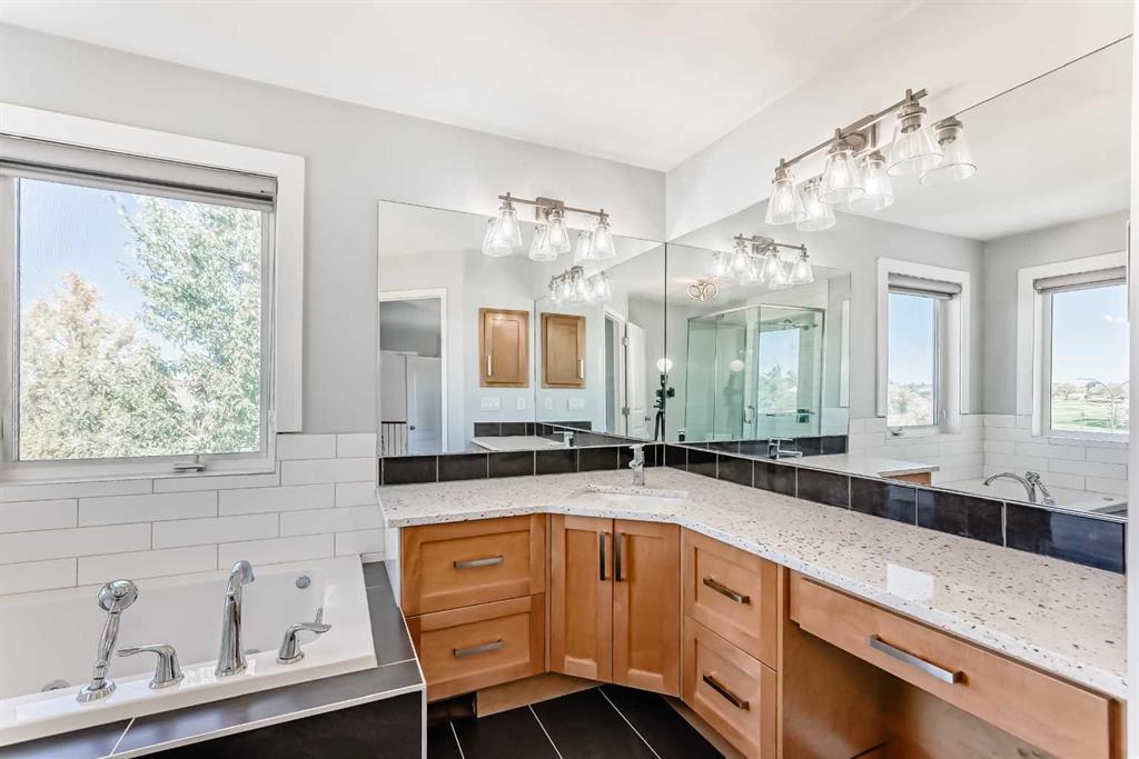 Stunning Views of Lakeside Golf Course! Walkout Basement | Oversized Pie Lot | Income Potential. Don’t miss this incredible opportunity to own a spacious home in the thriving community of Chestermere—without paying new-build prices! Nestled on a quiet cul-de-sac just steps from playgrounds, schools, and the lake, this well-appointed property offers scenic views of the Lakeside Golf Course and features a fully finished walkout basement with an illegal 2-bedroom suite—perfect for extended family or rental income. Main Level Highlights: Open-concept kitchen with hardwood flooring, large island, stone countertops, corner pantry, and a picturesque window overlooking the expansive backyard, Bright and airy living room with a gas fireplace and oversized windows leading to the upper deck-Dining area ideal for entertaining or casual family meals. Upper Level Features: Spacious bonus room with south-facing windows for natural light all day, three generously sized bedrooms, Recently renovated primary ensuite and main bathroom. The basement features an Illegal 2-bedroom suite with separate entrance, Kitchen with newer stove and fridge, Dedicated laundry area, INFLOOR HEATING, Walkout access to a huge, pie-shaped backyard—ready for your landscaping dreams! Additional Perks: Oversized double garage with separate single doors and built-in storage. Whether you’re looking for a family home with room to grow or an investment opportunity with rental income, this property checks all the boxes. Call today to schedule your private viewing and discover the lifestyle that awaits in beautiful Chestermere!