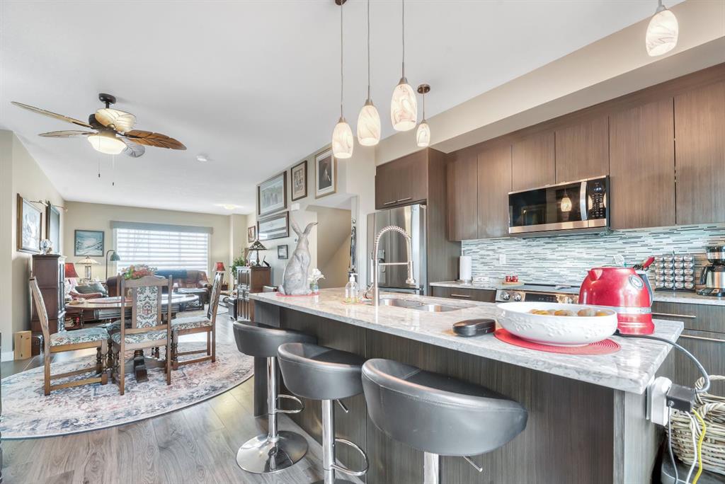 Experience carefree living with all of Chestermere’s amenities just steps from your front door. Walk to shopping, restaurants, bars, gyms, the library and of course - the lake, beach and the many picturesque parks and pathways Westmere has to offer including an a huge off leash dog park! This end unit townhome is immaculate, move in ready and thoughtfully laid out over 3 levels giving you both open plan living perfect for entertaining and gathering as well as quiet intimate spaces for work or relaxation. On the main level is a private office space that is perfect for anyone who is looking to work or study from home. There is even a 2 pc powder room conveniently located on this level. The main floor is open concept, flooded with natural light and boasts 9’ ceilings. The well equipped kitchen is complete with sleek European style cabinetry, newer stainless steel appliances including an induction stove, granite counters and an island with seating. A good sized dining area is located between the kitchen and the warm & welcoming living room. There is a great deck off the kitchen to enjoy some outdoor time.. 3 good sized bedrooms are found on the 3rd level including a primary complete with 3 pc ensuite bath with granite countertops as well as his and hers closets outfitted with Denca custom cabinetry. The main bath also has granite countertops and is ideally located right next to the second and third bedrooms and you’re going to love the convenience of upstairs laundry which is discreetly tucked into its own closet. Check out the Hunter Douglas thermal cell blinds keeping your home cool in summer and warm in the winter. Second floor blinds have remote control features which adds another level of privacy. New carpet has been added to both sets of stairs. The attached single car garage is insulated, heated and drywalled and comes with added shelving for storage. A fenced front yard is perfect for pets and kids to play because yes your fur babies are welcome in this pet friendly with board approval complex. But there’s no need to bring your shovel since snow removal and grounds maintenance is included. Whether you’re looking for your first home, a little more space for a growing family or downsizing for less maintenance and financial freedom this home fits the bill. You are going to love living in the vibrant community of Chestermere. Book your showing now.