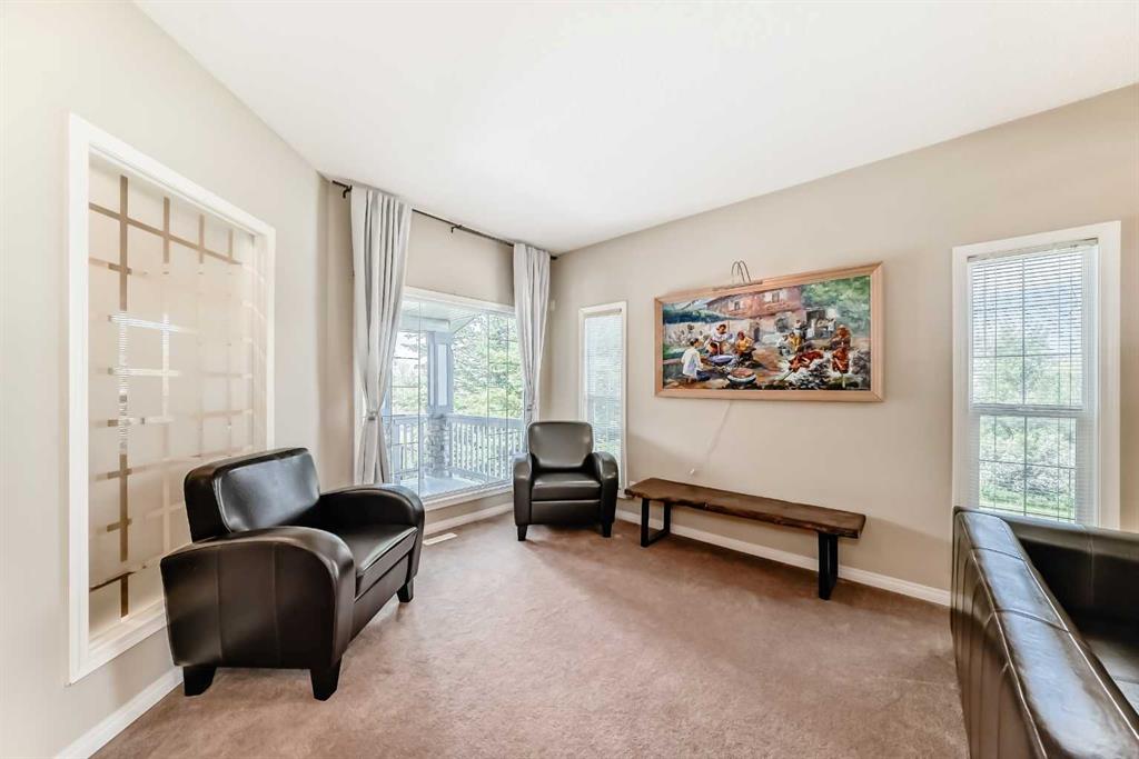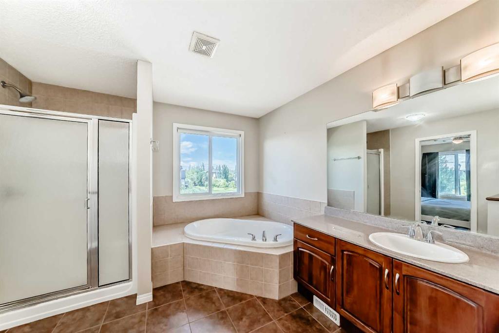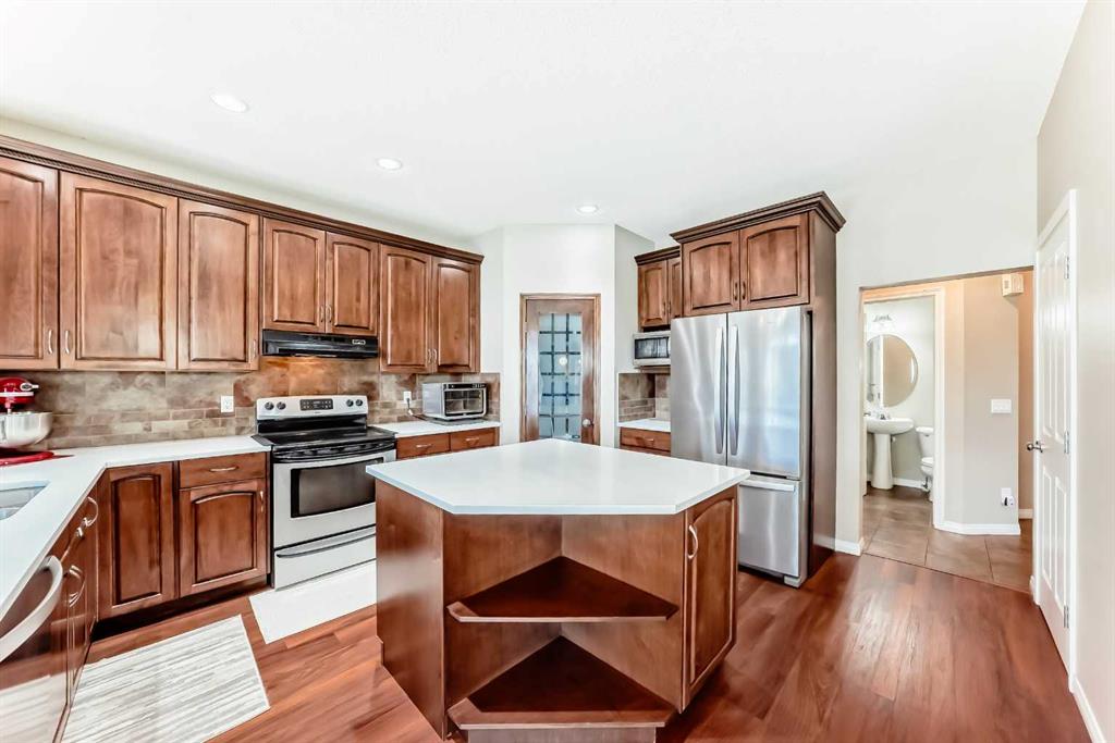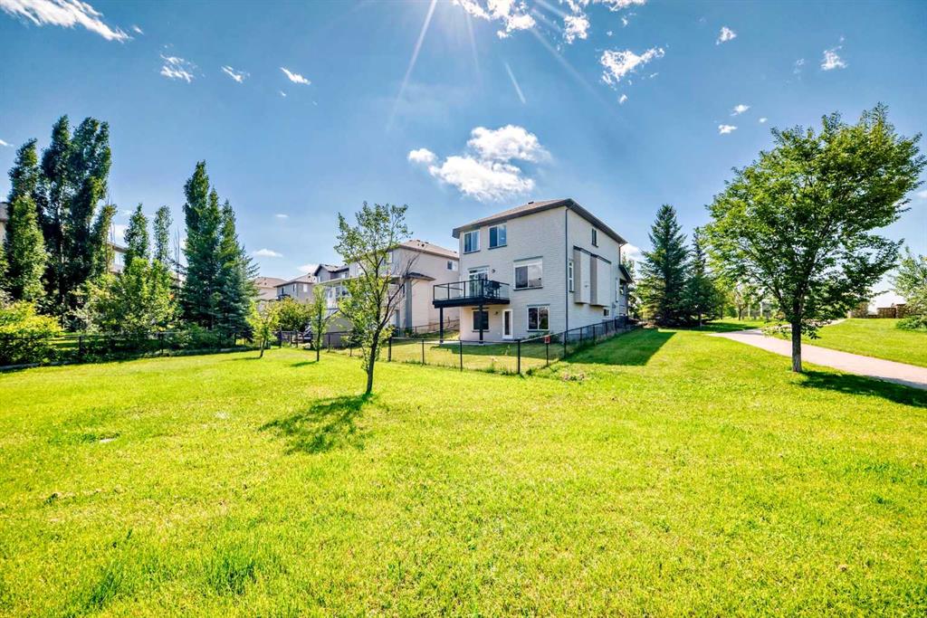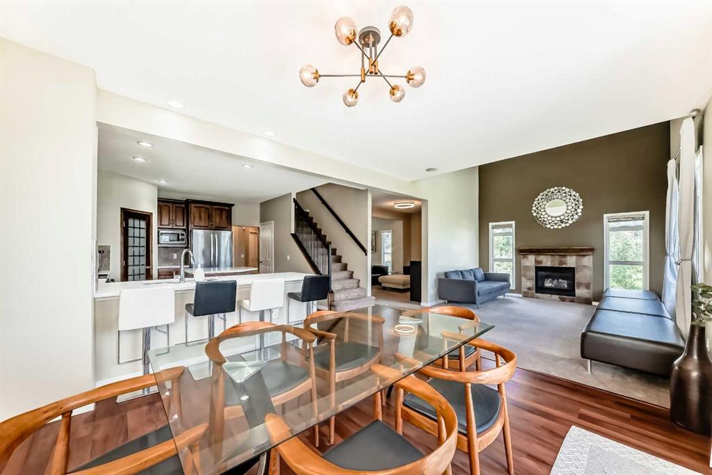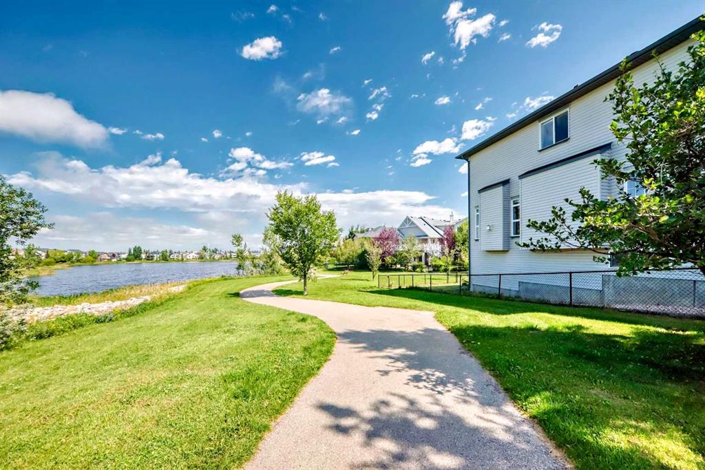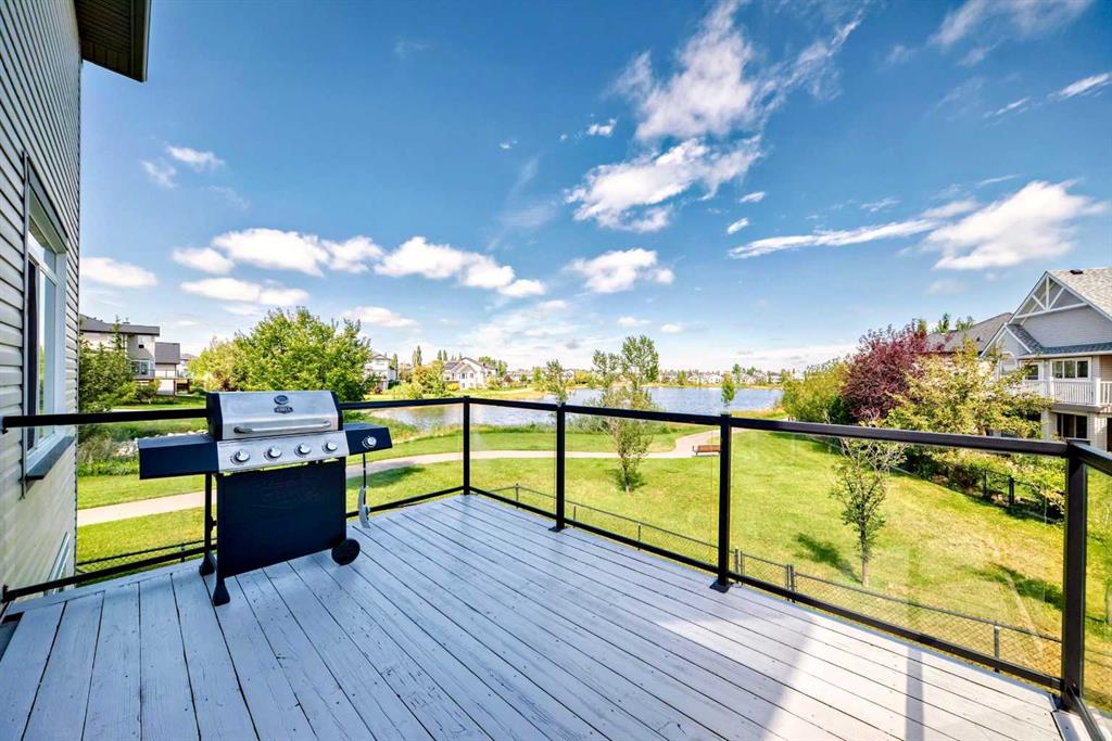 Discover a serene retreat in the heart of West Creek. Nestled on a quiet corner lot with no rear neighbours, this impeccably maintained two-story home offers breathtaking pond views and a perfect balance of elegance, comfort, and everyday living. From the moment you arrive, the heated double garage and new roof (Nov 2023) promise both convenience and peace of mind. Step inside to a main floor designed for both style and function. Formal living and dining rooms set the stage for entertaining, while a sun-drenched breakfast nook overlooks the sparkling pond. The spacious kitchen boasts quartz countertops (2021), abundant cabinetry, and luxury vinyl plank flooring (2021) flowing throughout the main areas. Step onto the deck to savor morning coffee or unwind as the sun sets over the tranquil water. The open-to-below family room, anchored by a cozy fireplace, invites warmth and connection. Upstairs, a versatile loft and three bedrooms await, including a primary suite with walk-in closet and spa-inspired ensuite featuring a soaker tub. Newer carpet (2021) adds softness and comfort underfoot. The fully finished walkout basement is an entertainer’s dream, complete with a large rec room, wet bar, 3-piece bath, and a fourth bedroom with direct backyard access. West Creek blends family-friendly amenities, parks, playgrounds, and nearby Chestermere Lake with the convenience of shopping, schools, and downtown Calgary just 20 minutes away. Take a virtual tour to soak in the pond views, schedule your private visit to experience serene, stylish living at its finest.
