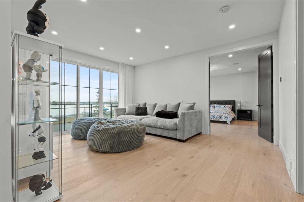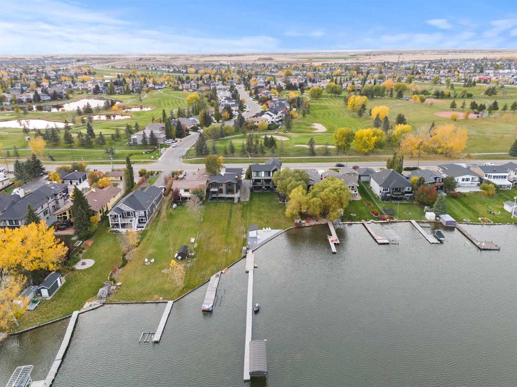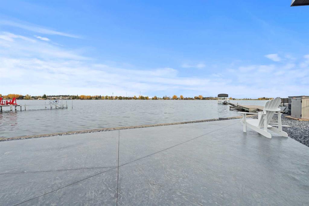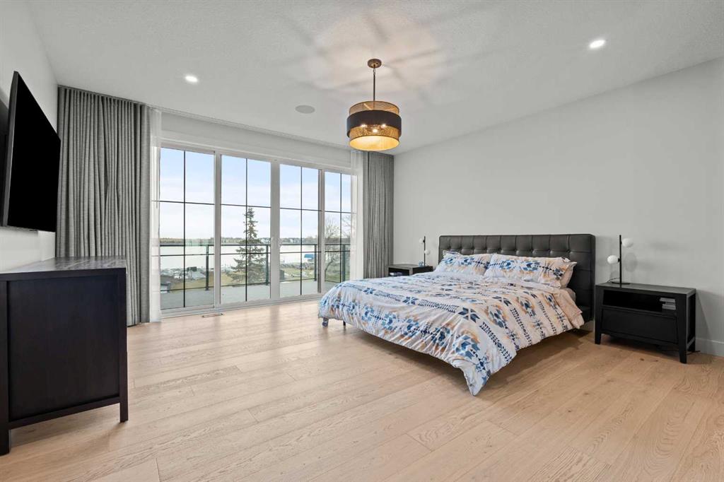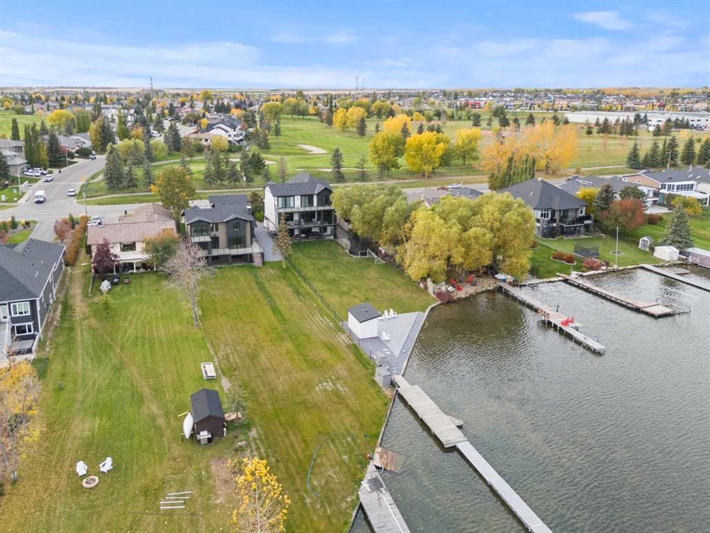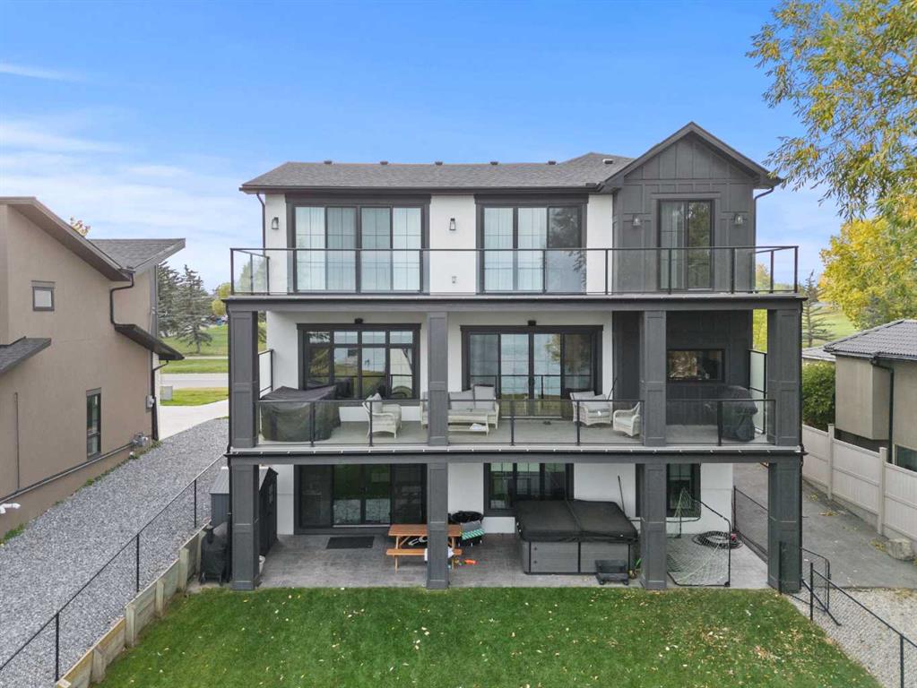 Discover the perfect blend of luxury and lakeside living at 336 West Chestermere Drive. This lakeside gem offers the ultimate retreat with stunning lake views and an array of premium upgrades throughout. Perfectly designed one of a kind home for those who love to entertain or simply savor serene lake living on one of the largest lots on the lake. This home will WOW you from the moment you walk in offering 4200 sqft of luxurious finishing. The main floor plan offers an open concept with 10'0 ceilings that gives you an unobstructed view of the 750 acre lake. Gourmet kitchen equipped with state-of-the-art appliances, custom cabinetry ,10'0 Island and a massive pantry not to forget the pot filling faucet. The mud room comes with built in cabinetry and coat racks leading you to a 4 Car garage with epoxy flooring (23x42) with a mezzanine for additional storage. There is also room to park 4 vehicles in the driveway. Enjoy the views of the golf course while working from the main floor den. Upstairs you will find a total of 4 bedrooms, 2 of which are primary suites with 2 more in the basement. The Grand Primary suite has in floor heating, a free standing tub, steam shower and a heated towel holder. Custom walk in in closets for every bedroom. There is a collection of 4.5 elegantly appointed bathrooms in this home. You will definitely want to take advantage of the upper and lower East Facing wrap around decks with gas hookups for heaters and barbecues. Enjoy listening to music from both the interior and exterior speakers. Laundry is conveniently located upstairs along with a bonus room with access to upper balcony. Downstairs you will find another recreation room with wet bar , 2 more bedrooms and 9 foot ceilings. Enjoy the natural light from all the windows on all 3 levels. and the high end blinds throughout. The walkout basement takes you to the fully landscaped yard with an irrigation system with mature trees and a new hot tub. There is a brand new dock and boat lift with a storage shed with electricity to store your summer toys. This truly is one of the best walkout lots on the lake that is turn-key move in ready and enjoy lake living. There is both a sea doo lift and a boat lift with remote to accommodate larger boats and keep them covered from the elements. This home is still covered under New Home Warranty. Call your Favourite realtor to view this amazing lakefront property as this one will not last!