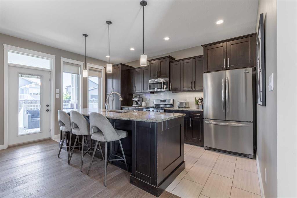A stunning Cottonwood home that offers a floor plan perfect for entertaining, cozy outdoor spaces and a heated garage to boot! This fully finished 2 storey welcomes you with a covered front verandah, extra long driveway and soaring ceilings on the main floor. A bright and open concept living area hosts a granite adorned kitchen complete with gas stove, built-in book shelves flanking the gas fireplace and only a few steps away from your covered back deck. There's a powder room on the main floor as well as a laundry room with sink! Heading upstairs there is a bonus room right at the top, 2 bedrooms that share a 4 piece bathroom and the primary suite that has a huge walk-in closet and 5 piece ensuite! The finished basement includes a spacious family room, 2 more bedrooms, 3 piece bathroom and storage area! Lots of yard to enjoy out back with a patio, and gas line for your BBQ!