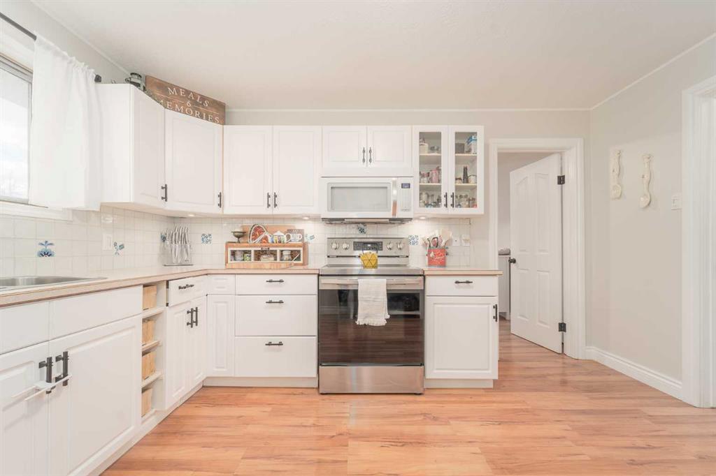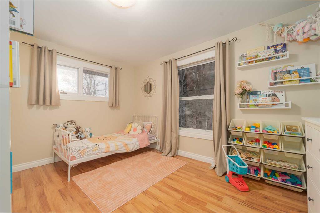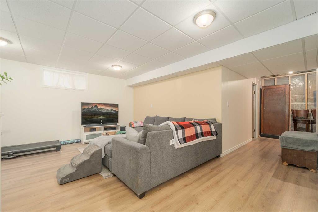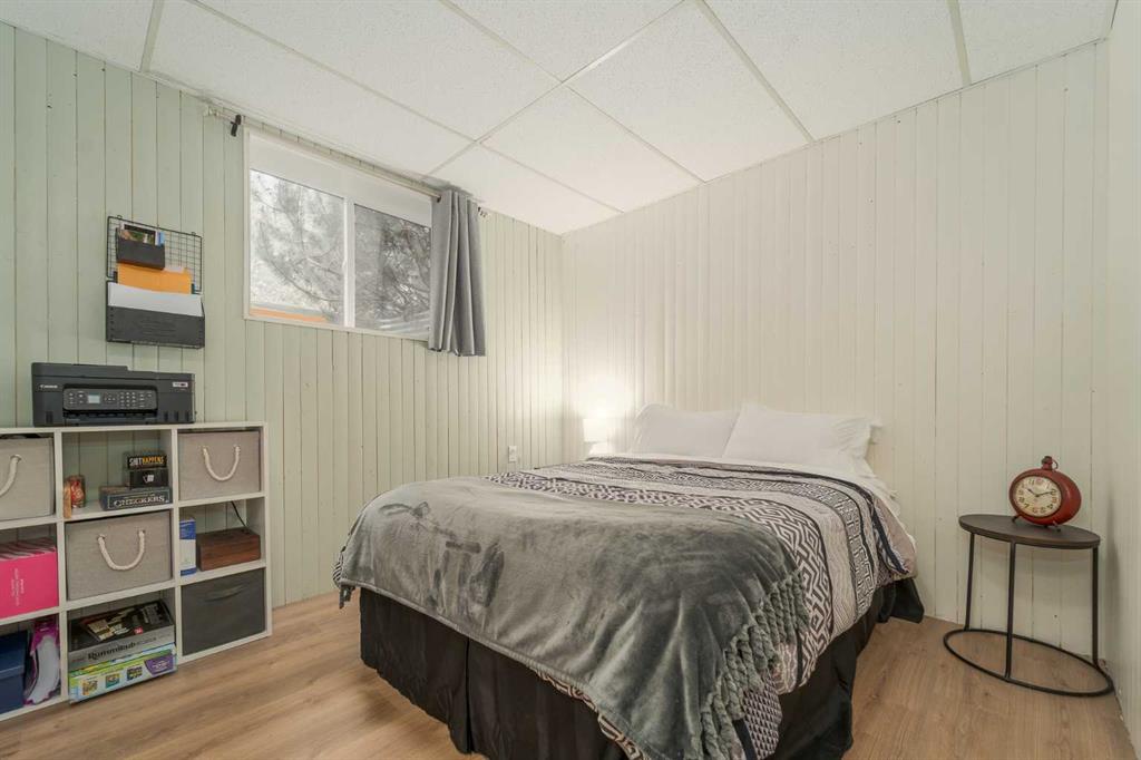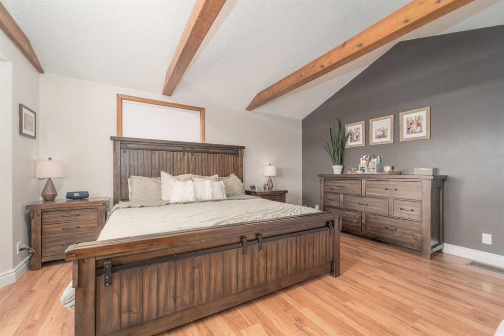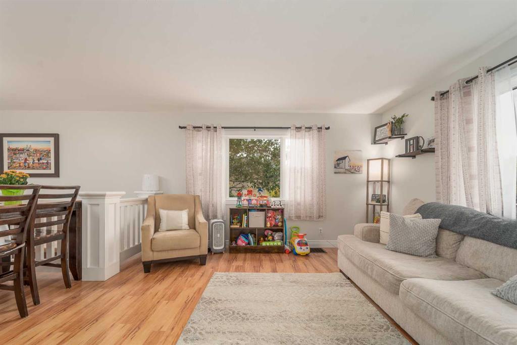 Welcome to this charming and updated home in a beautiful, mature neighbourhood! Step inside to find a spacious front room featuring soaring vaulted ceilings with exposed beams — a versatile space that currently serves as a stunning primary bedroom. The main living area is warm and inviting, with large windows that fill the space with natural light. Durable laminate flooring extends throughout the main floor, leading to a bright kitchen complete with white cabinetry and newer appliances. You’ll also find a second bedroom, a full bathroom, and a cozy sunken sunroom — perfect for relaxing or entertaining. The lower level offers even more space, featuring an additional bedroom, full bathroom, laundry, storage room (which could easily be converted into another bedroom), and a large family room. Outside, enjoy a private, fully fenced backyard surrounded by mature trees and lush landscaping. The front offers two parking pads, including one long enough for an RV. Recent updates include the roof, furnace, paint, flooring, and appliances, giving you peace of mind for years to come. Conveniently located near schools, shopping, and with easy access to the highway, this home combines comfort, flexibility, and a fantastic location. Contact your favourite REALTOR® before it’s gone!