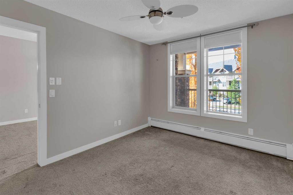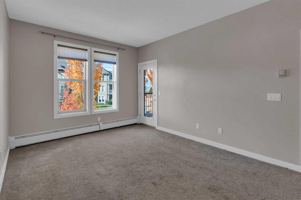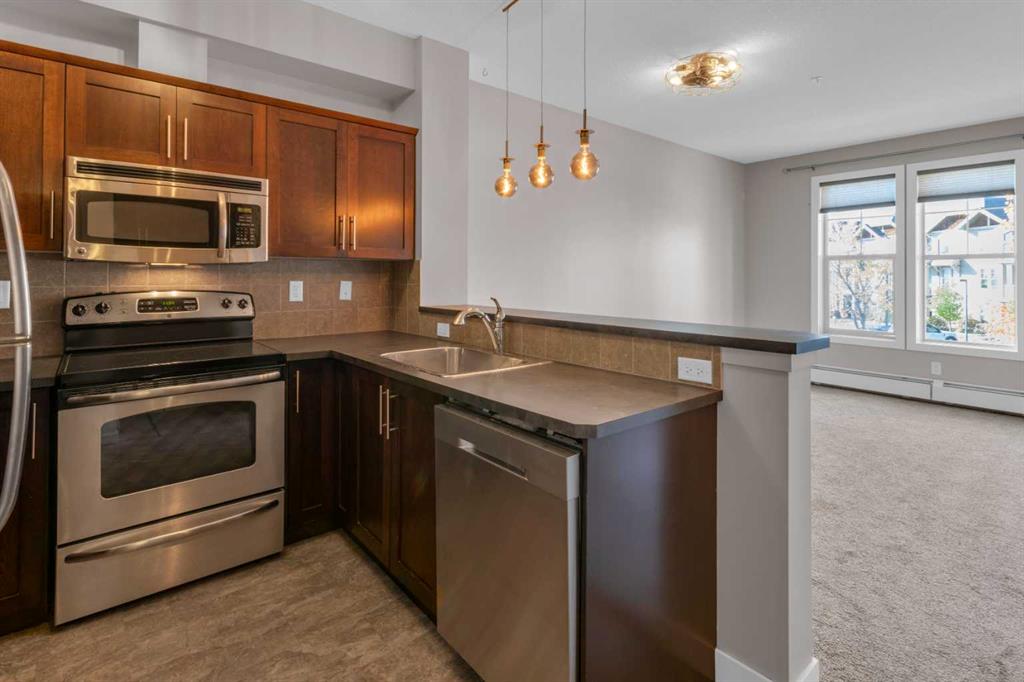 Perfectly positioned to capture beautiful mountain views, this one bed, one bath condo combines the comfort of single level living with everyday convenience in the heart of Sunset Ridge. Inside, you’ll find an open-concept layout designed for both function and style. The kitchen features ample cabinetry, and a breakfast bar ideal for casual dining. The cozy living area opens to a private west facing balcony, perfect for enjoying morning coffee or evening sunsets against a Rocky Mountain backdrop. The bedroom offers generous space and ample natural light. Additional highlights include titled underground parking, a secure storage cage, and in-suite laundry for added convenience. Whether you’re a first-time buyer, investor, or down-sizer, this home offers exceptional value and lifestyle in one of Cochrane’s most desirable communities, this wonderful complex has full fitness centre included and guest suite for nominal fee. Located within walking distance to the beautiful Cochrane Ranch path system as well as a short walk to restaurants, coffee shop/bakery, dentist, liquor store, gas station, convenience store, parks, play grounds, schools & other amenities. Pet policy: one cat or one dog 18lbs max