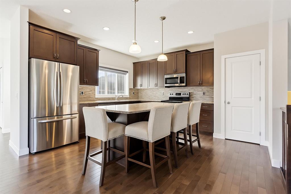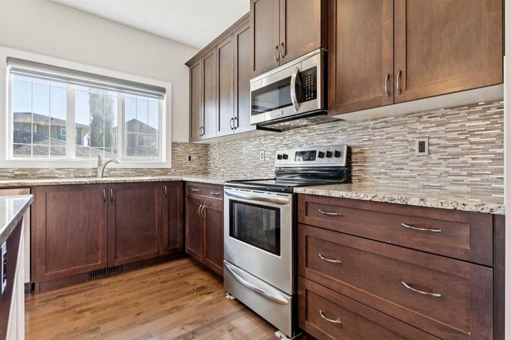 Open house Saturday Oct 18 11am-2pm-NEW CARPET| NEW DISHWASHER | FRESH PAINT- Welcome to your storybook retreat in the heart of Heartland, Cochrane, where big skies meet cozy community living. This 1,600+ sq ft two-storey gem sits proudly on a large corner lot, surrounded by friendly neighbours, walking paths, and mountain views that remind you to slow down and breathe it all in. From the moment you arrive, the covered front porch welcomes you with charm and warmth, offering the perfect spot to enjoy your morning coffee or evening sunsets while adding incredible curb appeal. Inside, this home feels fresh and full of life, with brand-new carpet throughout and several rooms freshly painted and touched up. The open-concept main floor was designed for connection and comfort, offering a space where everyone can gather or spread out with ease. At the heart of the home, the kitchen shines with rich wood cabinetry, bold quartz countertops, and a large central island perfect for breakfast conversations or holiday baking marathons. There’s ample cabinet storage, a pantry for keeping things organized, and a window overlooking the backyard that fills the space with natural light. Adjacent is a bright dining area made for family dinners and friendly get-togethers, as well as a cozy office nook off the mudroom, ideal for homework, planning, or remote work. The family room’s central gas fireplace adds warmth and charm, creating a comfortable space to unwind after a long day. Upstairs, you’ll find three bedrooms and two full bathrooms, including a spacious primary suite with its own ensuite oasis featuring a soothing bathtub and glass-enclosed shower. The convenient upstairs laundry room offers additional storage, making daily routines simple and stress-free. The unfinished basement is a blank slate, ready for your future gym, playroom, or dream entertainment space. Step outside to discover an expansive south-facing backyard and side yard, perfect for kids, pets, or weekend barbecues on the rear deck. Enjoy all-day sunshine and plenty of space to play, garden, or relax. The oversized double detached garage provides ample room for vehicles, tools, and toys, while the extra space behind the garage is ideal for a boat, small trailer, ATV, or additional storage. . Located steps from a park and playground, this home is surrounded by the warmth and spirit that make Heartland one of Cochrane’s most loved communities. Here, neighbors wave hello, children ride bikes through winding paths, and every day ends with a sunset over the mountains. You’re also just a minute from the new Cochrane RCMP station for added peace of mind. Heartland offers a true small-town feel with modern convenience, local cafes, shops, and scenic walking trails are right at your doorstep, and Calgary is only a short drive away. Welcome home to Heartland, where charm, comfort, and community come together beautifully! Book a showing today!