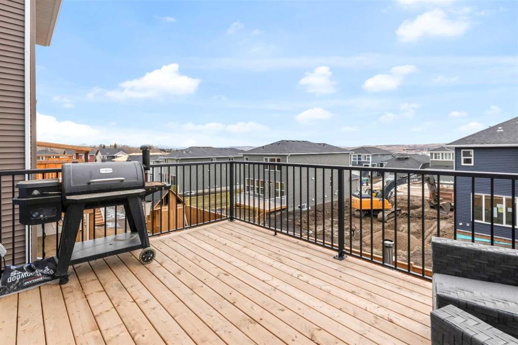 Located in the prestigious community of Rivercrest, this beautifully designed home offers nearly 3,500 sqft. of finished living space, thoughtfully crafted for both comfort and elevated everyday living. Flooded with natural light and positioned to capture stunning views of downtown Cochrane and mountain views to the west. This home features 3 spacious bedrooms on the upper floor plus a main-floor flex room, ideal as a private home office or 4th bedroom with the added versatility of a Murphy bed, along with a 1-bedroom suite on the lower level. The main level welcomes you with 9 ft ceilings, a spacious foyer and a seamless open-concept layout anchored by expansive windows and a large sliding patio door. The kitchen is both stylish and functional, featuring an expansive 8’ island, ample counter space, and built-in appliances, perfect for entertaining and everyday living. The living and dining areas are warmed by a cozy fireplace, creating an inviting atmosphere for gatherings and quiet evenings alike. The fully developed lower-level one-bedroom walk-out suite features 9 ft ceilings, a kitchenette, large windows, a bright open feel, beautiful ensuite bathroom, ample storage and a separate entrance, offering exceptional flexibility for extended family, guests, or as extra rental income. Upstairs, a centrally located bonus room provides the ideal space for family movie nights or a children’s play area. The primary retreat offers a serene escape, complete with a spa-inspired ensuite featuring double sinks, a tiled shower, and a soaker tub. For added convenience, the laundry room connects directly to the primary walk-in closet. Two additional bedrooms are thoughtfully positioned alongside a 5-piece bathroom with a separate sink area and a charming reading nook. Step outside to enjoy the evening sun and panoramic views of the town, surrounding hills, and mountain range from the oversized back deck. Set on a quiet street in a boutique community known for its scenic surroundings and future school site, Rivercrest offers a strong sense of neighbourhood and exceptional access to downtown Cochrane, Spray Lakes Recreation Centre, and an easy commute to Calgary.
