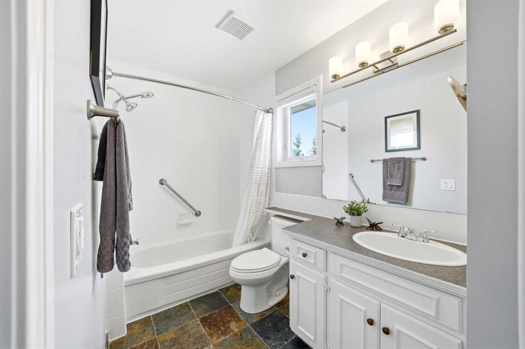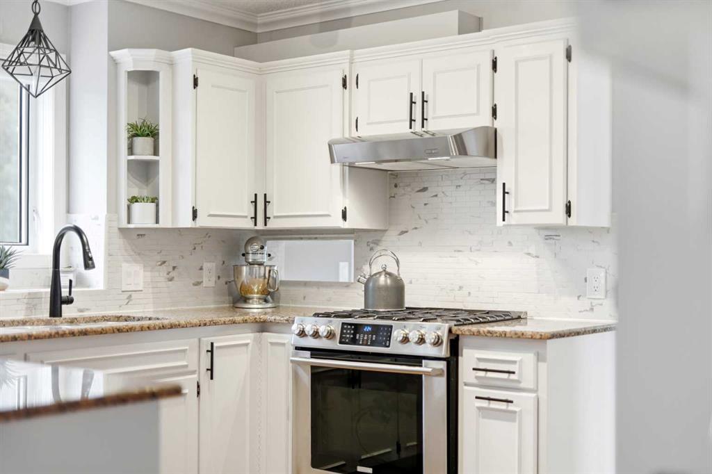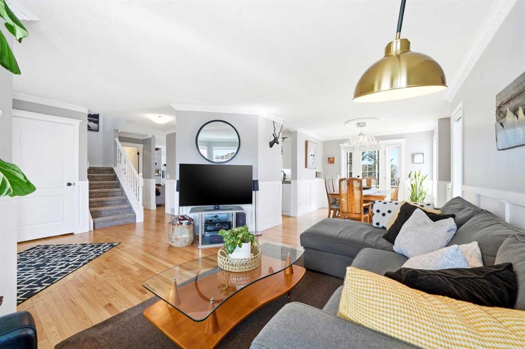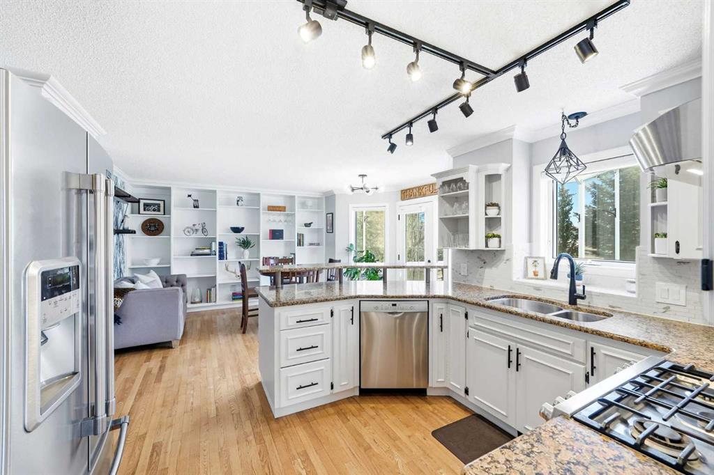 Welcome to this beautifully updated and thoughtfully designed 4-bedroom walkout home, ideally situated on a quiet court in one of Cochrane’s most sought-after locations. Set on a generous, landscaped lot backing onto the 9th hole, this property offers the perfect blend of privacy, views, and everyday convenience—just steps to the Bow River pathways and a short walk to SLS Recreation Centre, and downtown amenities. From the moment you arrive, you’ll be captivated by the home’s inviting curb appeal, featuring an expansive front porch with updated glass railings—an ideal spot to take in the warm western sun and stunning evening sunsets. Inside, the bright and airy main floor is filled with natural light, showcasing rich hardwood floors, modern lighting, and a thoughtfully updated kitchen complete with granite countertops, a gas stove, stainless steel appliances, and unique touches like a dedicated coffee station and convenient built in shelving. The dining room and kitchen breakfast nook both open to the show-stopping enclosed screen porch—your three-season escape overlooking the golf course, perfect for enjoying peaceful, sun-filled mornings in a sheltered, wind-free extension of your living space. The sunroom also features a newly updated roof, allowing an abundance of natural light to pour into the home. Upstairs, the spacious primary suite offers a true sanctuary, complete with a beautifully renovated ensuite featuring quartz countertops, a spa-inspired tub, and a spacious new walk-in shower. A custom barn door enhances privacy, while additional features such as custom window coverings and a dedicated window A/C unit ensure year-round comfort. Two additional bedrooms and a full bathroom complete the upper level. The fully finished walkout basement expands your living space with a generous recreation and entertainment area, a cozy gas fireplace, a fourth bedroom with an expansive closet, a full bathroom, and flexible space ideal for a cozy home office or storage room Step outside to the covered patio, already wired for a hot tub, and enjoy seamless access to the backyard oasis. Outdoors, the property continues to impress with extensive low-maintenance landscaping, featuring a beautiful selection of shrubs and perennials for vibrant seasonal color. A charming garden shed, updated exterior lighting, and modernized deck skirting add both function and style. Additional highlights include a double attached garage with built-in loft storage, a dedicated insulated bike storage room, and a workbench with tool wall. The home also features a gas BBQ hookup, an operational security system with cameras (no contract), and recently serviced mechanical systems, including furnace, humidifier, hot water heater and recently cleaned vents. With incredible neighbours, a peaceful setting, and an unbeatable location just 400 metres to the river and pathways, this is a rare opportunity to own a move-in ready home that truly has it all!