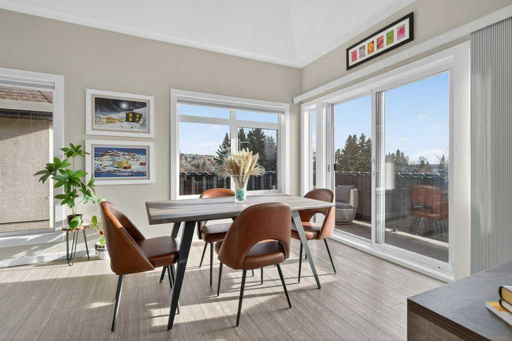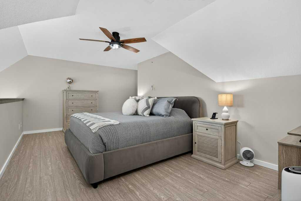 Experience exceptional condominium living in this incredible multi-level residence at 141 Mountain Street—one of the largest layouts in the entire building. Set in a quiet corner on the south side of the building, this unique unit comes with two titled parking stalls and offers an impressive level of privacy and natural light. Vaulted ceilings and massive windows draw your eyes to a view to Cochrane, while the expansive wrap-around balcony provides a relaxing spot to enjoy a hint of the mountains. The main level features a bright, open design that is perfect for both everyday living and entertaining. Fresh paint and meticulous upkeep make the space feel warm and welcoming. The well-appointed kitchen includes plentiful cabinetry, generous counter space, and a quartz island, ideal for prepping meals or gatherings with friends or family. A spacious dining area flows easily into the inviting living room, complete with a beautifully tiled gas fireplace. This level also includes a comfortable second bedroom, a 4-piece bathroom, and convenient in-suite laundry. Upstairs, the loft-style primary suite offers a peaceful escape with room for large furniture, a walk-through closet with exceptional storage, and a private 4-piece ensuite with dual quartz vanities. Recent upgrades include: New Kitchen cabinets, remodelled island, quartz counter-tops, all new appliances (incl. washer & dryer), new tile in foyer, kitchen backsplash, fireplace surround and both bathrooms (floors & tub/shower), fireplace mantle, paint (walls, doors, trim & ceiling), new sinks, faucets & toilets, light fixtures, custom blinds, new door hardware and even a custom built pantry. A unique advantage of this unit is dual elevator access—allowing you to reach your home from either the third or fourth floor. The heated parkade includes your two titled stalls, plus additional accessible and visitor parking for added convenience. Just steps from downtown Cochrane’s shops, restaurants, and amenities, this location also provides simple access to Calgary and the mountains via Crowchild Trail, Highway 1, and the nearby Tuscany C-Train station.