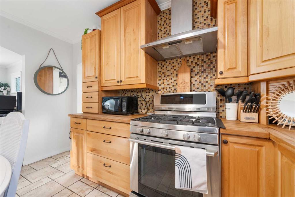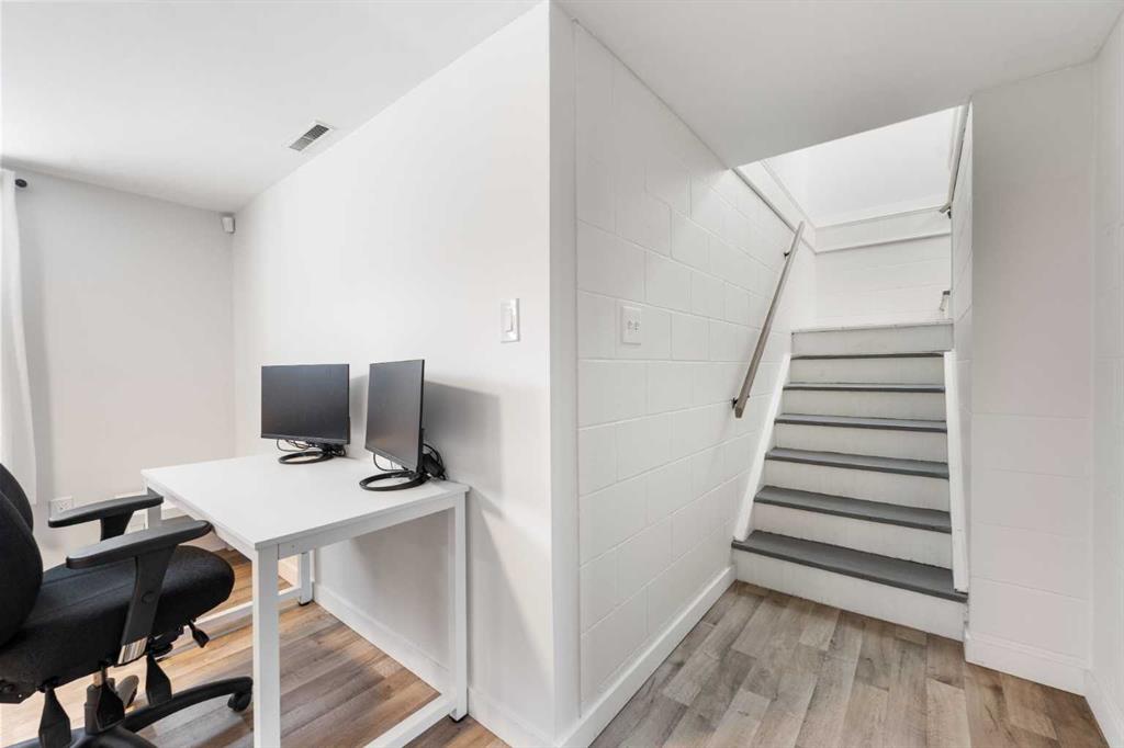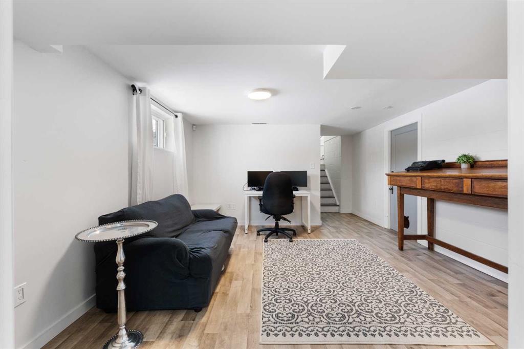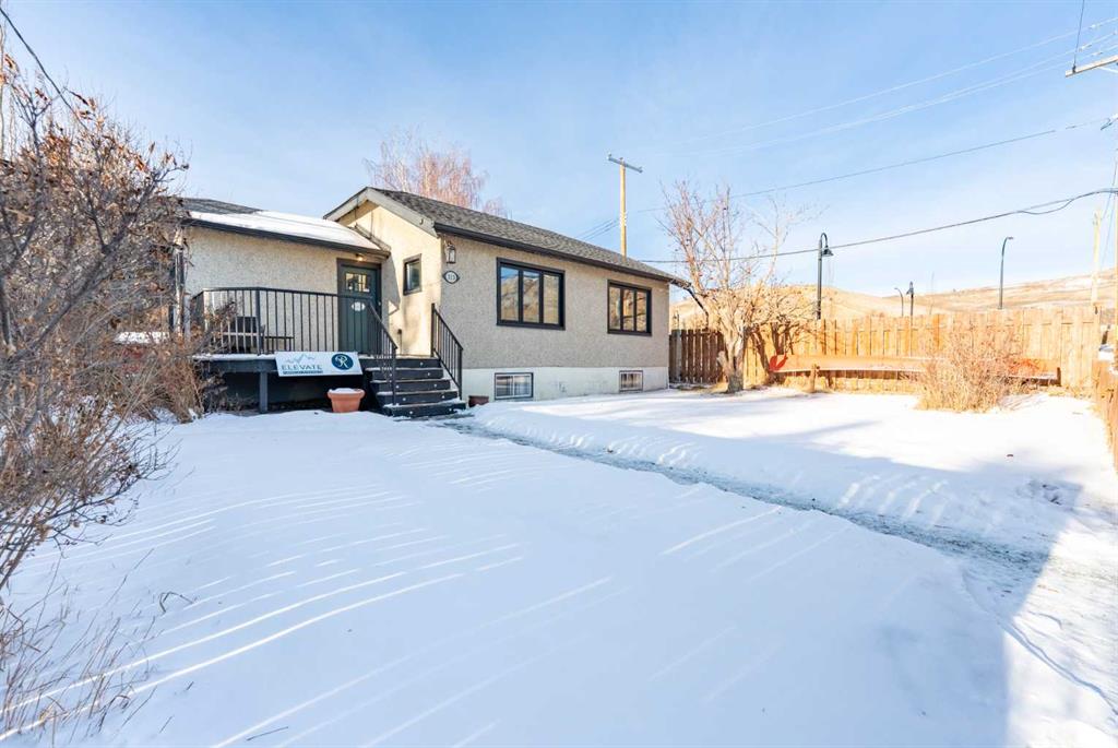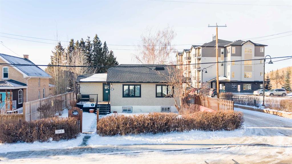 Located in Cochrane, this commercial bungalow in a residential style setting offers a flexible workspace suitable for a variety of business uses. Currently occupied by a professional services office, the property is laid out to accommodate both open work areas and private rooms. Added feature for this property included for a live/work setup. Zoned C-T (Commercial Transition) approved uses include professional and business offices, financial and health services, childcare and day home operations, artist studios, personal services, select retail uses, and home occupations (Class 1 & 2). The main level includes a functional kitchen and dining area with stainless steel appliances, a spacious office near the entry, two additional office or meeting rooms, and a 4-piece bathroom. The fully finished lower level provides a large open workspace, two enclosed rooms, a 3-piece bathroom, and a dedicated laundry area with sink and storage. A fenced backyard with patio and mature landscaping offers outdoor space for staff, while the front porch and maintained yard create a professional first impression. The property offers central air conditioning for year-round comfort and a single detached garage for added convenience. This unique mixed-use property combines residential comfort with the functionality of a commercial space.