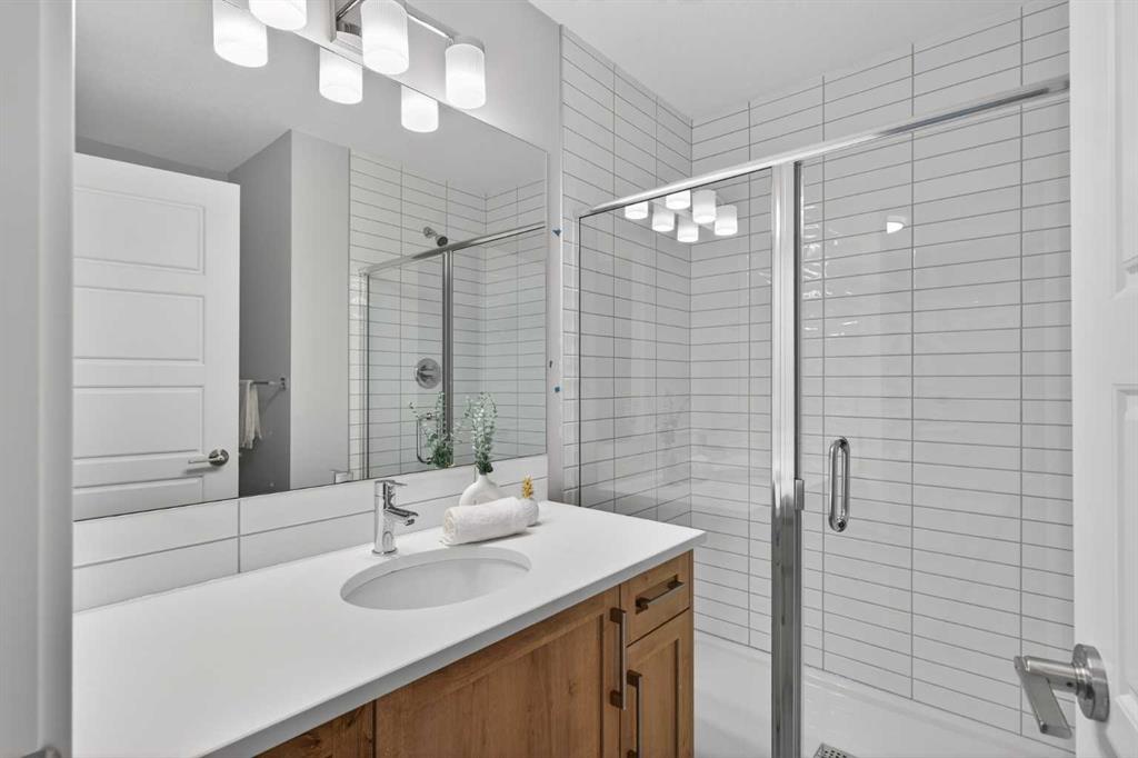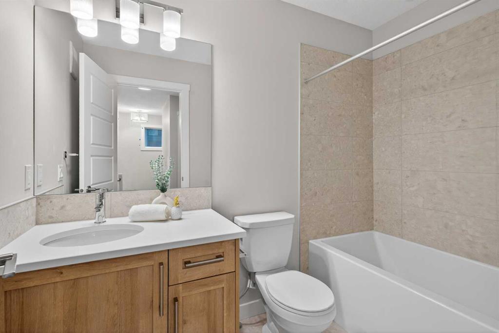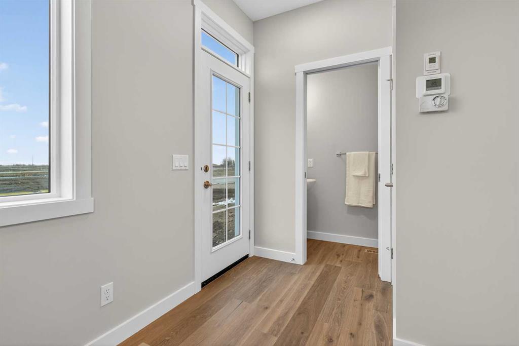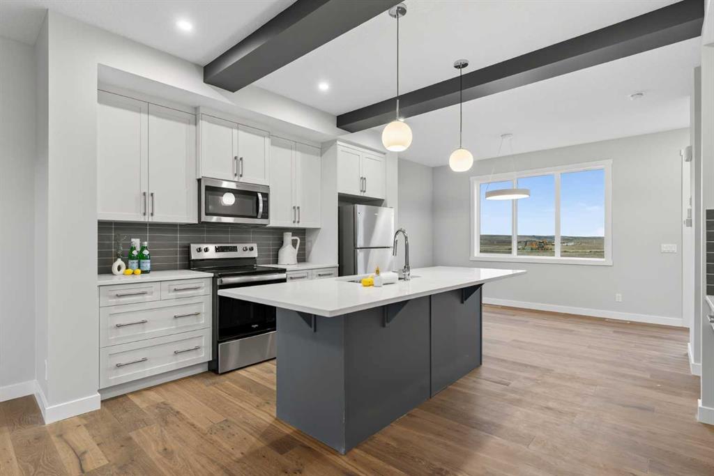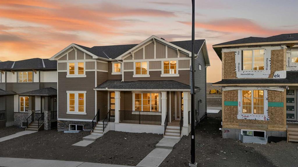 Welcome to Southbow Landing, a brand new community in South Cochrane that has the perfect balance between big city living and mountain cozy mountain vibes. This home is perfect for the adventurous young couple buying their first home, or a retiree looking at resizing to be closer to the mountains. This home boasts it all with 1287 square feet on two floors, 3 bedrooms, 2.5 bathrooms, plus a spacious nook. Set with a wide front porch to enjoy a coffee in the fall, or a cozy electric fireplace to stay warm in the winter, this home is well worth seeing. The kitcehn includes a bright dining nook with upgraded 42" full height soft close cabinetry and a stainless steel appliance package. The home has a basement side entrance that comes standard. A Rear parking pad is included to lower the cost of a garage. The home has 9 foot ceilings, quartz countertops in the kitchen and upstairs laundry. Engineered hardwood on the main floor , and a large walk in closet in the upper primary suite. The bathroom and laundry both have tile to make it feel upscale. Welcome to the Melbourne - a Douglas Home. Photos shown are from a similar model. This homes interior finishings may differ slightly. Please visit showhome for a tour Monday to Friday - 2-8pm and Saturday and Sunday 12-5 pm. Estimated completion: April, 2026.