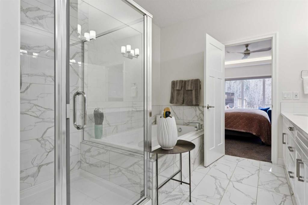 Single-level living perfected at this exceptional bungalow villa in “River’s Edge”. Riviera Court offers an amazing cul-de-sac setting on the banks of the Bow River. This choice location is loaded with parks and pathways including the “Trans Canada Trail” to easily experience the serenity of nature. This home backs a forested environmental reserve with no neighbours behind. Developed by Jayman with energy efficiency and low maintenance in mind. Features include triple-pane windows, active solar panels to reduce energy costs, dual-zone furnace, UVC air purification filter, tankless (on demand) hot water unit, “Ring-doorbell” system and EV plug-in in the attached garage. The home is also loaded with upgrades…from the superior built-in appliance package to the deluxe fittings in the primary closet; from the extensive landscaping to the entertainment wall in the lower family room with fireplace and mantle. Professionally painted in 2025 and with new Hunter Douglas honeycomb window coverings. Enter to an open plan with high ceilings and large windows. Gracious entry with storage bench. Adjacent flex area for office or den. Bright and sparkling kitchen with shaker-style cabinetry, large island with overhang for stools, pantry with pull-out drawers and stainless appliances including built-in oven and gas cooktop to support your culinary adventures. Generous living space with wall-to-wall windows overlooking the beautiful yard and treed escarpment. Host family and friends in the casual dining space. Wonderful upgraded primary bedroom with indirect lighting and ceiling fan, 5-piece ensuite (double sinks, soaking tub, walk-in shower) and a large walk-in closet with custom fittings including hanging space, open shelves and drawers. A powder room and a single attached heated garage complete the main level. Fully developed lower level with a family room, 2 large bedrooms, office-den, 4-piece bath and storage. The laundry is currently in the lower level but can be moved to the primary closet. This home enjoys a deeper than typical lot, flat at the rear and pulled away from the base of the slope. Sunny Southeast rear exposure with gorgeous opportunities for outdoor living. The outstanding professionally landscaped rear yard includes a large upper deck with power sunshade, a stone terrace with covered gazebo, perimeter beds and mature trees for privacy from the walking path and a sprinkler system. NO condo fees. Come explore this amazing residential opportunity.