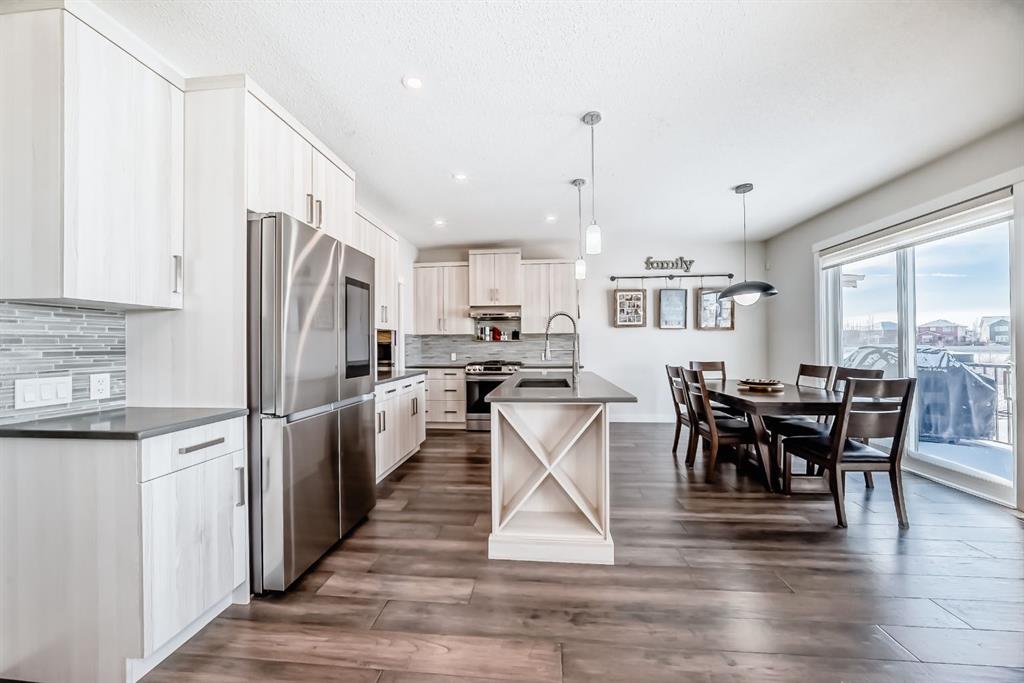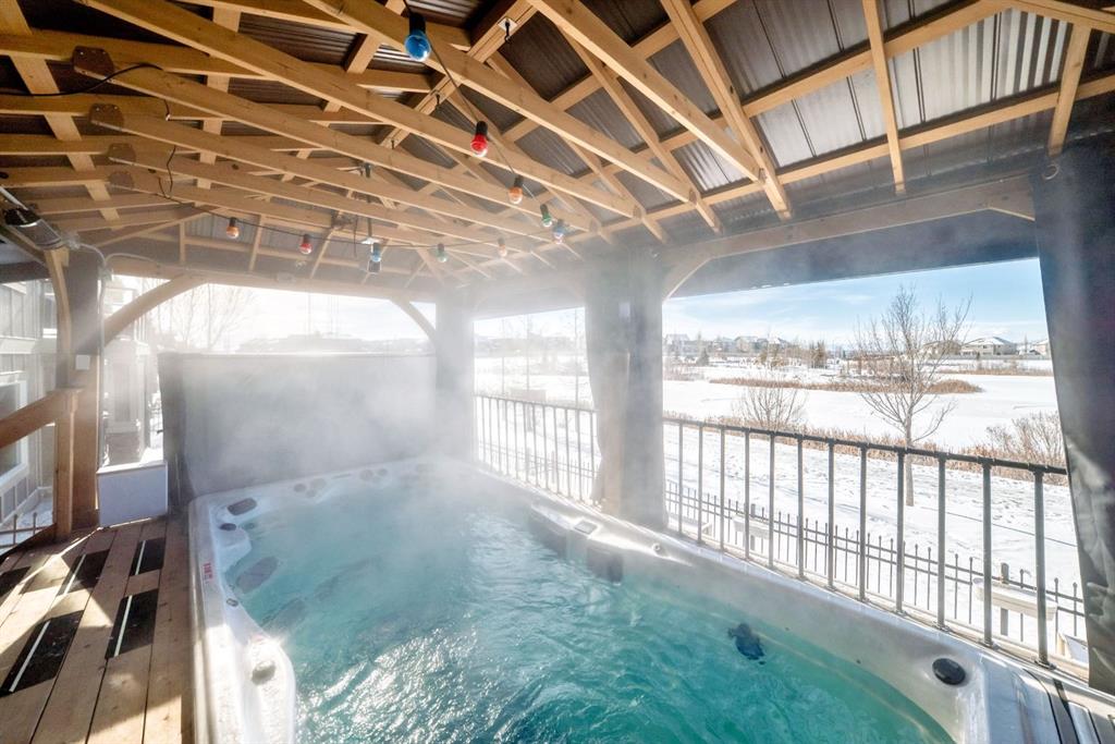Welcome to this exceptional two-storey walkout home in the sought after community of Sunset Ridge in Cochrane, offering over 3000 sq. ft. of developed living space and panoramic mountain views that perfectly balances natures beauty and everyday living. From the moment you enter, you’re welcomed by a bright, open layout featuring a dedicated main floor office, ideal for working from home. The stunning kitchen is the heart of the home, showcasing quartz countertops and stainless steel appliances that were updated just one year ago including a gas range with hood fan and a large walk through butlers pantry with plenty of built in custom storage and a coffee bar. The double attached garage is fully finished, heated with appoxy flooring and storage space for all your tools and toys. The kitchen area seamlessly flows into the sun filled dining and living area with cozy gas fireplace with stacked stone surround and built in shelving framed by expansive windows with breathtaking MOUNTAIN VIEWS. Step out onto the full length upper deck with a convenient gas line for your BBQ and take in the peaceful setting backing onto scenic walking paths and the beautiful Sunset Ridge pond. Upstairs, a spacious bonus room offers the perfect spot for movie nights or a kids’ retreat, while the primary suite provides a luxurious escape with panoramic mountain views, a spa inspired 5 piece ensuite, soaker tub, dual vanities, and a generous walk in shower with rainfall shower head. Two additional large bedrooms and a generous sized full bathroom complete the upper level. The fully finished walkout basement is designed for entertaining, featuring a large family room, wet bar, gas fireplace, fourth bedroom, and a 3 piece bathroom, ideal for guests or extended family. Outside, over $120,000 has been invested in creating a backyard oasis, highlighted by a fully enclosed, year-round swim spa with electric blinds for privacy and incredible cedar deck and pergola. (swim spa has been additionally insulated on all sides for efficiency). The swim spa area also features LED lighting, projector and screen so you can watch your favourite shows or the game while relaxing. A truly one of a kind backyard making you feel like you are on vacation every day! Sunset Ridge is known for its active, family friendly lifestyle, offering over 5 km of scenic pathways, parks, playgrounds, a central park, a 6 acre freshwater pond, and access to excellent nearby schools including walking distance to RancheView School(K–8) and St. Timothy's High School. With its premium location, incredible views, and impressive upgrades, this home truly has it all, an outstanding opportunity in one of Cochrane’s most desirable communities and locations. Book a showing today!