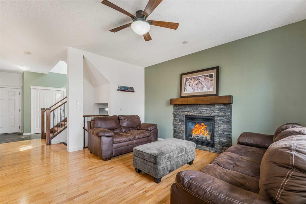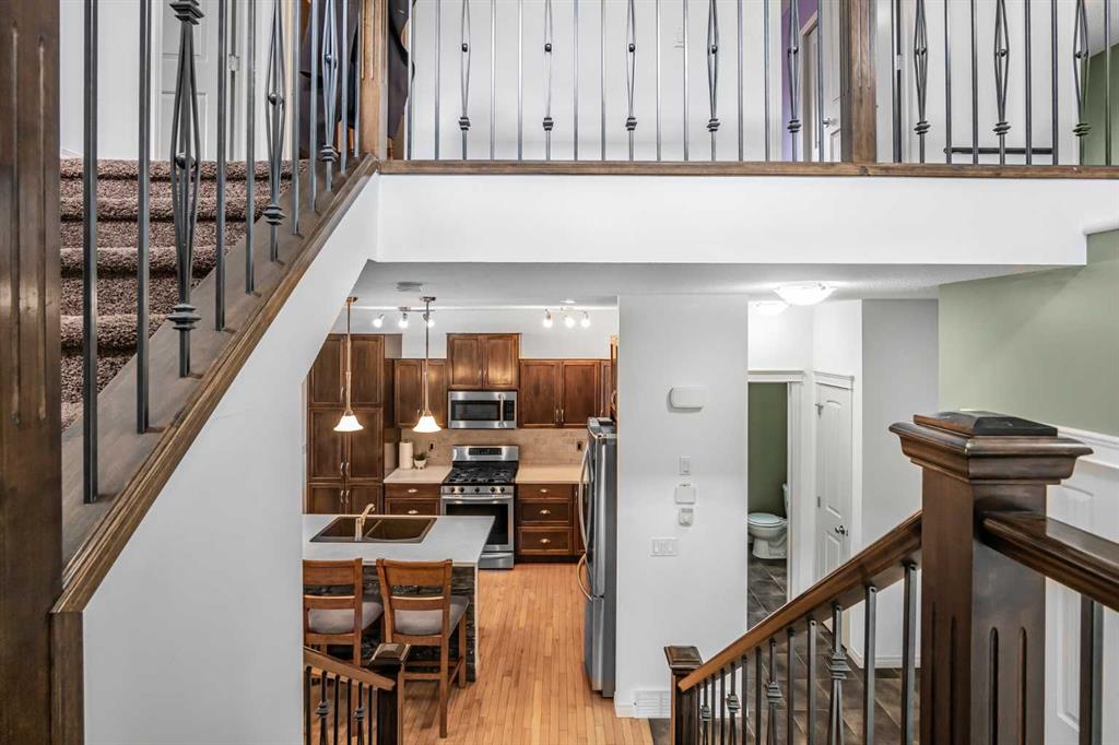 Nestled in the highly sought-after community of Heritage Hills, this beautifully FULLY FINISHED 5-bedroom, 3.5-bathroom home offers over 2,500 sq. ft. of thoughtfully finished living space, including a fully developed basement and a sun-filled southwest-facing backyard. Blending everyday functionality with stylish finishes, this home is perfect for families who love both comfort and entertaining. Step inside to discover a bright and welcoming main floor featuring 9’ ceilings and large windows that flood the space with natural light. The open-concept layout creates a seamless flow between the living room, dining area, and kitchen—ideal for hosting or relaxing at home. The kitchen impresses with granite countertops, stainless steel appliances, with GAS stove, and a large central island with seating. Sleek cabinetry with soft-close features adds both convenience and a polished look. Upstairs, a generous bonus room provides flexible space for a media room, kids’ play area, or home office. The primary bedroom is a peaceful retreat, complete with a walk-in closet and a 5pc ensuite featuring a deep soaker tub, dual sinks with updated lighting, and a glass shower. Two additional bedrooms, a full bathroom, and the convenience of upper-level laundry complete this level. The fully finished basement expands your living space with a 2 additional bedrooms, full bathroom, and a cozy rec area—perfect for guests, movie nights, or a home gym setup. Outside, enjoy a beautifully landscaped southwest-facing yard designed for both relaxation and functionality. The large deck with privacy wall and raised patio creates an inviting space for outdoor dining and summer evenings, complete with a gas BBQ hookup. A designated dog run offers a secure area for pets, while the garden space is perfect for growing flowers your own vegetables. Additional features include a double attached garage with built-in shelving, a workbench, and plenty of storage, along with a new air conditioning unit to keep you comfortable during the warmer months. Located on a quiet street with quick access to parks, pathways, and all of Cochrane’s amenities, this exceptional home offers the perfect balance of style, space, and location. Call today to view!
