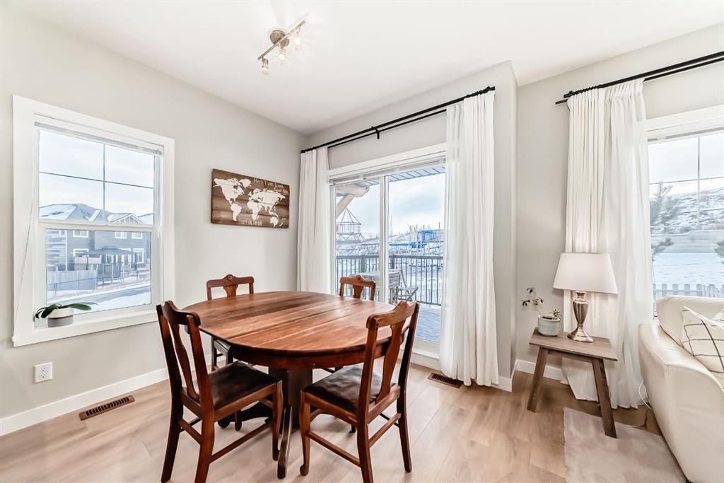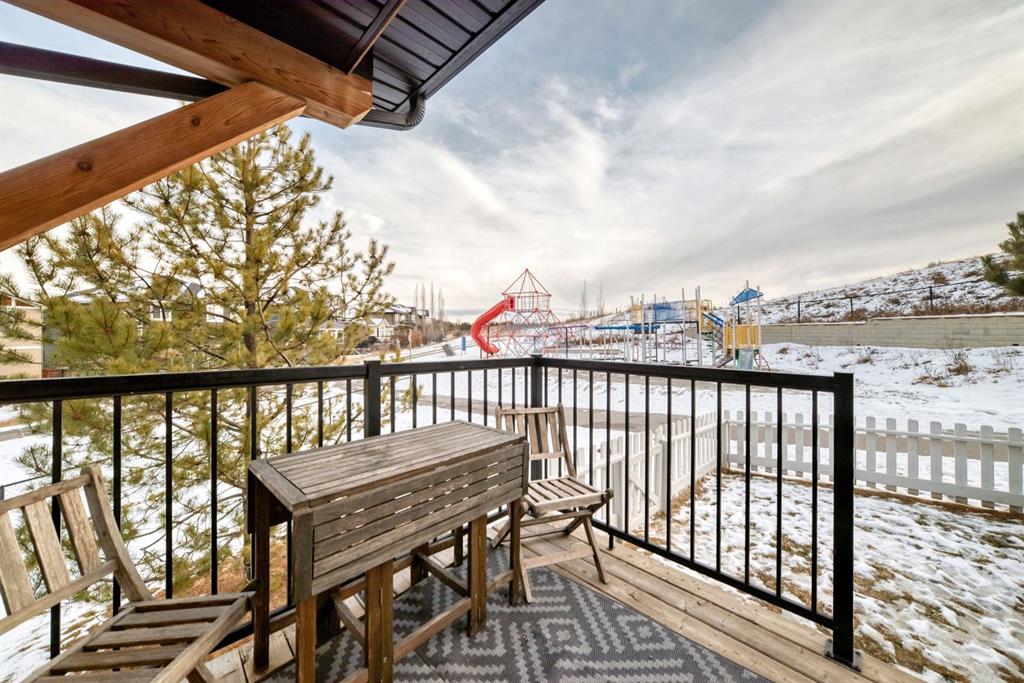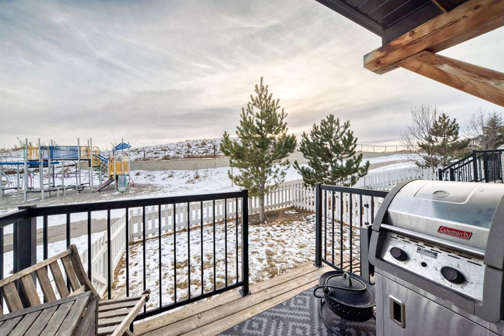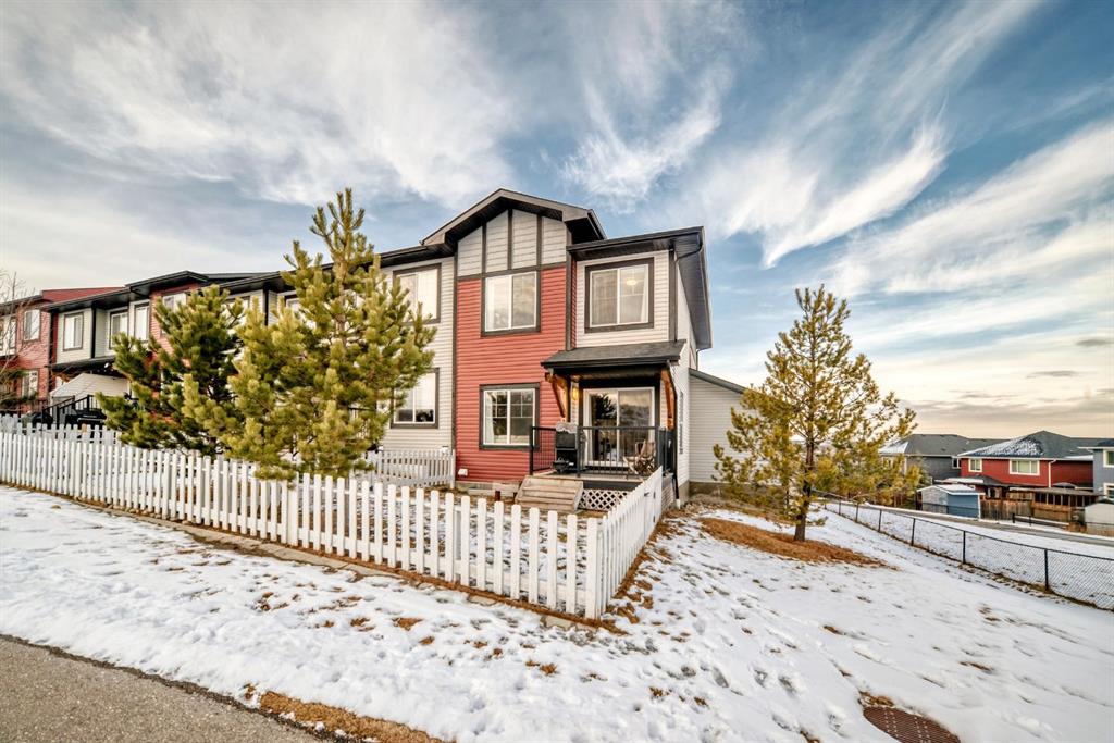 ** Open House: Saturday, Feb. 14th 12-2pm and Sunday, Feb. 15th 12-2pm ** Rare opportunity in Jumping Pound! location, location, location! Beautifully maintained and updated End Unit townhome with 1,156 sq. ft of well though out living space, and backing directly onto South facing green space and a playground, with no neighbours behind. This sought after home features a rare double attached garage, open plan kitchen/dining/living room with easy access to the south facing backyard from the dining area, and abundant natural light throughout. Upstairs offers a primary bedroom with walk in closet and ensuite, plus two additional good sized bedrooms, a full family bathroom, and convenient upper level laundry. Steps from walking and biking paths and just minutes to the Bow River; ideal for outdoor enthusiasts and commuters alike. Well cared for and move in ready! A fantastic combination of location, functionality, and curb appeal. Ideally located just minutes from Schools, Shopping, Restaurants and a wide range of everyday amenities. Book your showing today.