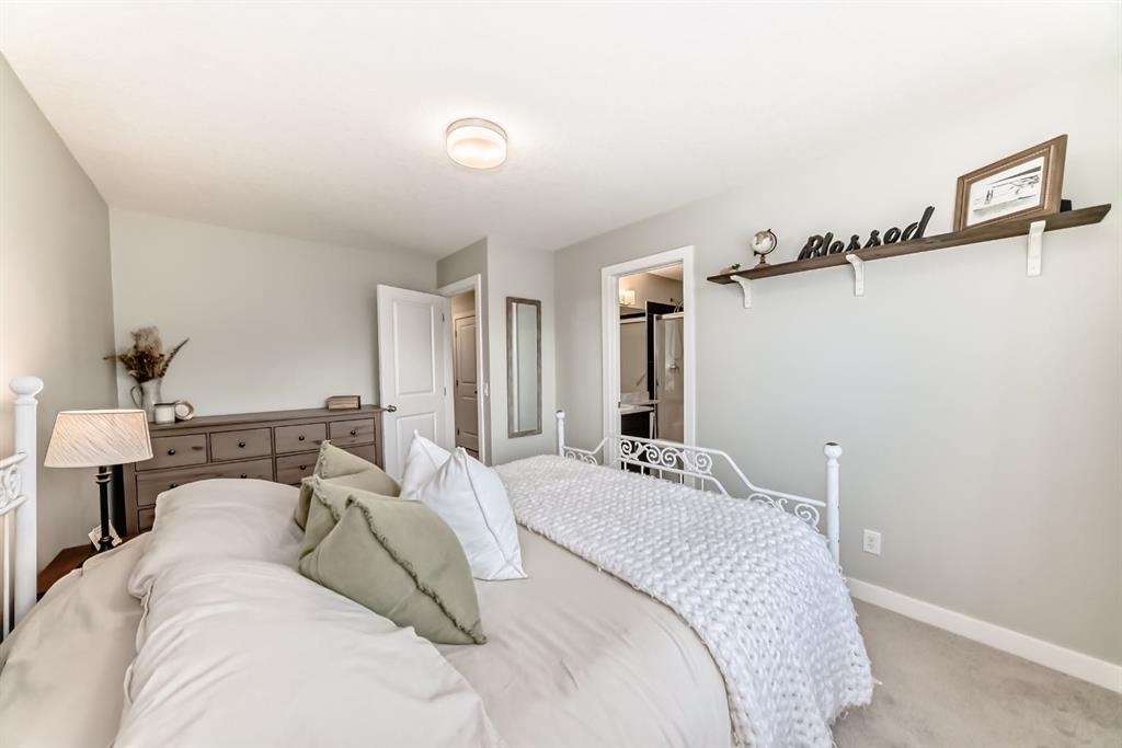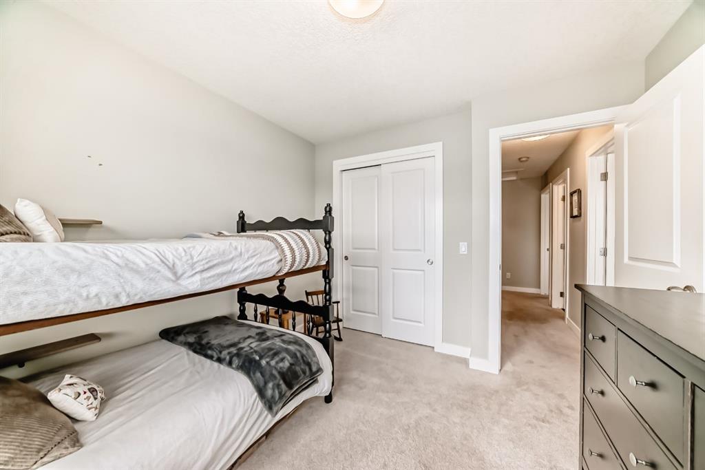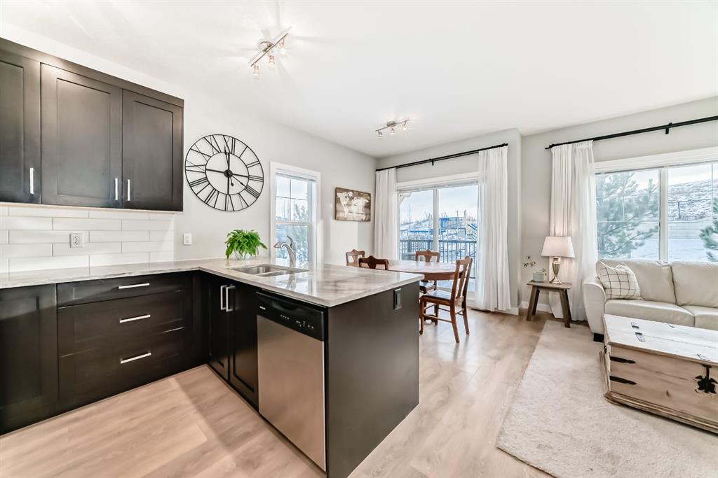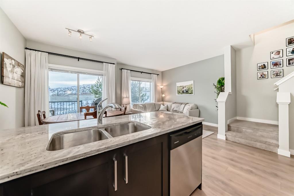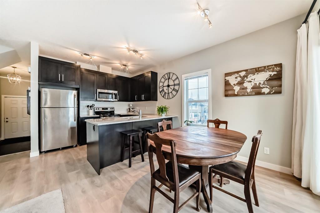 ** Open House: Saturday, Feb. 14th 12-2pm and Sunday, Feb. 15th 12-2pm ** Rare opportunity in Jumping Pound! location, location, location! Beautifully maintained and updated End Unit townhome with 1,156 sq. ft of well though out living space, and backing directly onto South facing green space and a playground, with no neighbours behind. This sought after home features a rare double attached garage, open plan kitchen/dining/living room with easy access to the south facing backyard from the dining area, and abundant natural light throughout. Upstairs offers a primary bedroom with walk in closet and ensuite, plus two additional good sized bedrooms, a full family bathroom, and convenient upper level laundry. Steps from walking and biking paths and just minutes to the Bow River; ideal for outdoor enthusiasts and commuters alike. Well cared for and move in ready! A fantastic combination of location, functionality, and curb appeal. Ideally located just minutes from Schools, Shopping, Restaurants and a wide range of everyday amenities. Book your showing today.