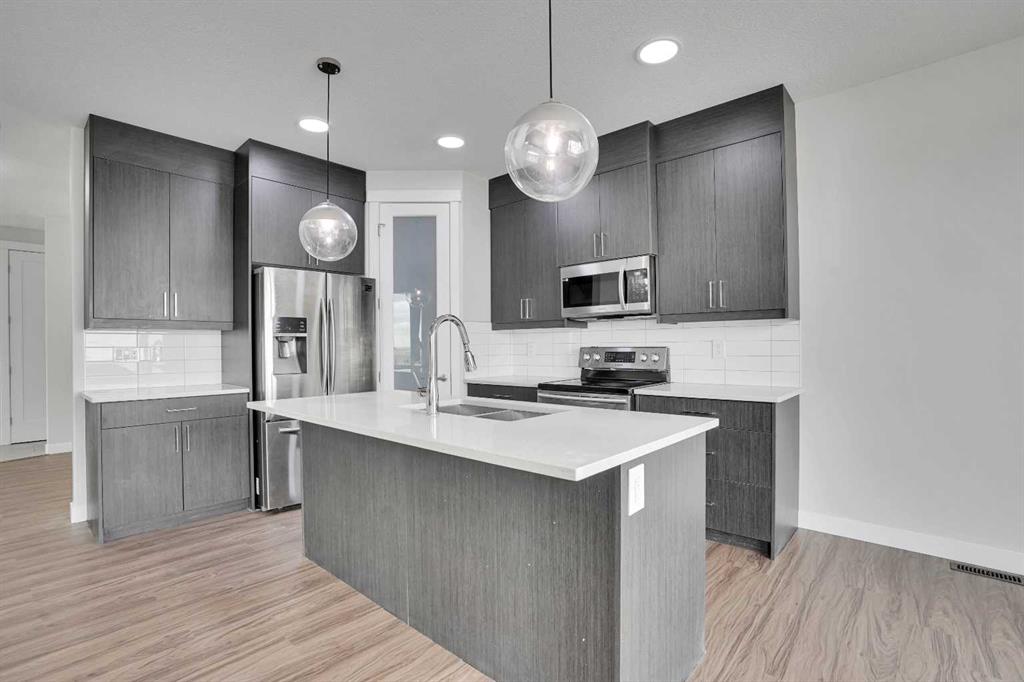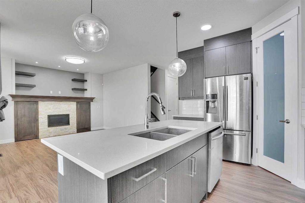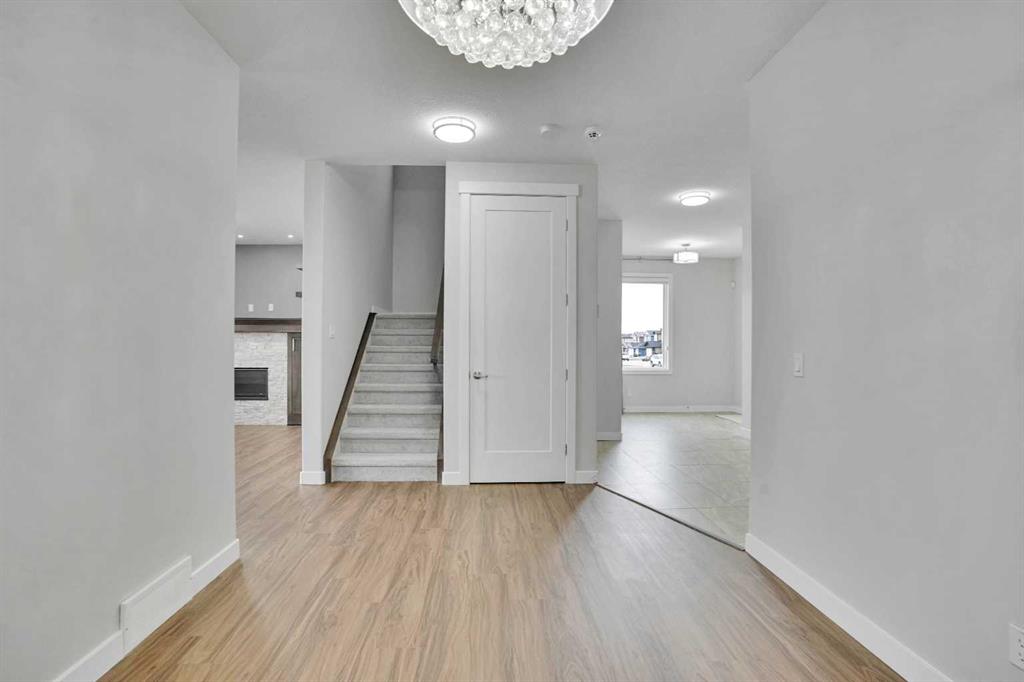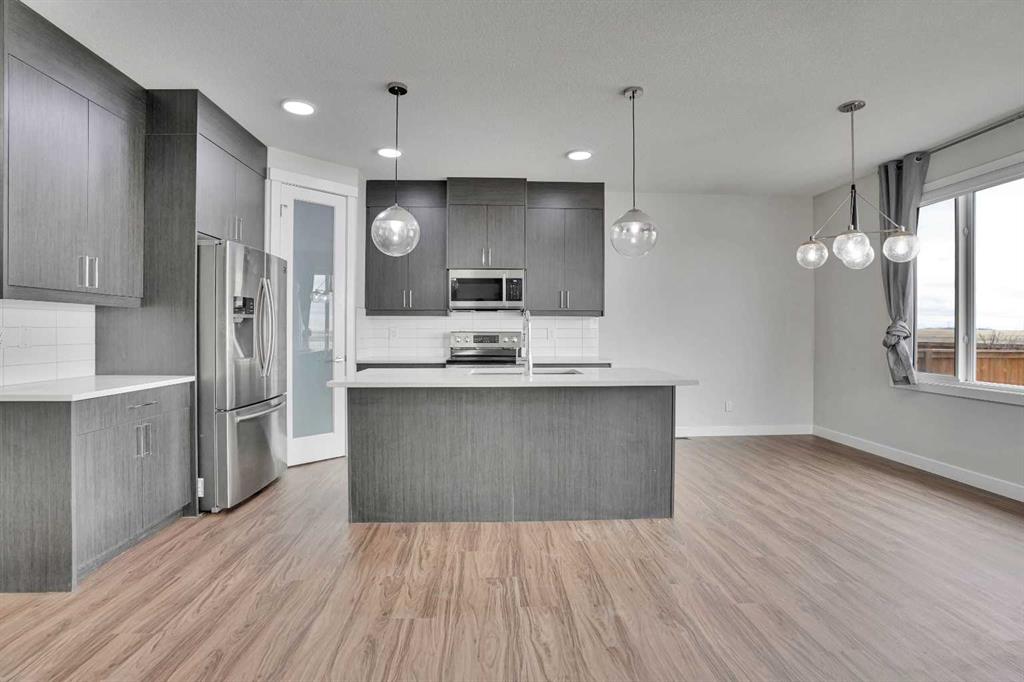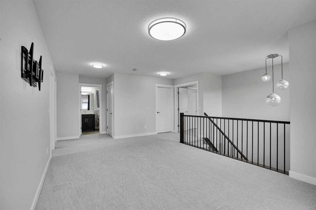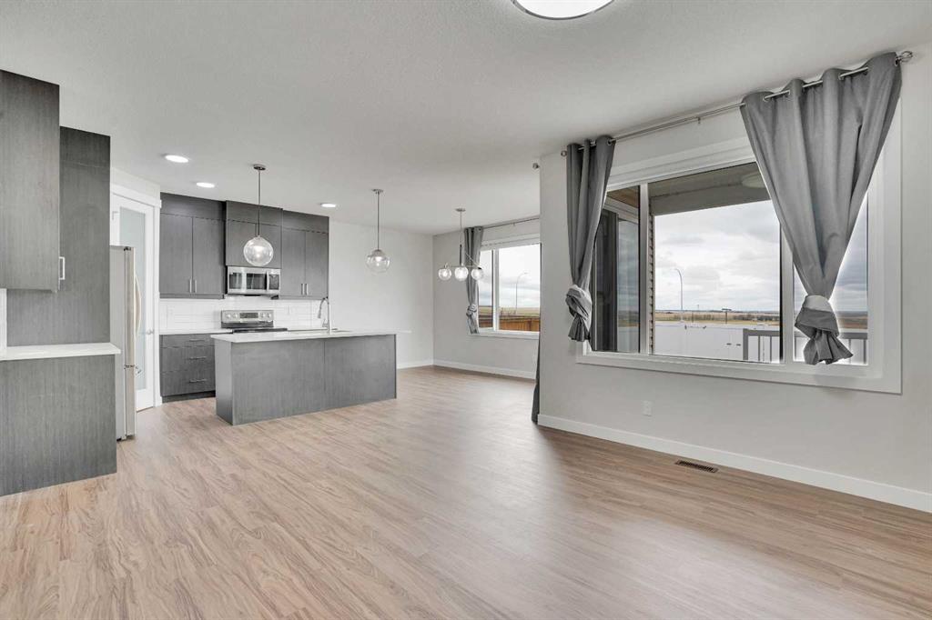 Step into a home that stands out from the moment you arrive. Positioned on a premium corner lot in Iron Ridge, Crossfield, this former show home blends style, space, and everyday functionality, just 20 minutes north of Calgary, yet offering a calm, small town lifestyle that feels worlds away from the city pace. Inside, you are welcomed by a bright, open concept layout designed for real living. The main floor features a versatile flex space, ideal for a home office or playroom, along with a stunning gas fireplace and a seamless flow between the kitchen, dining, and living areas, perfect for both quiet evenings and entertaining guests. Large windows throughout the home bring in an abundance of natural light, enhancing the open feel, while rear access leads to a spacious deck with gas hookup and a fully fenced yard, creating a private outdoor space to relax, host, or unwind. Upstairs, the home continues to impress with three generously sized bedrooms, a spacious bonus room, and the convenience of upper floor laundry. The primary suite serves as a true retreat, featuring a walk in closet and a beautifully appointed five piece ensuite with a soaker tub, separate shower, and dual sinks, offering both comfort and functionality. As a former show home, this property is loaded with upgrades that set it apart from typical offerings. Central air conditioning is already installed for year round comfort, while the oversized double garage with high ceilings adds both function and value. Hardwood and tile flooring enhance the main level, and with fresh paint and newer carpets throughout, the home is truly move in ready. The fully developed lower level adds additional living space and includes a well finished bathroom, offering flexibility for a variety of uses. Situated on a corner lot with no neighbors directly behind, this home offers added privacy along with a fully fenced yard and rear alley access, giving you both space and versatility. Located within walking distance to schools, parks, and green spaces, this home offers the perfect balance of convenience and tranquility. Enjoy open skies, peaceful surroundings, and a slower pace of life, all while being just 15 minutes to Airdrie with quick access to QE2. Homes like this, corner lot, former show home, fully upgraded and move in ready, rarely stay available for long. If you have been waiting for the right one, this is it.