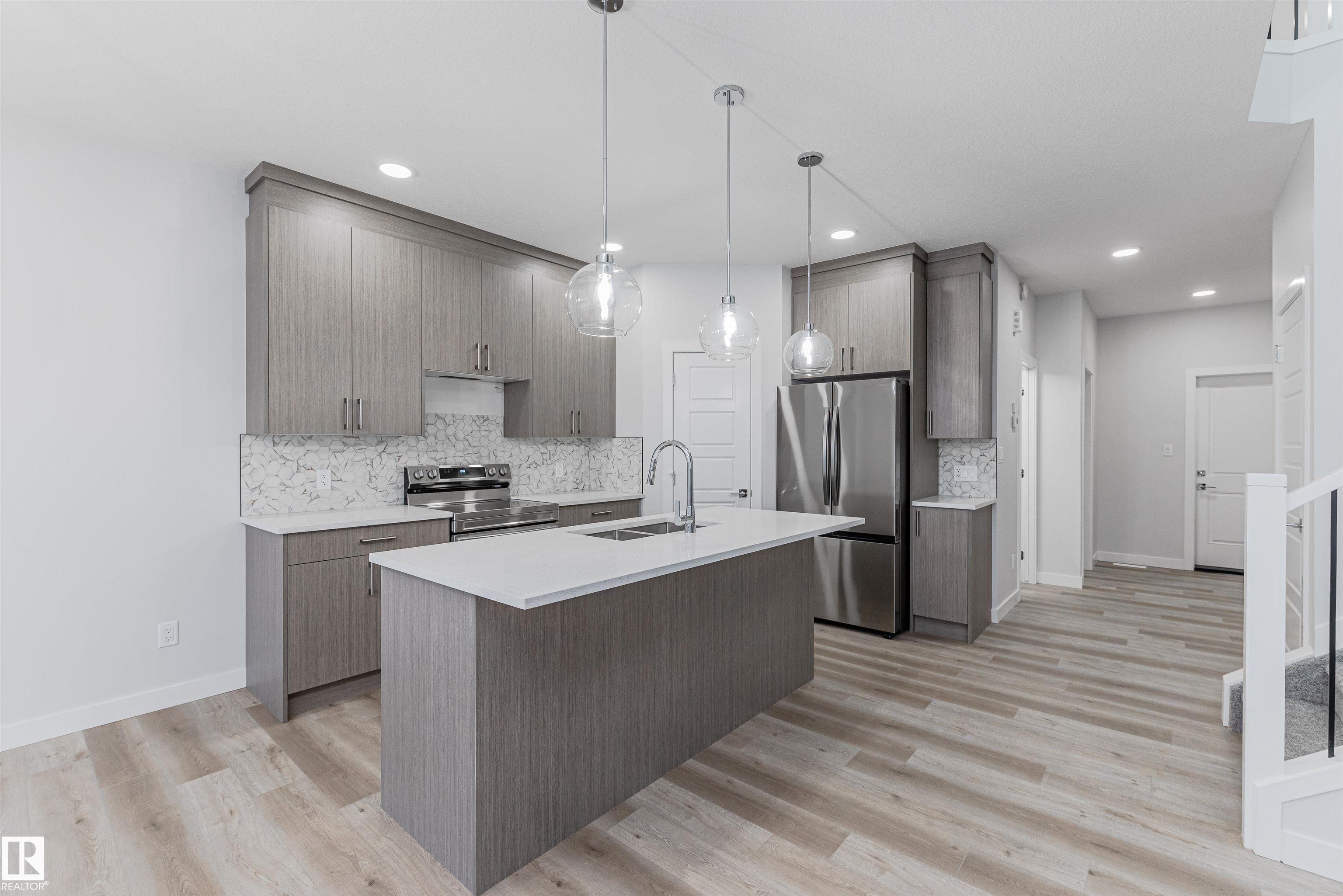 Welcome to this upgraded single-family home in the vibrant community of Hawksridge! Ideally located with quick access to Anthony Henday Highway, offering an easy commute to both St. Albert and Edmonton.The main floor features a spacious open-to-below living room, highlighted by a custom fireplace wall. You’ll also find a modern upgraded kitchen with ceiling-height cabinetry, a walk-in pantry, and a bright dining nook. A full bedroom and full bathroom on the main floor add extra convenience and flexibility. Upstairs offers three generously sized bedrooms, two full bathrooms, and a versatile bonus room perfect for family living or entertaining.Additional upgrades include MDF shelving throughout (no wire racks), stylish upgraded lighting fixtures, and a 9’ basement ceiling. The home also includes a separate side entrance, providing excellent potential for a future legal basement suite.Photos are from a similar layout and may not reflect the exact home. Assignment sale available.