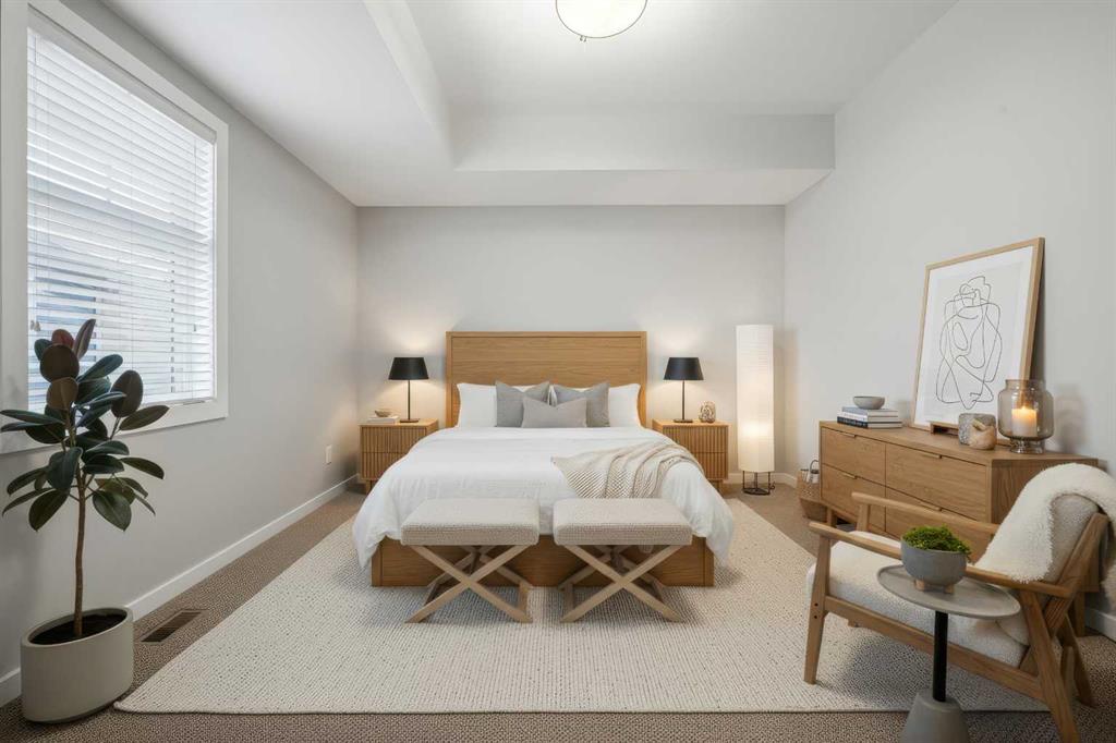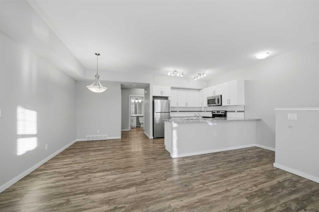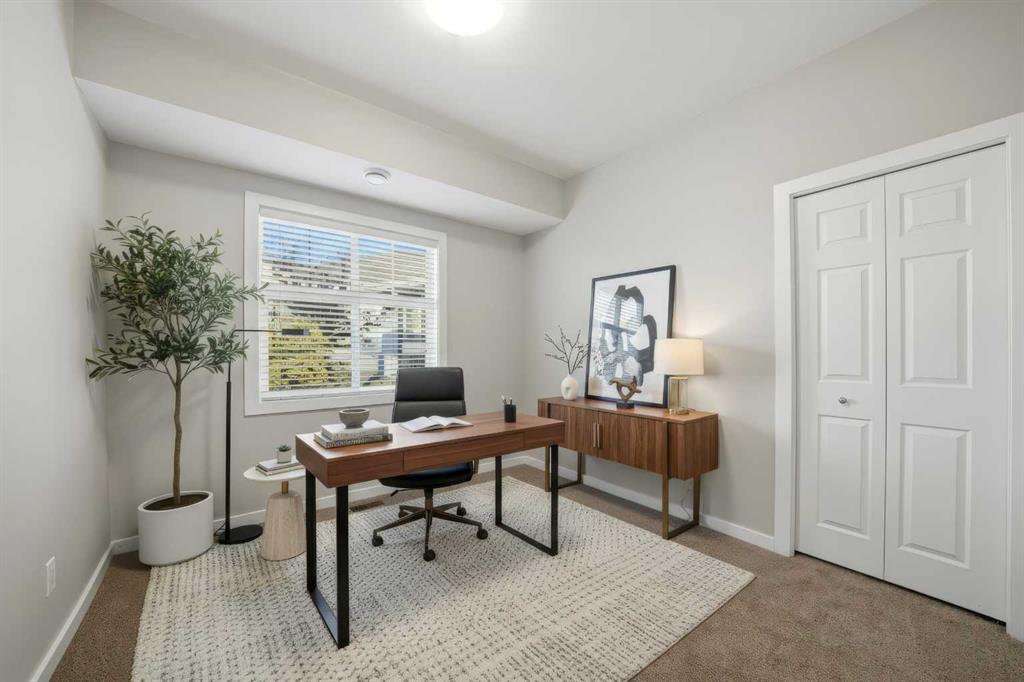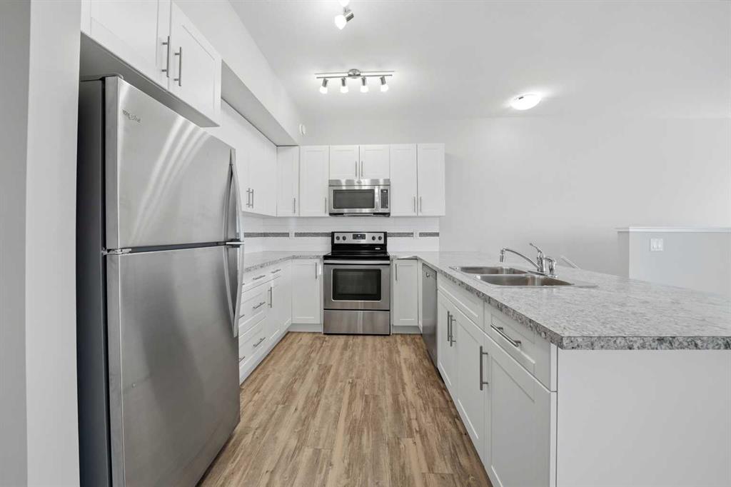 UPPER LEVEL, QUIET condo nestled in the CENTER of the VALLEY CROSSING development. Pull into one of your 2 ASSIGNED POWERED PARKING STALLS close to your front door. Walk inside and when you come in the entranceway, you're greeted with BRAND-NEW CARPET throughout that smells fresh and clean. Once on the main living level - you'll fall in love with the OPEN CONCEPT KITCHEN & LIVING AREA with a large peninsula perfect for entertaining guests or just appreciating the tons of counter space you have for meal preparation or baking. The living area opens out to the COVERED NORTH/WEST FACING DECK. Back inside is 2 good sized BEDROOMS including the primary and ENSUITE. There's another full bathroom as well as IN-SUITE LAUNDRY. Come check it out!! It's easy to find because it's right beside the Abbey Center, walking trails and shopping and has quick access to both Hwy 2 and Hwy 2A. (Some photos have been virtually staged)