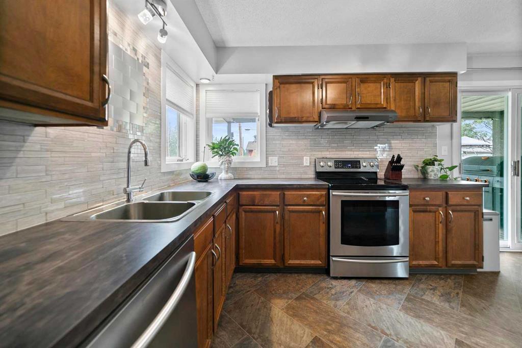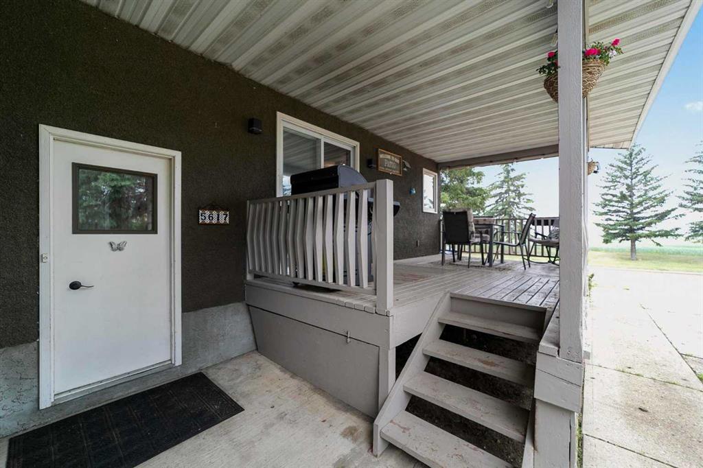 Nicely updated and maintained family home sitting on a corner lot siding farmlands with amazing views! This 5 bedroom, 2 bath bungalow is spacious with a massive updated kitchen/dining area. Right off of the dining area is a sliding patio door leading to a large covered deck. The sunken living room is bright and airy, well laid out with a bay window. The main bath was renovated with a walk-in shower as well as a nice soaker tub. To top it all of the laundry is on the main floor for convenience. The basement is mostly finished (some flooring to be laid) with a sunken family room 2 bedrooms and a 3pc bath. Shingles were replaced in 2022, newer HE furnace and hot water tank.