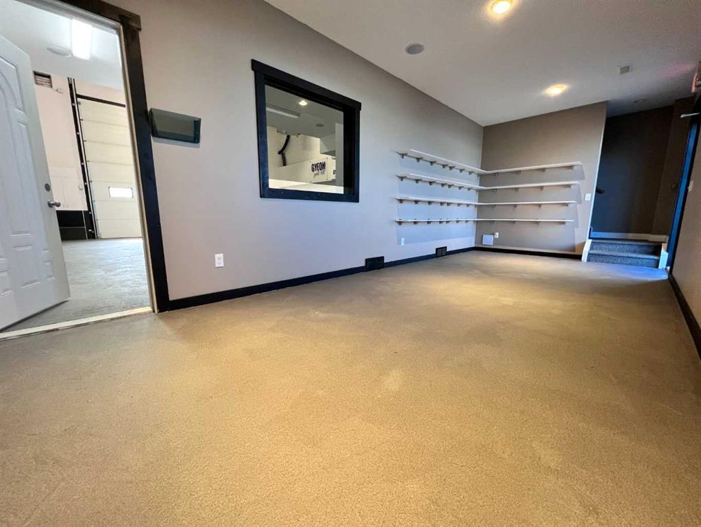 Well-maintained small bay located immediately off Highway #1 in Strathmore, offering excellent exposure and accessibility. The unit features a main-floor entrance with retail/showroom capability, an 18-foot clear warehouse ceiling, and an oversized drive-in overhead door suitable for a range of light industrial or commercial uses. The upper mezzanine includes a second washroom, creating a practical and comfortable office environment. Zoned C-HWY, allowing for a variety of highway-oriented commercial uses.