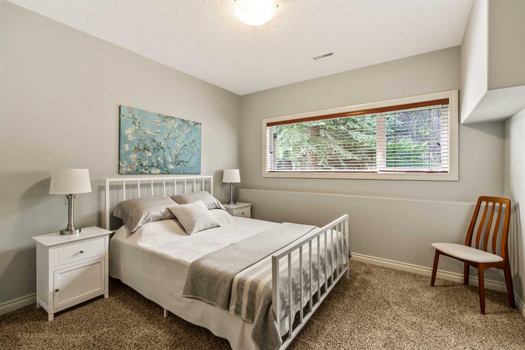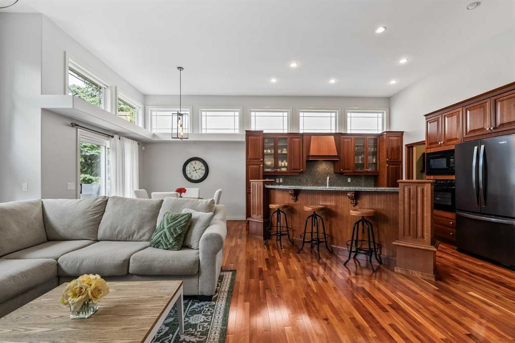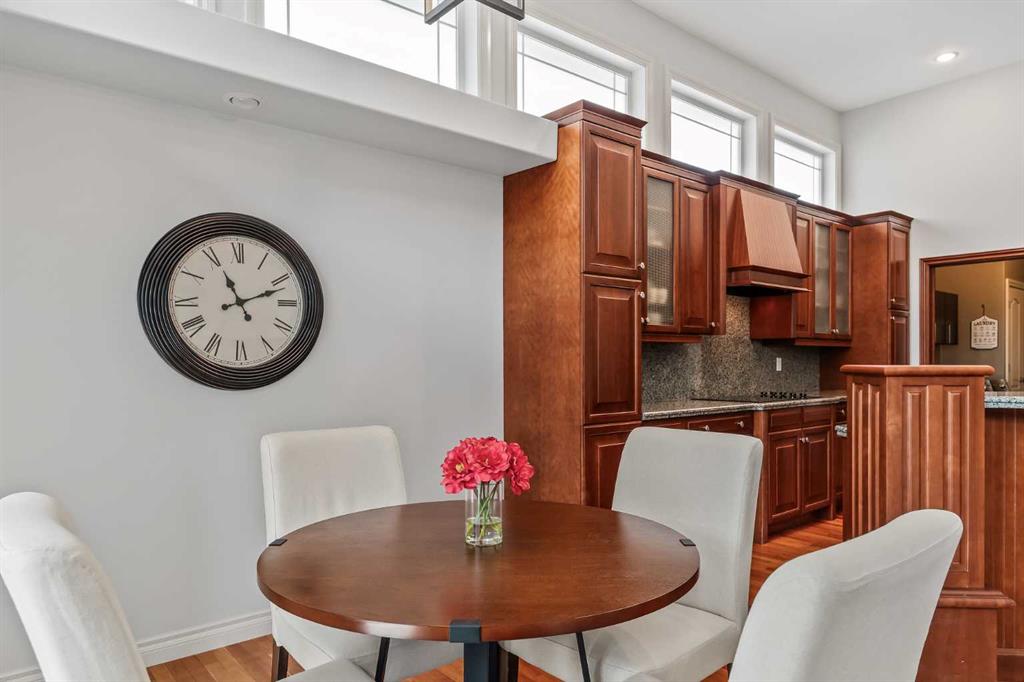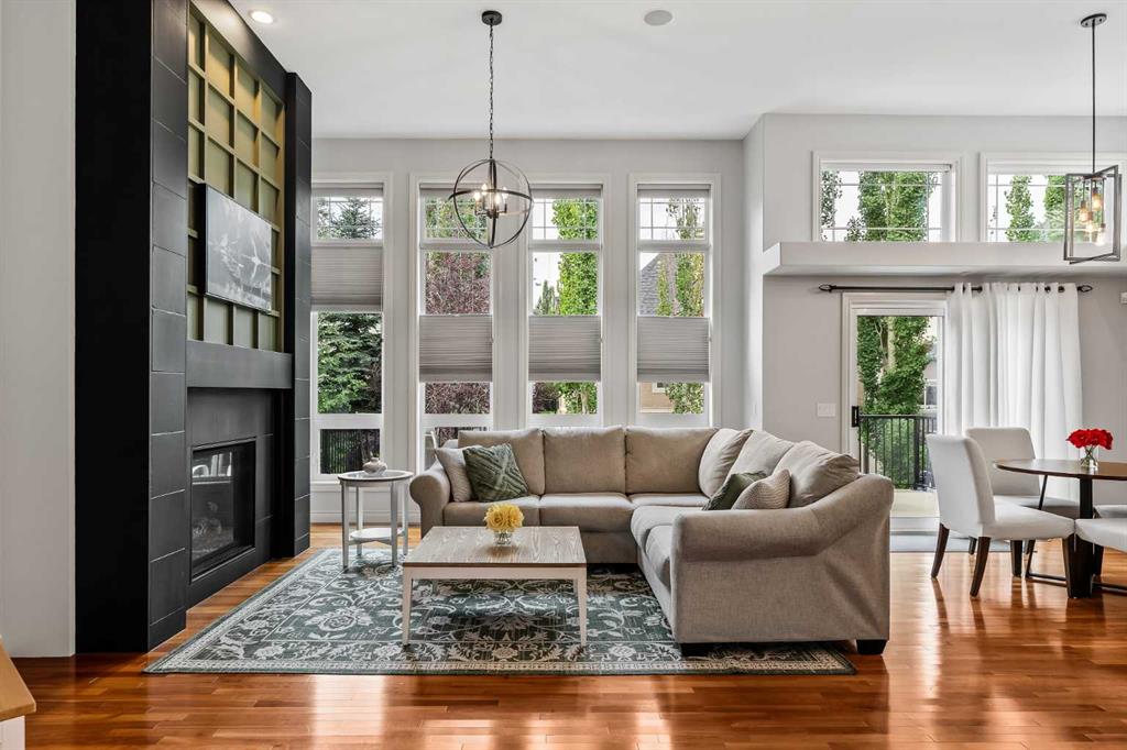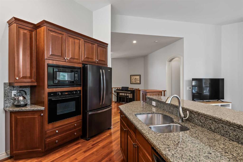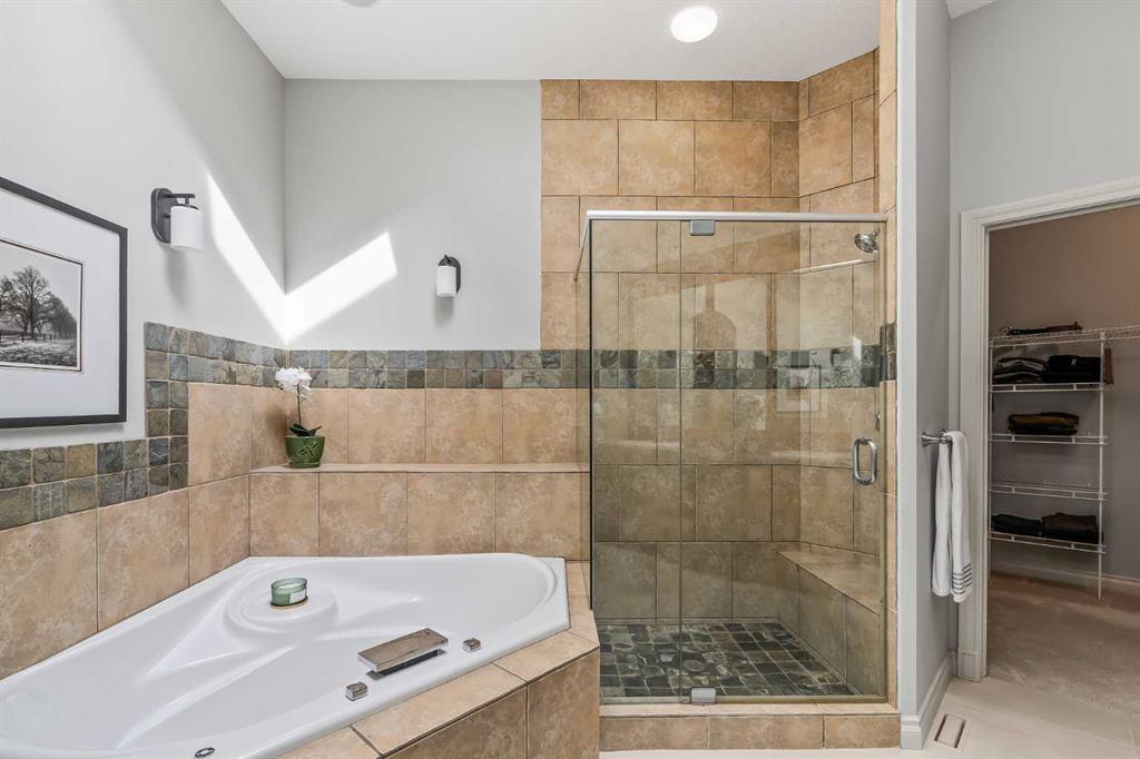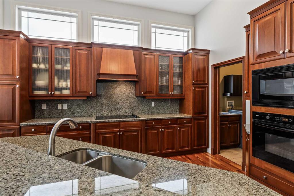 Luxurious, fully finished & beautifully updated, this walkout bungalow showcases exceptional craftsmanship & refined design throughout. Stunning curb appeal sets the tone, highlighted by an oversized double garage with in-floor heating and built-in speakers. Set within the picturesque lake community of Heritage Pointe & backing directly onto green space, the setting delivers privacy, views & a calm connection to nature rarely found so close to the city, with added peace of mind from the community’s independent water system and a full alarm system. Inside, soaring 12’ ceilings & an abundance of natural light elevate the main level, complemented by exotic cherry hardwood flooring & updated lighting for a warm, cohesive flow. A dedicated den with floor-to-ceiling built-ins offers an ideal home office, while a formal dining room framed by tray ceilings creates an elegant setting for hosting with built-in speakers. The open-concept layout unfolds with expansive windows, drawing the outdoors in. At the heart of the home, the chef’s kitchen impresses with granite countertops, custom cabinetry, stainless steel appliances & a large breakfast bar island. Adjacent dining adds everyday flexibility, while patio sliders open to the upper deck for effortless outdoor entertaining. Anchoring the main level, a spectacular living room centers around a striking fireplace with built-in speakers, creating an inviting space to unwind. The private primary suite is a true retreat, featuring a tray ceiling, oversized window, walk-in closet & a beautifully updated ensuite complete with an oversized skylight, deep jetted tub, oversized glass shower, heated floors, built-in speakers & dual vanities. A discreet powder room adds convenience. The walkout lower level is an entertainer’s dream, offering a spacious family room with built-in media area, gas fireplace, integrated storage & elevated seating, with built-in speakers throughout the family room and flex space. A pub-style wet bar with raised seating & a built-in wine cellar is ideal for entertaining, while an additional flex space suits fitness or hobbies. Two bedrooms & a 4-piece bathroom complete this level. Outdoor living continues with a covered lower patio overlooking green space, complemented by an easy-maintenance west-facing backyard with underground sprinklers and a garden shed. Located in sought-after Heritage Pointe, residents enjoy access to a private lake with sandy beach, parks, playgrounds & scenic pathways, all close to schools, shopping & dining, making this an exceptional opportunity to experience refined living in a truly special setting.