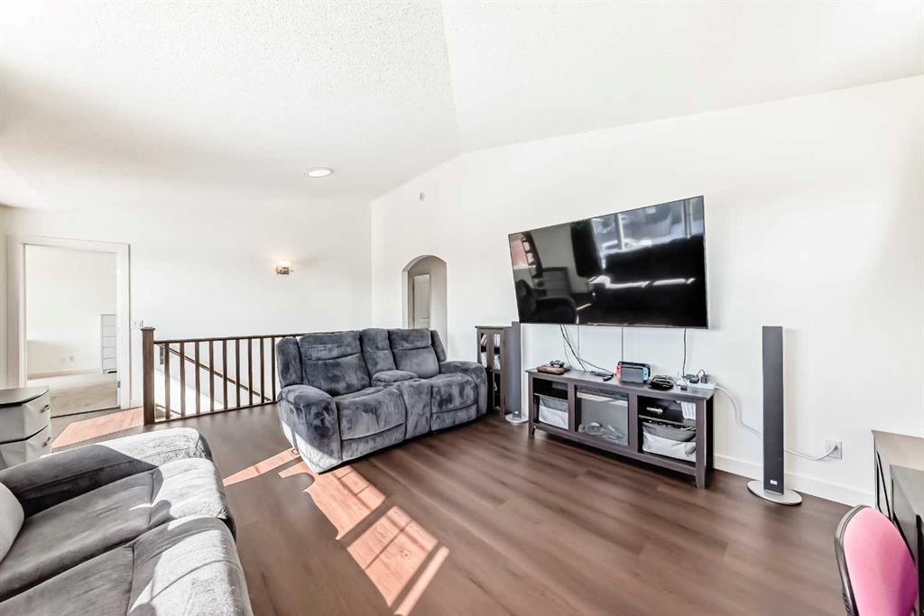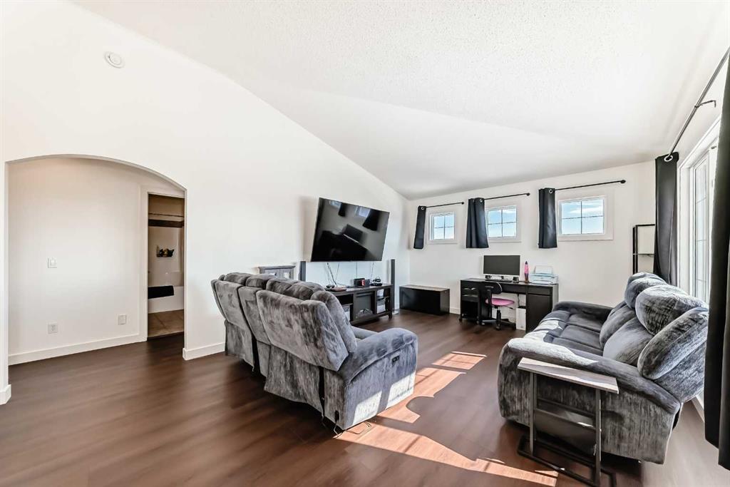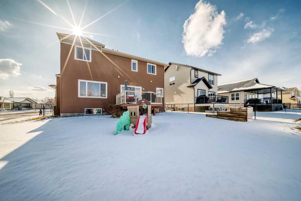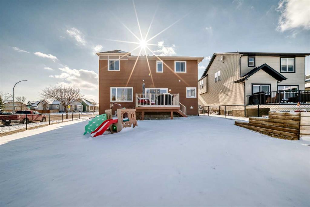 Welcome to this beautifully updated, freshly painted and AIR CONDITIONED former show home in Highwood Village, perfectly located on a quiet street and backing directly onto a park. Set on a large corner lot with a huge yard, this home offers direct access to a playground, bike pump track, and spray park — an ideal setup for families. The school bus conveniently stops right outside the front door. Inside, the home is bright and inviting with an abundance of windows throughout. The main floor features a sunny front flex room, a functional mudroom off the double attached garage, and an open-concept living space anchored by a well-appointed kitchen with newer appliances, stone countertops, a large pantry, and extra windows. Upstairs includes three bedrooms, convenient upper laundry, and a spacious bonus room with vaulted ceilings. The primary suite offers a generous layout, a double vanity, soaker tub, separate shower, and a large organized closet. Recent updates include fresh paint and new flooring, with carpet only on the stairs and in the bedrooms. Additional features include air conditioning, irrigation system blown out and ready to go, water softener, humidifier, and a wrap-around porch. A rare opportunity to own a move-in ready home in a family-focused community with parks, pathways, and golf nearby, along with easy access to Hwy 2 to have you on your way to your next adventure.