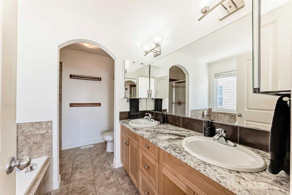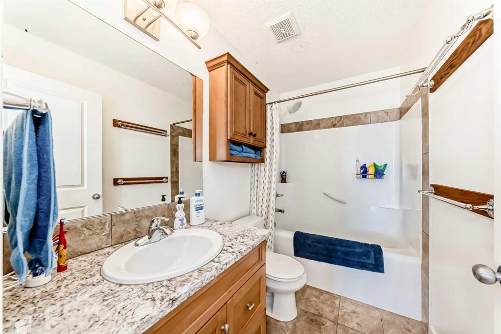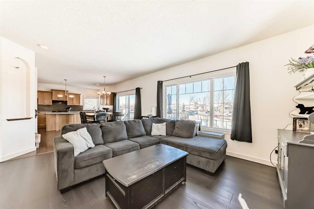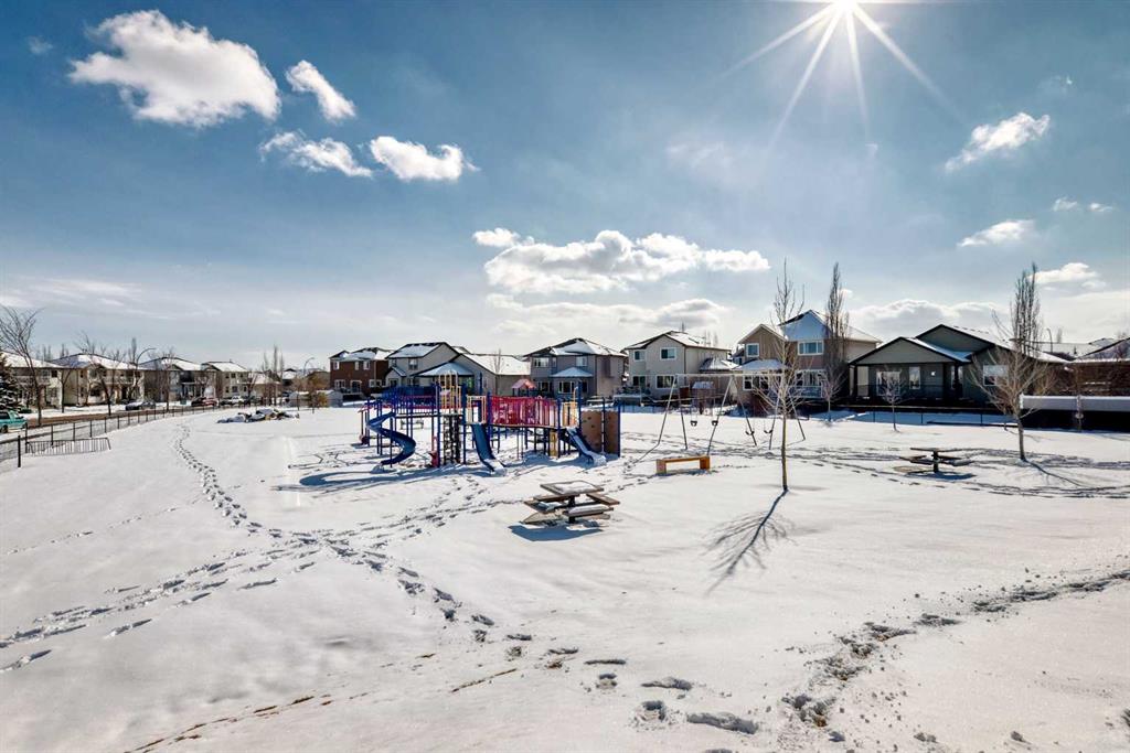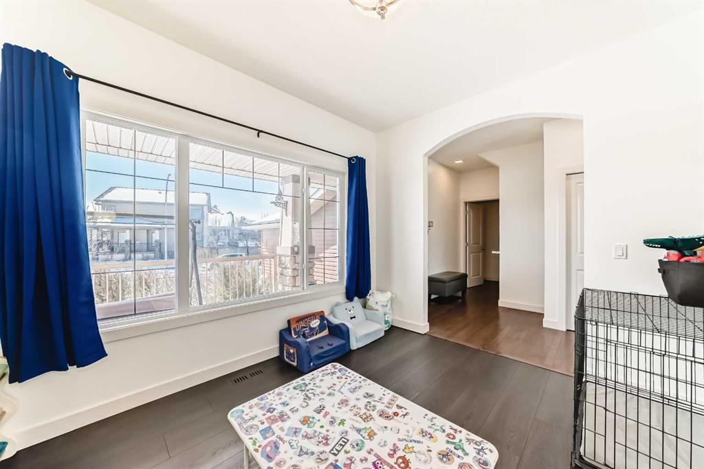 Welcome to this beautifully updated, freshly painted and AIR CONDITIONED former show home in Highwood Village, perfectly located on a quiet street and backing directly onto a park. Set on a large corner lot with a huge yard, this home offers direct access to a playground, bike pump track, and spray park — an ideal setup for families. The school bus conveniently stops right outside the front door. Inside, the home is bright and inviting with an abundance of windows throughout. The main floor features a sunny front flex room, a functional mudroom off the double attached garage, and an open-concept living space anchored by a well-appointed kitchen with newer appliances, stone countertops, a large pantry, and extra windows. Upstairs includes three bedrooms, convenient upper laundry, and a spacious bonus room with vaulted ceilings. The primary suite offers a generous layout, a double vanity, soaker tub, separate shower, and a large organized closet. Recent updates include fresh paint and new flooring, with carpet only on the stairs and in the bedrooms. Additional features include air conditioning, irrigation system blown out and ready to go, water softener, humidifier, and a wrap-around porch. A rare opportunity to own a move-in ready home in a family-focused community with parks, pathways, and golf nearby, along with easy access to Hwy 2 to have you on your way to your next adventure.