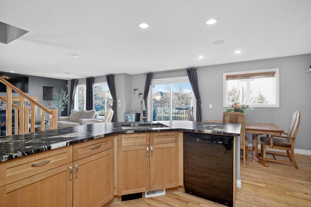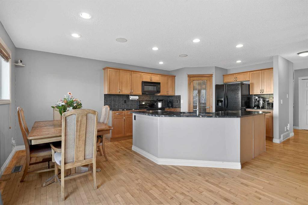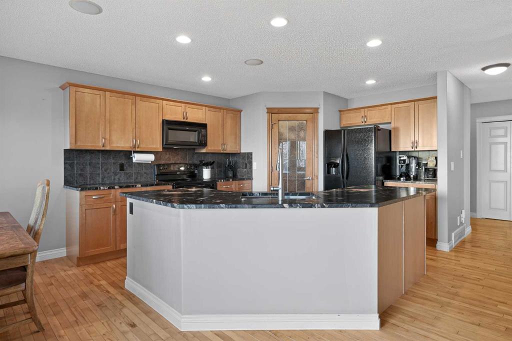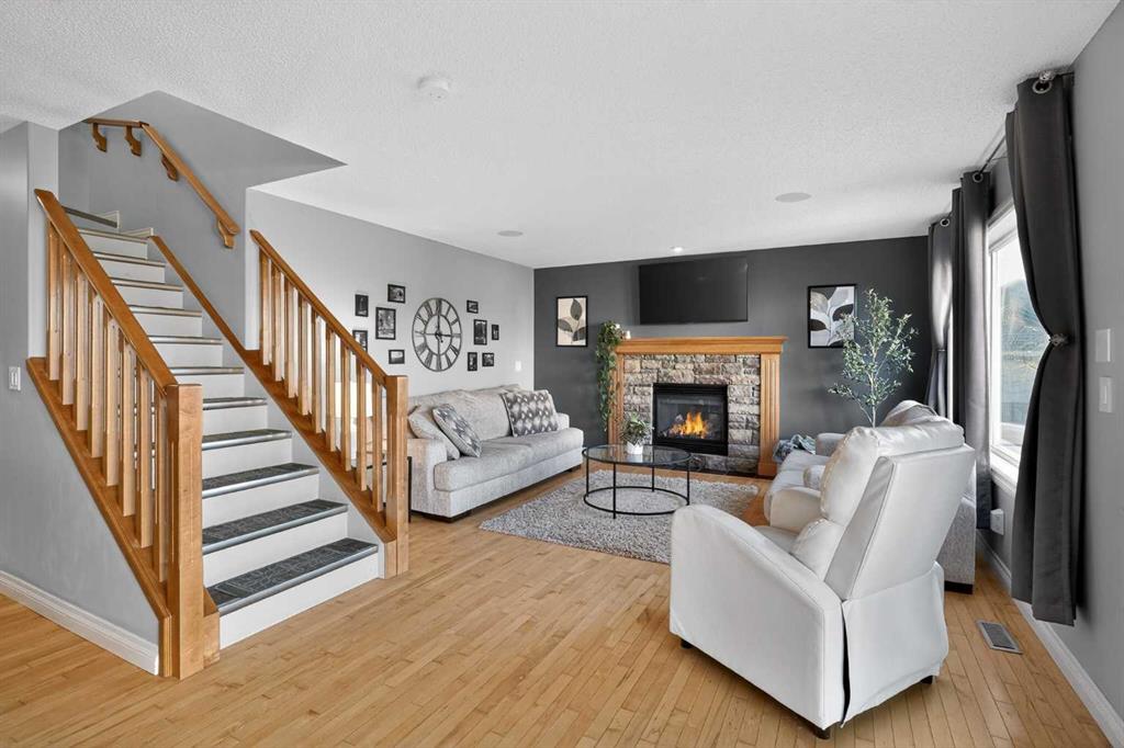Nestled in the desirable northwest community of Highwood Village, just steps from scenic Highwood Lake, this beautifully upgraded family home perfectly blends modern comfort with everyday functionality. From the moment you step inside, the thoughtful layout and quality upgrades are immediately apparent, including leathered granite countertops throughout, low voltage wiring for a centralized video and sound system, underground irrigation, newly installed solar panels (2025) and hot water tank (2024). A generous 12’ x 14’ front office provides the ideal space for a home based business or private study. The heart of the home is the open concept main floor, highlighted by a stunning kitchen featuring an oversized centre island, walk-through pantry, and seamless flow into the dining and living areas. The inviting living room showcases rich hardwood flooring, a cozy gas fireplace, and expansive west facing windows that fill the space with natural light. Step outside through the breakfast nook to a spacious west-facing backyard complete with a two-tier deck—perfect for entertaining, summer BBQs, or enjoying peaceful sunset evenings. With access from the backyard to walking paths and green space, outdoor enjoyment is right at your doorstep. Upstairs, new vinyl plank flooring leads to a large bonus room with vaulted ceilings, fully wired for a theatre system, creating an inviting retreat for movie nights or family gatherings. The primary suite offers a true escape with his and hers closets and a luxurious five piece ensuite, while two additional bedrooms are thoughtfully located near the laundry room for added convenience. An oversized double attached garage and central air conditioning complete this impressive package. Move in ready and ideally located, this home is designed for modern living in a fantastic community.