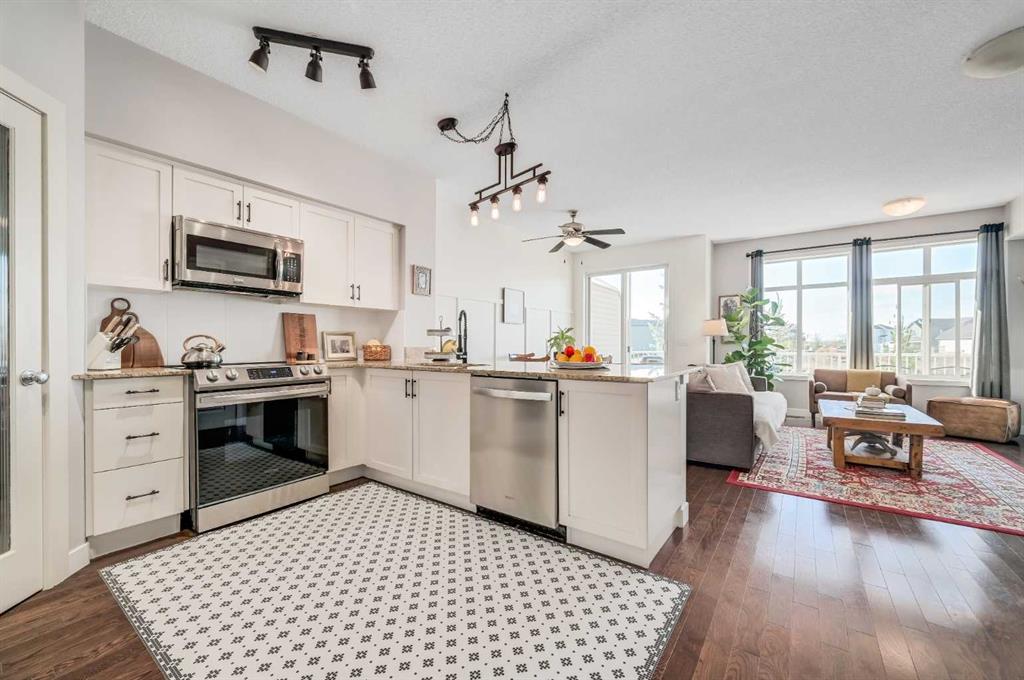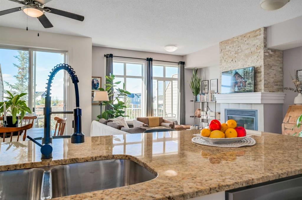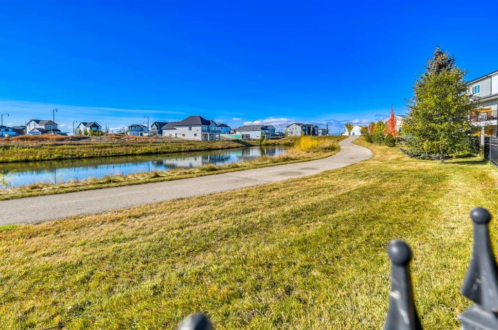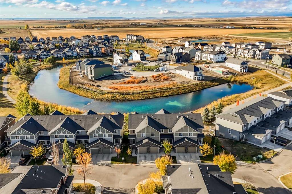 Live on the water in sought after Monteith! Incredible value in this fully developed walkout property overlooking the water with views of the Rocky Mountains. Over 2200 sq ft of developed living space! Immaculately maintained and updated throughout with tasteful interior renovations & significant mechanical system updates, this property is 100% turnkey. Modern open plan, with large entryway leading to a wide-open kitchen & dining area. Timeless shaker style cabinetry, large corner pantry, & granite countertops including central island. Built-in granite clad message center opposite the kitchen with upper and lower cabinetry makes an excellent bar or coffee station. Stained oak hardwood flooring throughout the main level. Sunny, South facing balcony runs the entire width of the property and is bordered by privacy walls on both sides & makes full advantage of the water & mountain views. 3 very generous bedrooms upstairs including oversized primary bedroom with full ensuite bath and walk-in closet. In this sprawling townhome all rooms are larger than standard and the upper level also offers a central bonus/flex room. Fully developed walk-out basement with a 4th full bathroom with separate deep soaker tub & custom tilework. Media/theatre room offers many uses and walks out directly to a covered patio area with access to the gorgeous, lush community walkways which wind through Monteith and along the water. Many upgrades & extras including central A/C, water softener, new washer & dryer, new stove, new dishwasher, & smart controls for the high efficiency furnace & A/C. Single attached garage, fully insulated and drywalled with 10' high ceiling. Located just steps from High River Co-Op, Rec Center, community walkways, parks, courts, & all amenities. A premium location within High River nestled in a nature-focused development with easy access to all the community has to offer. The total package offering superb value in Monteith of High River!