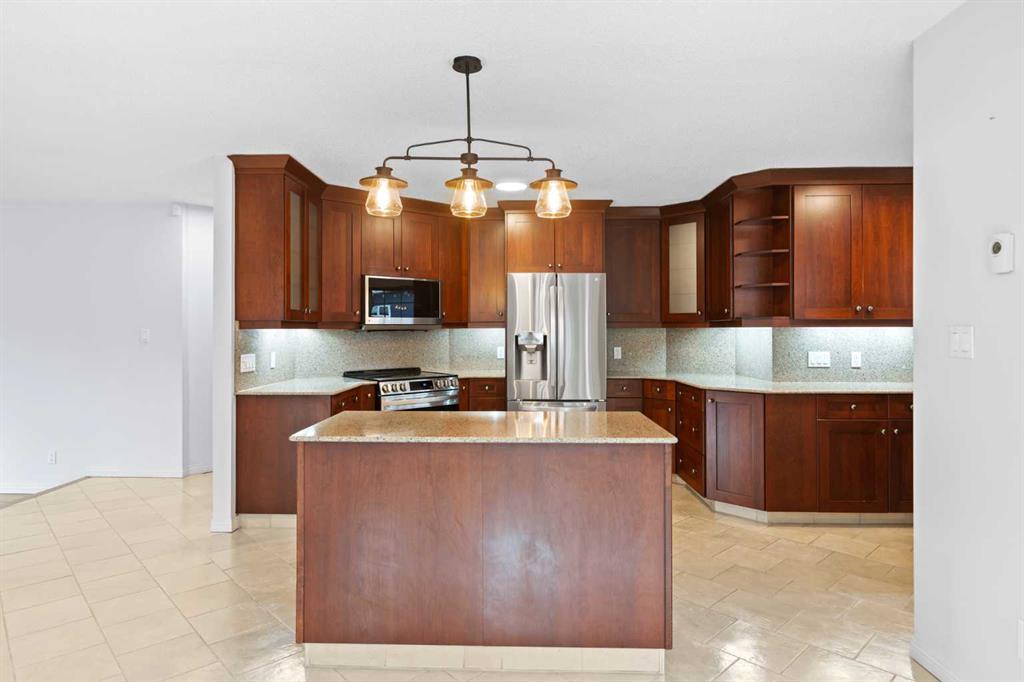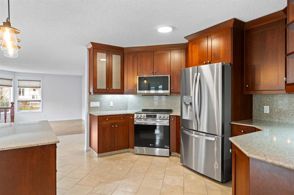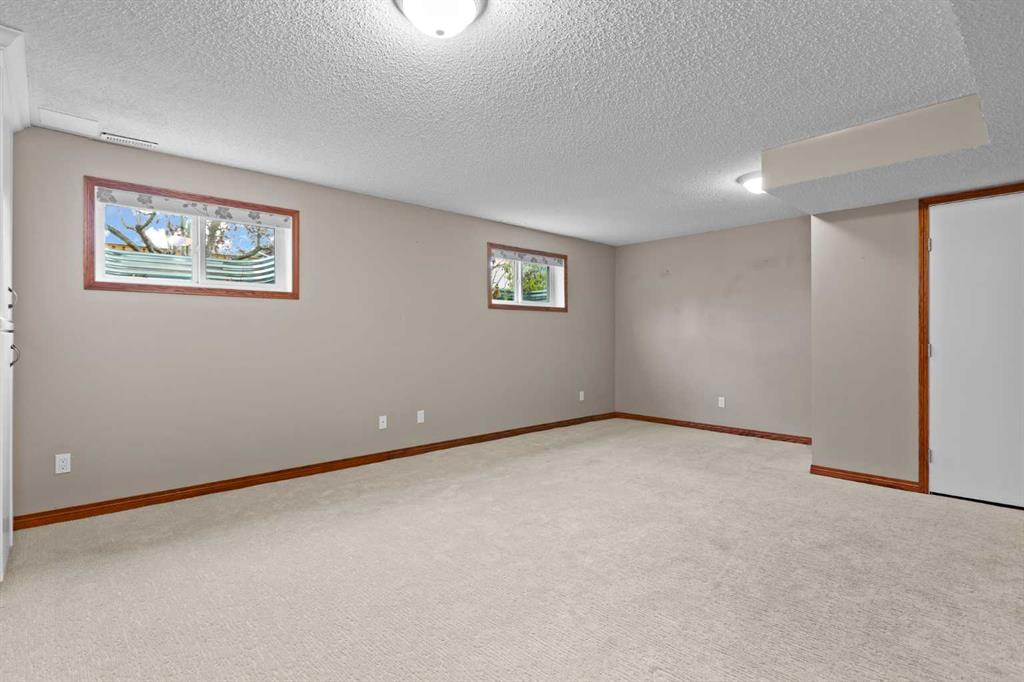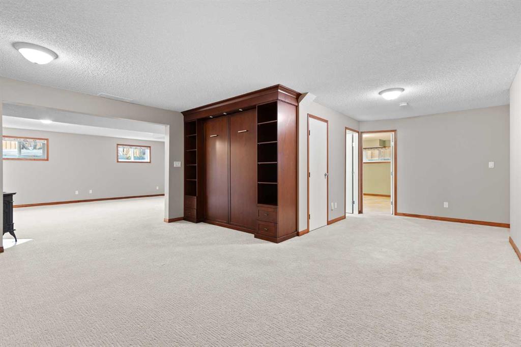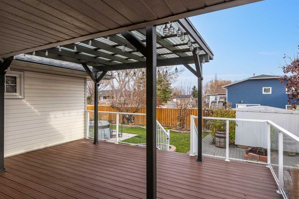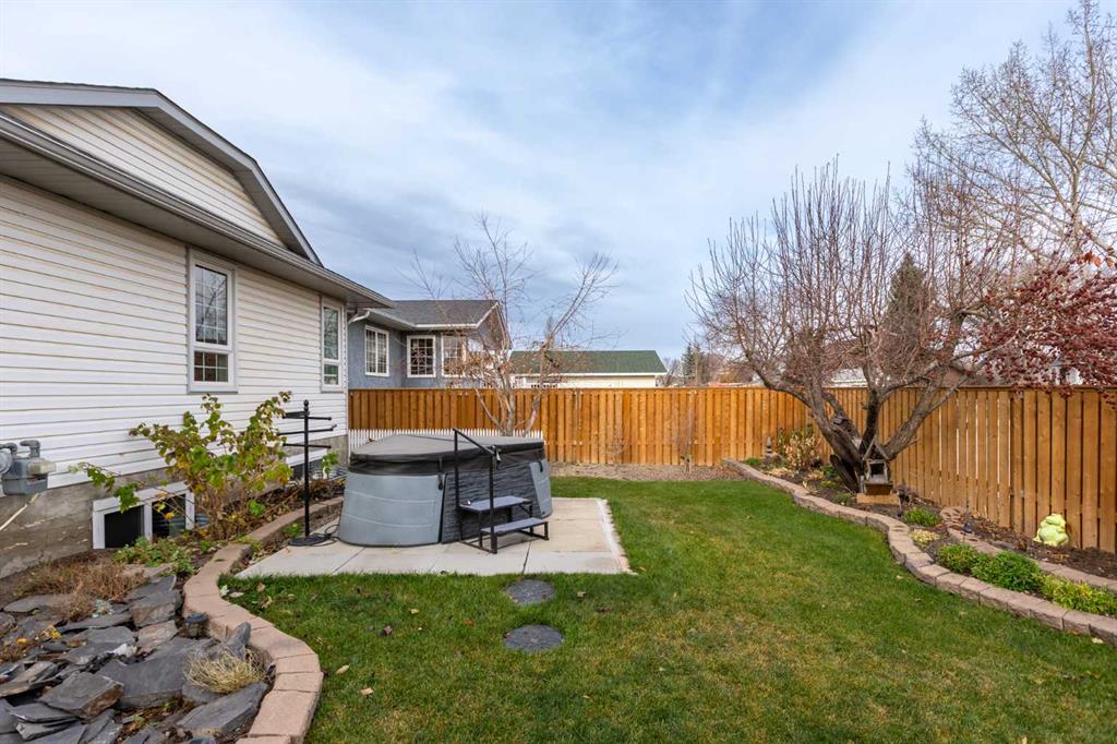 This beautiful and spacious bungalow is within walking distance to Joe Clark School, Highwood High School, Sunshine Lake, Emerson Lake, and the Happy Trails. It has two bedrooms on the main floor and two bedrooms in the fully finished basement, both with walk-in closets. The kitchen, dining room and living room are all open and bright, and the dining room opens onto a covered east facing deck. The kitchen is high quality and has a lot of cabinets, counter space, under cabinet lighting, granite counters and a large island. Flooring in the kitchen, halls, laundry room and bathroom are all heated tile, and the step-down living room has hardwood. On the main floor, the third bedroom has been converted to a laundry room but could easily be converted back into a bedroom. There have been several upgrades to this home over the years including a deluxe walk-in tile shower in the 3-piece cheater ensuite, a beautiful built-in Murphy bed in the downstairs family room that is ideal for company, newer vinyl windows, new roof in 2023, trek decking on the front porch and back porch, beautiful landscaping including a patio with fire pit, newer hot water tank, new furnace in 2024, and new stainless steel appliances in the kitchen. Extras included in this home are a hot tub, shed, and water softener. The fully fenced backyard is private with mature landscaping, a big east facing deck with a gas line for your BBQ, and back alley access. Please click the multimedia tab for an interactive virtual 3D tour and floor plans.