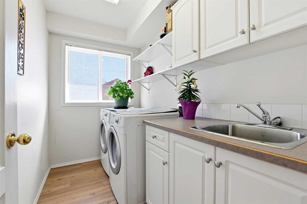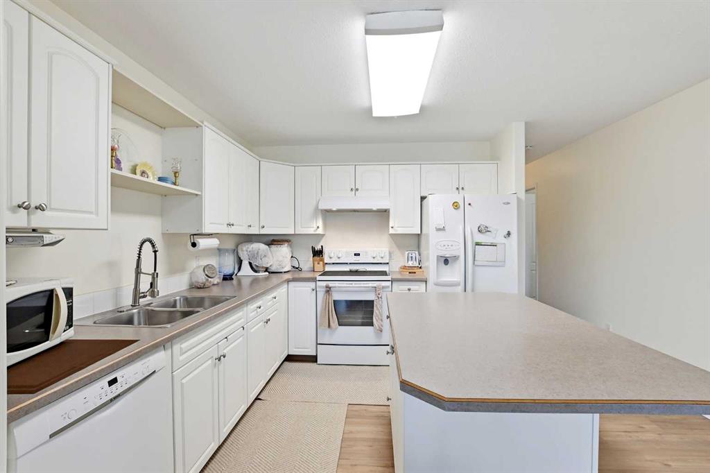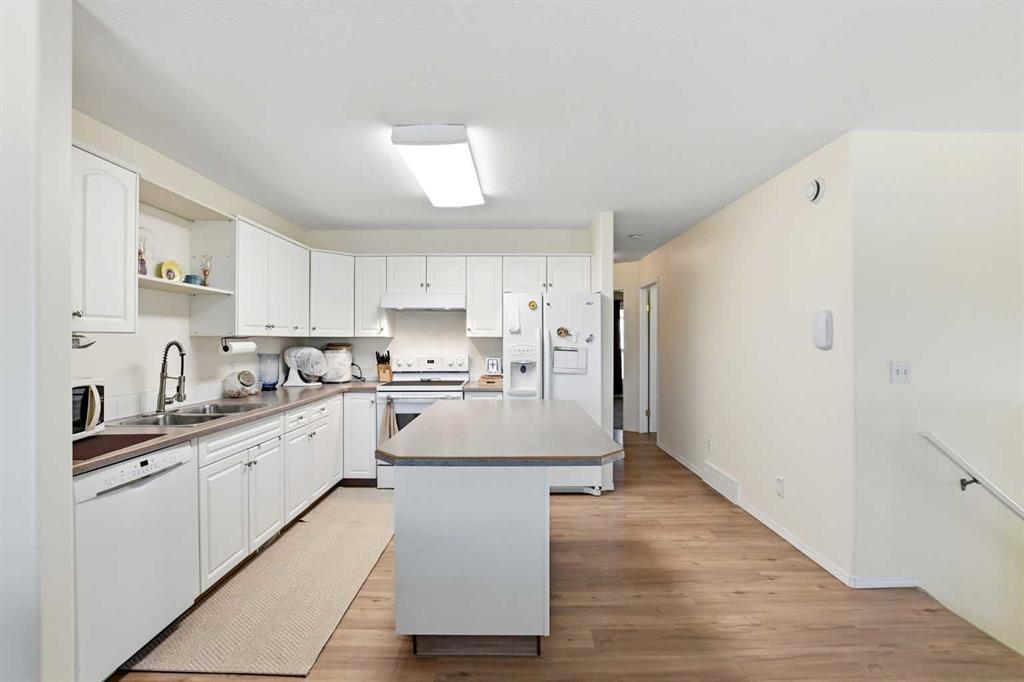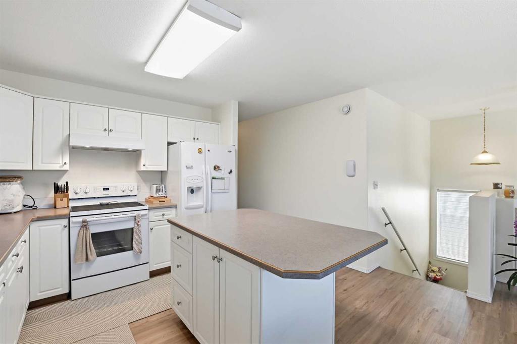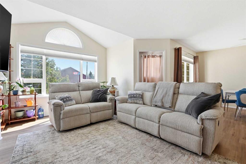 Meet “Iris” — an exceptional two-storey semi-detached home offering style, comfort, and the rare bonus of two heated garages. With over 2,000 sq ft of developed living space, this move-in ready home features 3 bedrooms and 3 bathrooms across two spacious levels above grade. A true standout, this property includes both an attached single garage and a detached single garage with workshop—both heated—ideal for hobbyists, storage, or year-round convenience. Step inside to a welcoming foyer with recently installed vinyl flooring. The lower level offers a bright and functional layout, including a spacious family room with gas fireplace and sliding patio doors leading to the fenced backyard. This level also features a large bedroom, a full 4-piece bathroom, a generous laundry room with sink and ample storage, and an additional storage room. Upstairs, the open-concept main living area is filled with natural light, highlighted by vaulted ceilings, large windows, and a second gas fireplace in the living room. The dining area comfortably accommodates a full-size table and flows seamlessly into the kitchen, complete with white cabinetry and a central island. Enjoy your morning coffee or summer BBQs on the east-facing deck just off the dining space. This level also includes two bedrooms, including the primary suite with walk-in closet, full ensuite, and access to a private, enclosed west-facing deck—perfect for relaxing at the end of the day. Additional features include new carpet (2024), central air conditioning, a water softener system, and a newer roof (2018). Ideally located within walking distance to grocery stores, restaurants, and shops, this home offers exceptional value and an attractive price per square foot for both homeowners and investors alike.