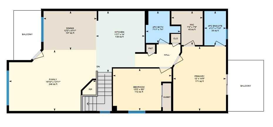 | 4pc Bathroom | 7`4" x 7`11" | Upper |