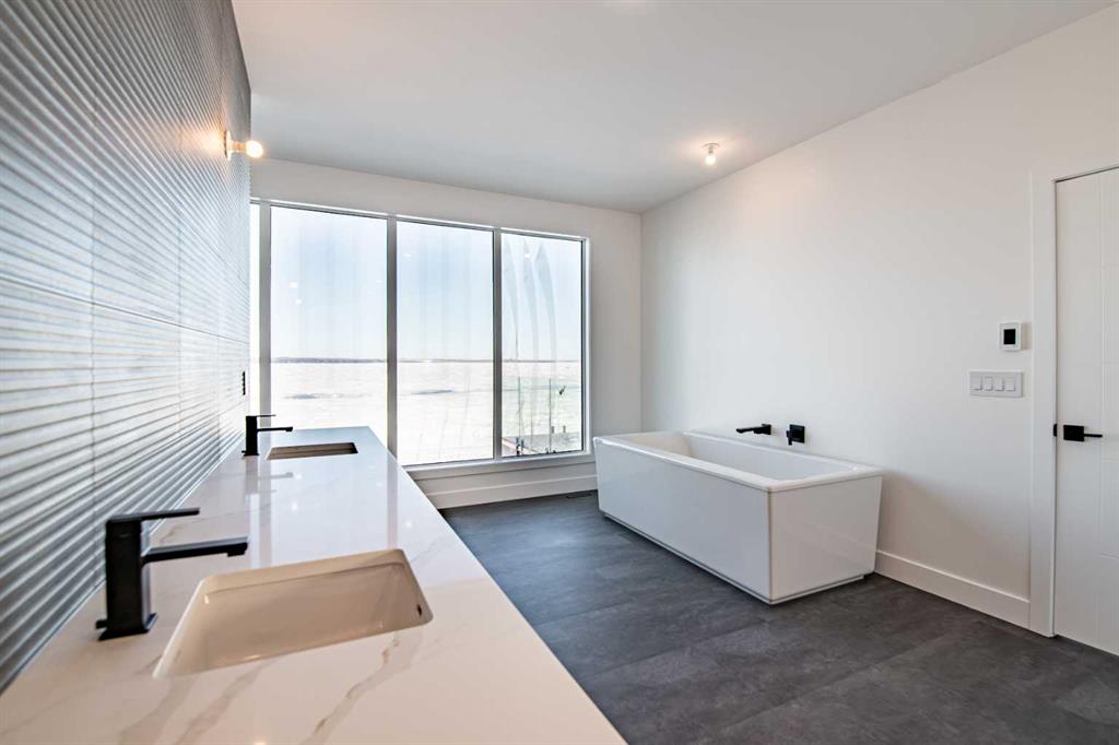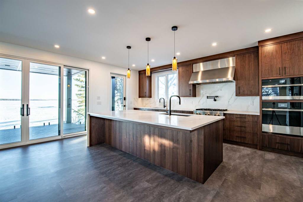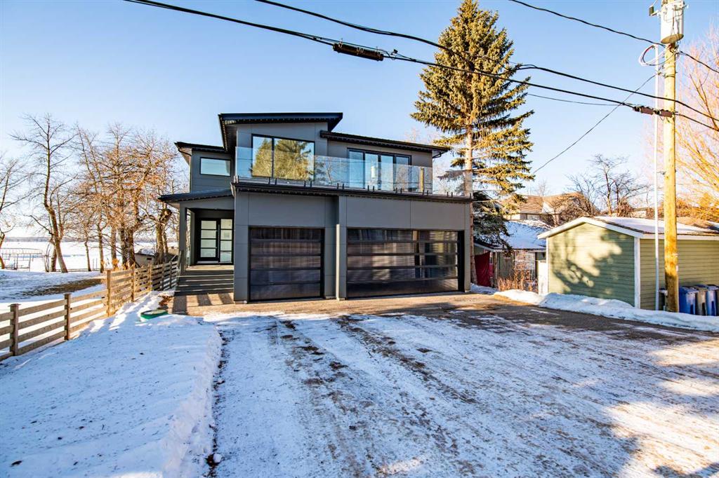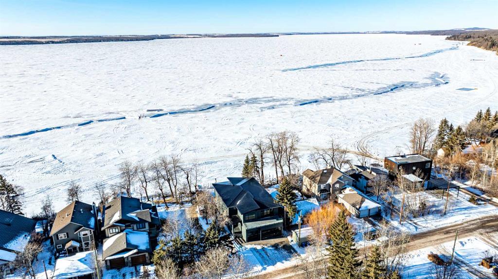 Welcome to 158 Jarvis Bay Drive, an extraordinary brand-new luxury waterfront residence offering the ultimate in lakefront living, just moments by foot or boat from the heart of vibrant Sylvan Lake. Perfectly positioned on a west-facing, water-level lot, this property delivers golden sunset views, a sandy beach shoreline, and effortless access to the water—ideal for your private dock and boat lifts. Spanning an impressive 5,359 sq. ft. of fully developed living space, this home has been meticulously designed for refined daily living and unforgettable large-scale entertaining. The exterior makes a bold architectural statement with Hardie flat panel siding, an exposed aggregate driveway, Gemstone smart lighting, and a walkout lakeside patio framed by professionally engineered retaining walls on both sides, ensuring privacy and long-term durability. A discreet attached storage shed keeps lake toys organized, while the outdoor bathroom and shower provide the perfect rinse-off after a day on the water.Enjoy seamless indoor-outdoor living across three expansive sundecks, all finished with clear fascia-mounted glass railings for uninterrupted lake views from every level. Inside, the home offers five generous bedrooms and six exquisitely finished bathrooms, each showcasing custom tile work, exclusive cabinetry, and striking quartz surfaces. The gourmet kitchen is a true culinary masterpiece—equipped with a six-burner gas range, built-in conventional and steam ovens, prep and wash sinks, two dishwashers, and a stunning waterfall island, all wrapped in handcrafted solid walnut cabinetry. A built-in coffee station elevates your mornings, while a double-door Sub-Zero refrigerator and stand-up pantry freezers ensure exceptional storage for entertaining. The top floor is crowned by a luxurious primary retreat with a spa-inspired ensuite, breathtaking lake views, and a private balcony. Two additional bedrooms each feature their own private ensuites, alongside an oversized theatre and games room and a dedicated laundry room. The walkout basement is an entertainer’s dream—featuring a custom full-service bar, expansive TV lounge with space for a pool table, and a pass-through patio door to the lake. A custom serving window opens directly to the outdoor patio, creating the perfect flow for summer gatherings. Two additional bedrooms, a full bathroom, and a convenient washer/dryer complete this level. Finishing the home is a heated, epoxy-coated triple garage with extra-tall ceilings designed to accommodate a vehicle lift, plus Sunshine Doors for enhanced security of vehicles and watercraft year-round. This brand-new home is protected by Builder Warranty and Alberta New Home Warranty, offering complete peace of mind as you step into a lifestyle defined by luxury, comfort, and lakefront elegance.