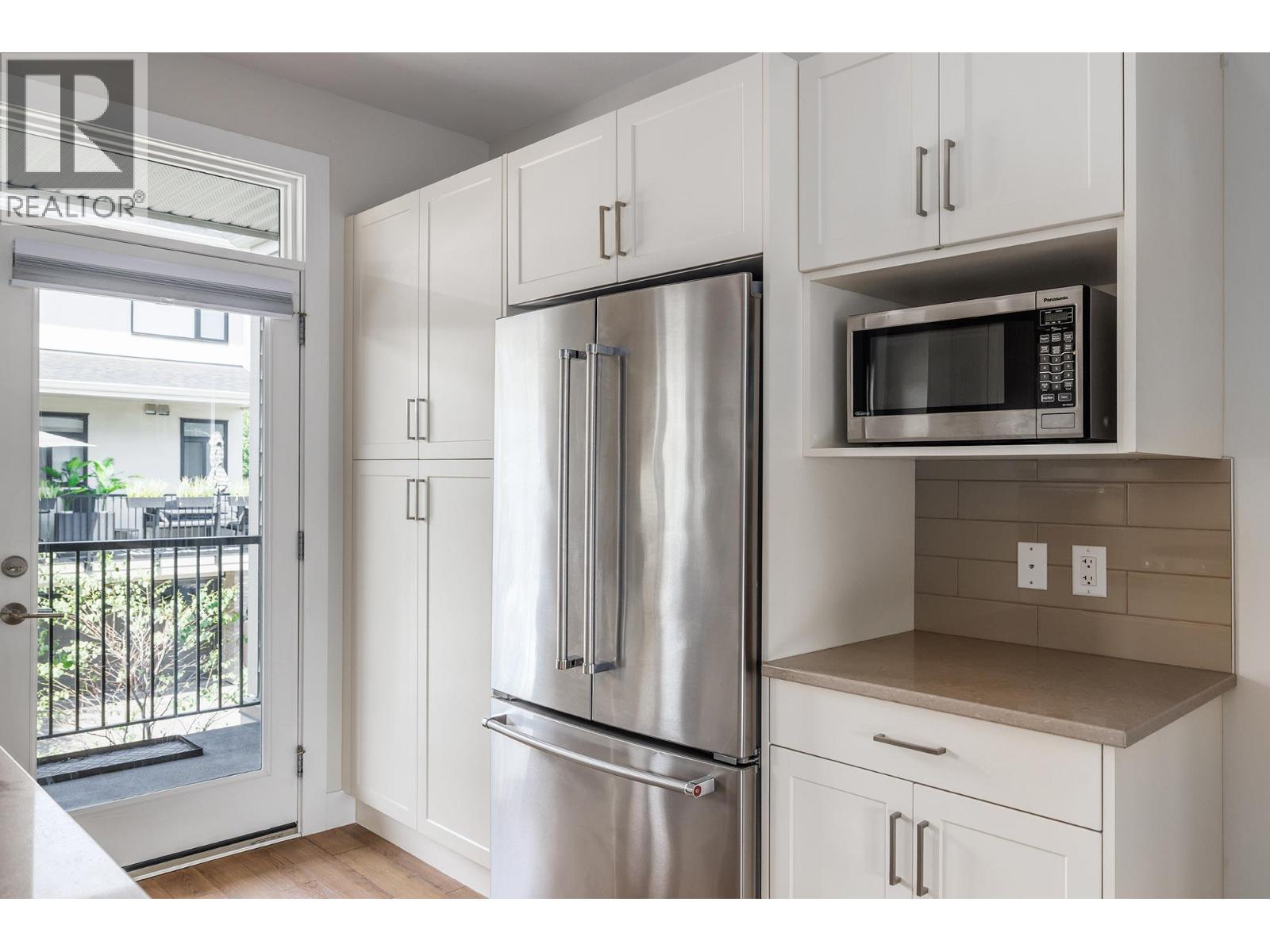 Move in Ready! Modern 3 level townhome offering 4 bedrooms and 4 bathrooms, in Cameron Mews, this sought-after Lower Mission neighbourhood. The lower level features a two-car side by side garage, a spacious foyer, and bedroom with an ensuite, ideal for guests or a home office. The chef-inspired kitchen features sleek quartz countertops, a large island, stainless steel appliances, and a gas range. The open-concept layout features 9' ceilings, large windows and seamlessly connects the kitchen to the living and dining areas, creating the perfect space for entertaining or relaxing. Step outside to the covered patio, complete with a NG BBQ hookup, for outdoor dining. Upstairs, the spacious primary suite offers a private balcony, a 4-piece ensuite, and a generous closet. Two additional bedrooms, a full 4-piece bath, and convenient laundry complete the upper level. Located just across from Guisachan Village Centre, this home offers unbeatable access to shopping, restaurants, cafes, great schools, H2O fitness Centre and the shores of Okanagan Lake. With its modern design and prime location, this townhome is a rare opportunity. THIS ONE IS AVAILABLE AND EASY TO SHOW!