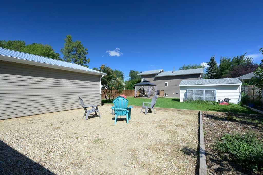 Extensively upgraded and sitting proudly on a massive 2.5-lot property in Downtown Lacombe, this stunning 4-level split offers the perfect blend of modern style and the charm of a mature neighbourhood. Completely transformed from its original 1950s character into a show-stopping contemporary home, it delivers both space and sophistication. Exterior enhancements include new siding with decorative stone, front and back decks, updated sidewalks and driveway, a newer garage, fresh gravel for the parking pad and around the garage, lush sod, and a beautiful garden. Inside, the thoughtful renovations are a dream come true, with newer flooring, tile, fresh paint, accent walls in the family room, crown moulding in the living and dining rooms, and updated bathrooms throughout. From the compact yet functional kitchen with all appliances new in 2022, there are dining/entertainment options either 3 steps in the formal dining room, 6 steps down in the cozy family room with wood stove, and of course,e on the warmer days on the outside deck. The new windows shower the home with natural light. Major system updates include shingles (2015), furnace (2017), hot water tank (2019), PEX plumbing (2023), and fencing (2023). Perfect for families, empty nesters, or anyone seeking a turnkey home, this property is ideally located just steps from the Gary Moe Auto Group Sportsplex, multiple schools, Cranna Lake and its scenic trails, and the vibrant downtown core filled with shops and restaurants. The oversized double garage awaits your finishing touches, and there’s ample room to park an RV either inside or outside the fenced yard. Two large wooden sheds complete the funtionallity of this large west facing backyard. This is truly a home where comfort, style, and location meet—don’t miss your chance to make it yours!