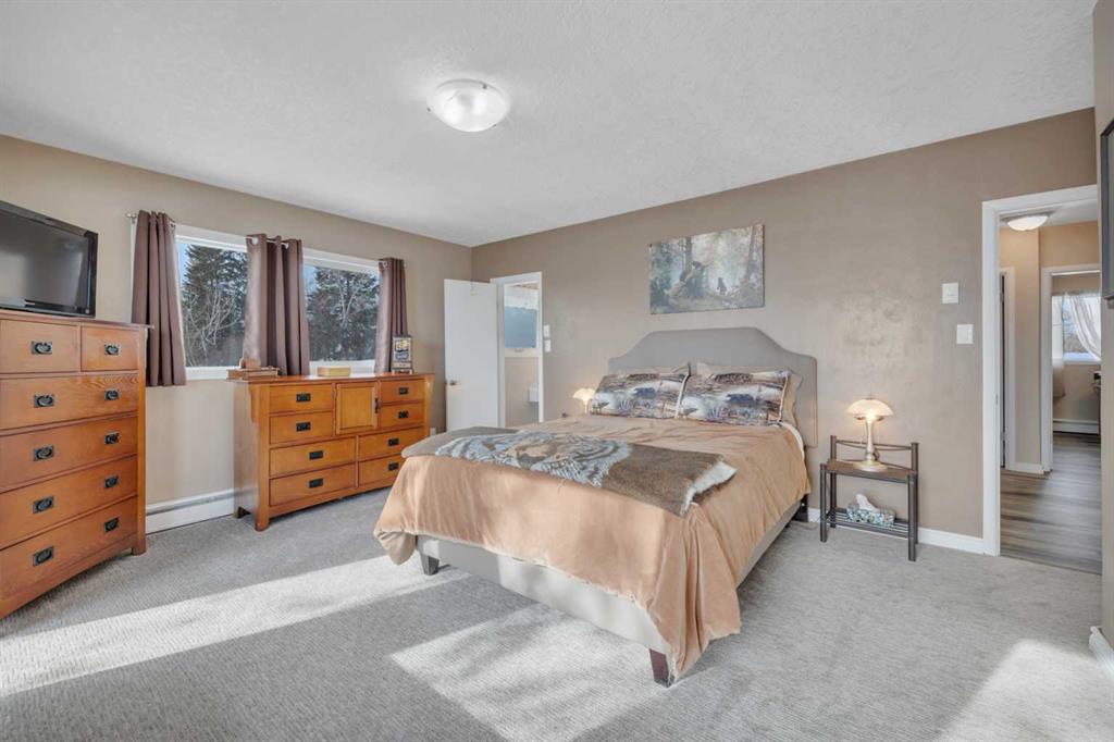 This place is a hole-in-one — perfectly teed up on top of the hill right beside the golf course. Sitting on 1.73 acres inside city limits, this fully renovated property is packed with upgrades that matter. Newer roof, newer electrical panel, full septic replacement (2023), zoned HVAC with independent climate control on each level, on-demand hot water, and added attic insulation. Move in knowing the big-ticket items are done. The main floor features a king-sized primary retreat with an upgraded ensuite, floor-to-ceiling vinyl windows that flood every room with natural light, new vinyl plank flooring and carpet throughout, custom blinds, and fresh paint top to bottom. The kitchen is clean and functional — ceiling-height cabinetry, quartz countertops, newer appliances including an induction range, and a large window over the sink framed by trees. Built-in shelving in the living room adds character and storage. Main floor laundry and a spacious mudroom with its own two-piece bath round out the everyday essentials. The lower level is fully self-contained. A large family room anchored by a cozy wood stove, two oversized bedrooms with above-grade windows, a full bathroom, a second living area, and cold storage. The full kitchen downstairs includes cabinetry for days, a stove, fridge, dishwasher, and pantry, with roughed-in laundry hookups ready to go. A lockable door between levels allows each floor to function independently — ideal for multi-generational living, extended family, or anyone who values flexibility and separation. Outside matches inside. A wraparound deck catches southern and eastern sun, while the fully fenced yard is lined with lilacs, raspberry bushes, and Saskatoon berries. Two gated access points, RV parking, an extended driveway, a heated double detached garage, and a storage shed give you room for every vehicle, project, and hobby. No one in front, no one behind — just open sky, golf course views, and your own patch of paradise. You're across from the ball diamonds, steps from a seasonal farmers' market, and two minutes to the clubhouse. Red Deer is under 20 minutes; Edmonton International about an hour. Space, privacy, updates, and a layout that works however you need it to. Don't wait — book your showing before someone else sinks it.