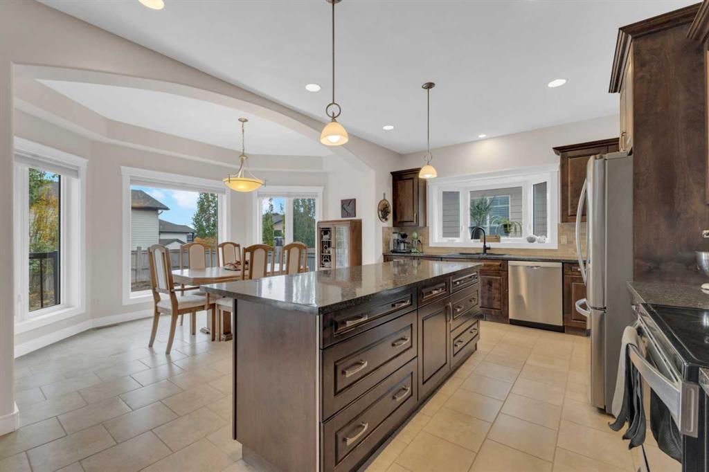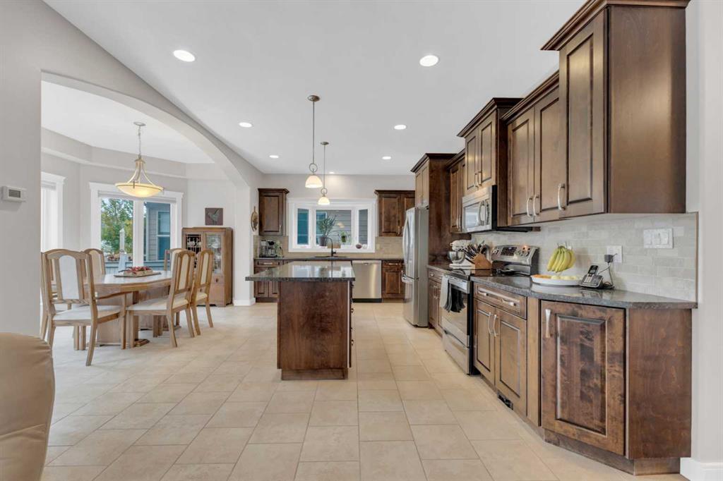 This stunning home is located in the highly sought-after neighborhood of Elizabeth Park. From its exceptional curb appeal to its beautiful interior finishes; this home shines at every turn. From the moment you step into the large open foyer you will be captivated. The main level includes a Chef inspired kitchen that is truly a standout feature, offering a walk-through butler's pantry with direct access to the attached garage - an incredible convenience you'll quickly wonder how you ever lived without. The open-concept main floor has tons of windows allowing the space to be filled with natural light and provides an ideal layout for entertaining with seamless flow from the kitchen and living spaces to the terrific backyard. Upstairs you will find a luxurious primary suite with stunning ensuite - including an indulgent soaker-tub, walk-in closet and your very own private balcony. Three additional bedrooms and a full bathroom complete the upper level making it perfect for a growing family. The fully finished basement offers a great spot for the family to gather for movie night, or create a fun recreational / games room for everyone to enjoy. One additional massive bedroom and a full bath make this space ready for teens and guests. This home is classic and custom including Central air conditioning, a covered deck, hardwood flooring, in-floor heat in kitchen, garage and basement. It is truly move-in ready with room for the entire family and situated in the desirable neighborhood of Elizabeth Park - close to walking trails, schools and greenspaces.
