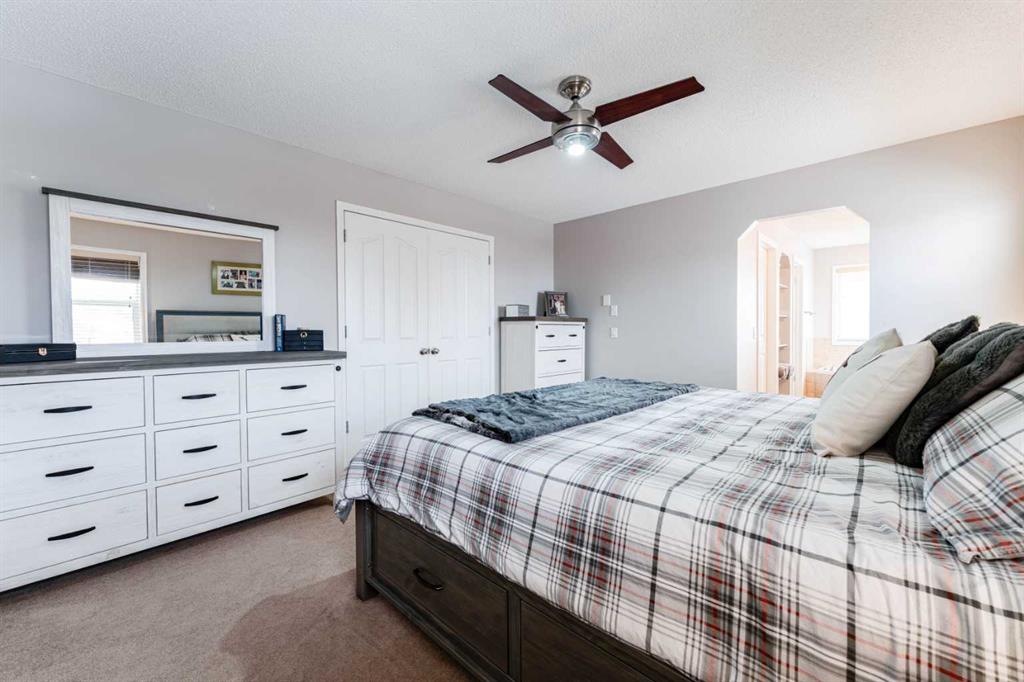 OPEN HOUSE - SUNDAY, FEB. 1 - 1:00-2:30 PM. Welcome to Boulder Creek, one of Langdon’s most desirable golf course communities, where small-town charm meets generous living spaces and thoughtful design. This beautifully maintained 2-storey home offers nearly 3,000 sq.ft. of developed living space and a layout that balances openness with functional separation. A large front veranda welcomes you home each day and offers the perfect spot to enjoy your morning coffee. Inside, the main floor features laminate flooring throughout the living room and warm, durable tile in the kitchen. A bright front den provides the ideal workspace, while the spacious kitchen offers a large island, pantry, and plenty of cabinetry and counter space. The adjoining living room centers around a cozy gas fireplace, and the dining area opens onto a large back deck—ideal for summer evenings and weekend gatherings. A well-placed 2-piece bathroom is tucked away from the main living areas for added privacy and convenience. Upstairs, the primary suite includes a generous walk-in closet and a luxurious 5-piece ensuite. Two additional bedrooms, a full 4-piece bathroom, and the convenience of upper-level laundry complete this thoughtfully designed second floor. The professionally developed basement adds even more versatility, offering a fourth bedroom with its own 3-piece ensuite, a gym area, a spacious rec room, and ample storage. Outside, the backyard is a true retreat. Beautifully landscaped, it features a custom gazebo with an outdoor fireplace, raised garden beds, and a dedicated dog pen—perfect for relaxing, entertaining, or simply enjoying the outdoors. This is a rare opportunity to own a warm, welcoming home in a family-friendly community just steps from The Track Golf Course. Move-in ready and designed for comfort, this property truly has it all.