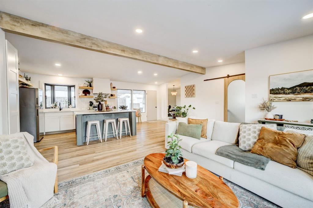 Welcome to a home that instantly feels calm, welcoming, and thoughtfully designed for everyday living. This sprawling bungalow offers a bright, open main floor where vaulted ceilings, a stunning wood beam, and oversized windows create a warm, airy atmosphere that feels both elevated and comfortable. The kitchen flows effortlessly into the living space, making it easy to cook, gather, and connect—whether it’s busy mornings or relaxed evenings at home. With four bedrooms and three bathrooms, there’s space to grow, host, and unwind. The lower level is just as inviting, featuring a dedicated office, a cozy flex room perfect for family movie nights, and room for guests or teens to have their own retreat. Every space feels intentional and easy to live in. Outside, the lifestyle continues. A private, covered back patio with a hot tub invites you to slow down and enjoy the peaceful setting, while the large corner lot offers plenty of space for kids, dogs, or even a swimming pool. The charming front porch is ideal for morning coffee or evening chats with friends, and the heated attached garage—with a partially converted mudroom— adds both function and personality. Located close to schools, the Scenic Drive dog park, and everyday shopping, this home offers the perfect balance of peaceful living and city convenience. It’s a place where life feels a little calmer—and coming home always feels good.